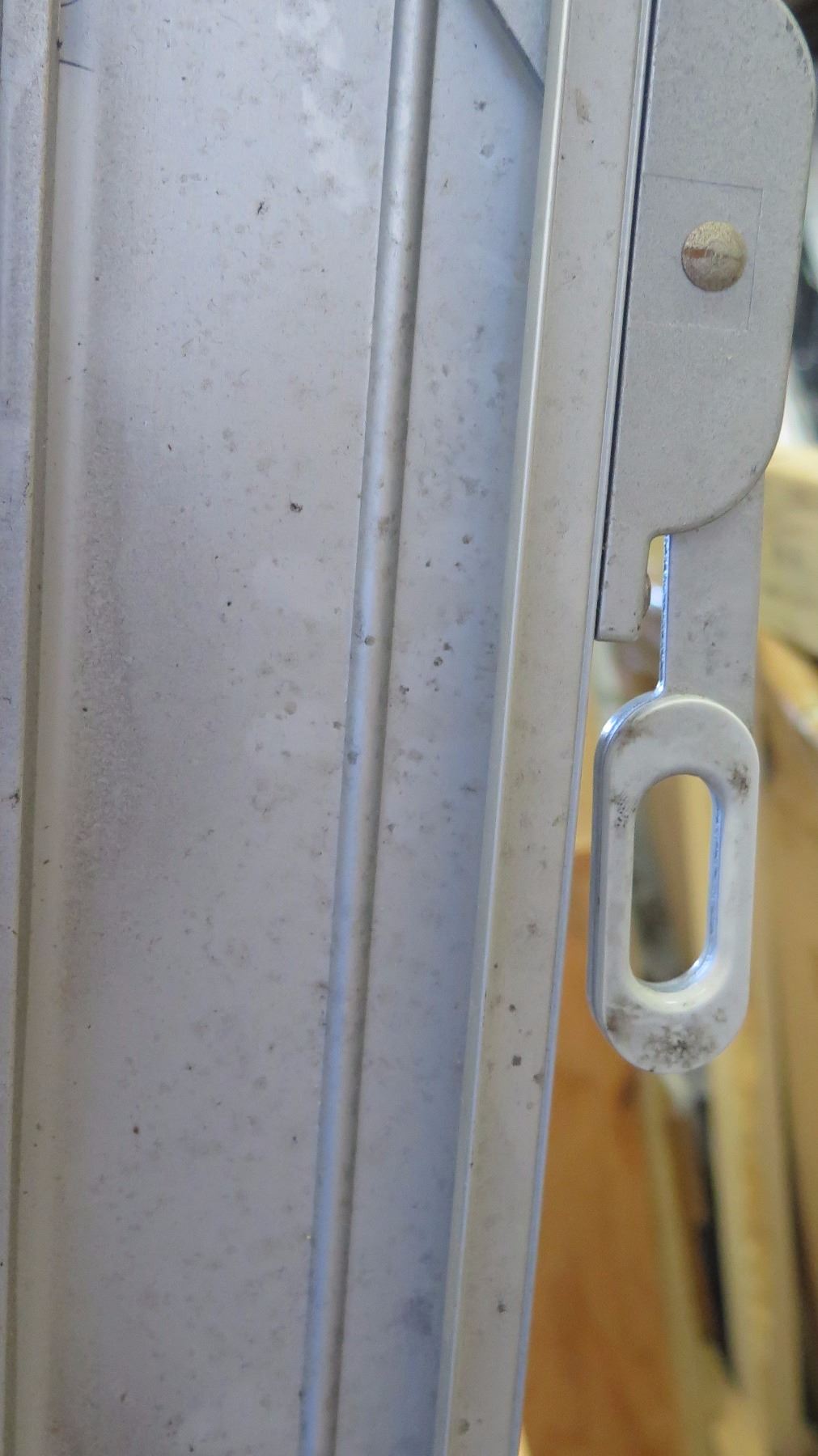 4" Tradewind aluminum jalousie surround window system, block frame in a clear anodized finish, black glass clips and lever operator. Triple louver (L | L | L) 118-3/4" x 68-1/4". Retail $1627
