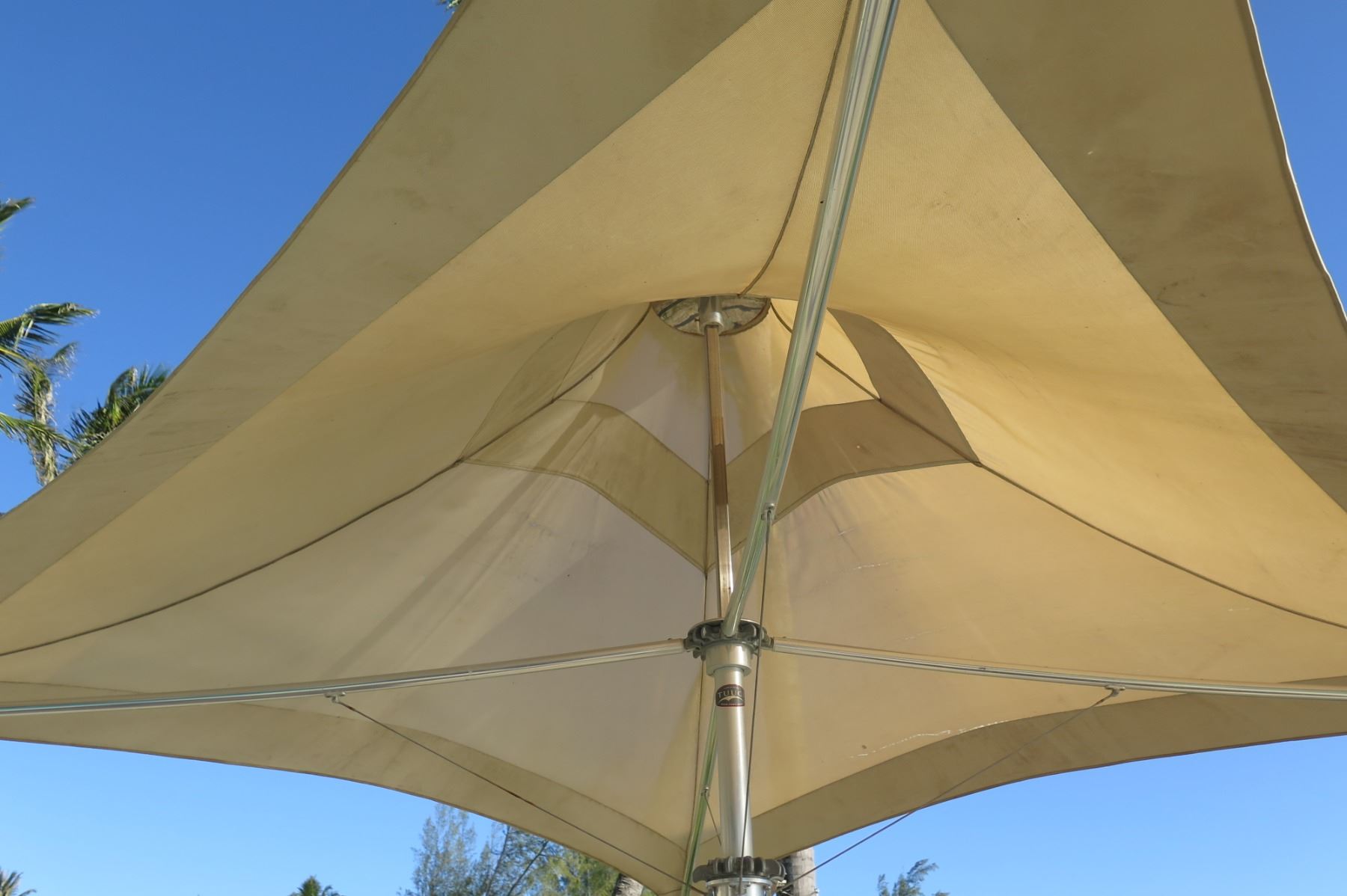 Large Tuuci Collapsible 4-Spoke Umbrella 161" Tall, Approx. 216" Across Tall (missing crank to open