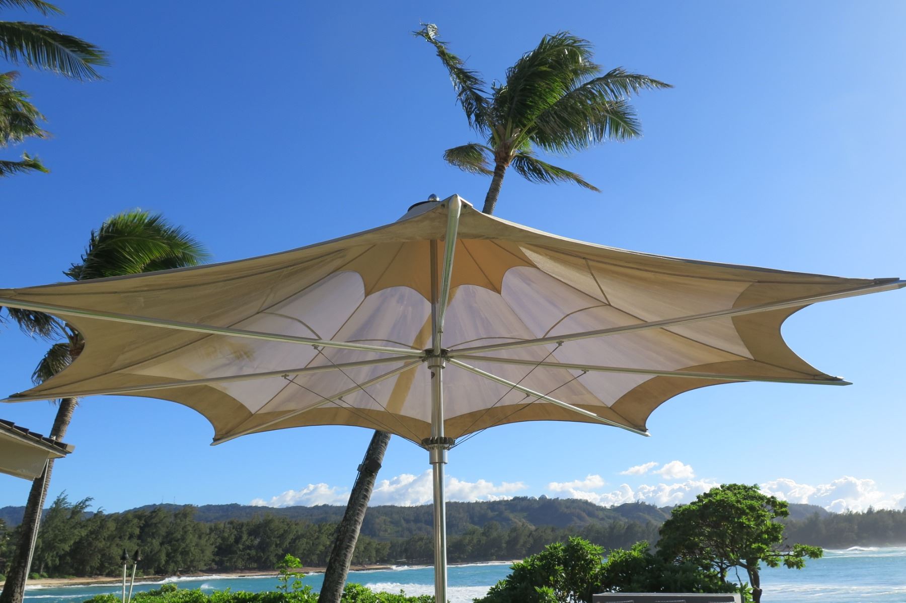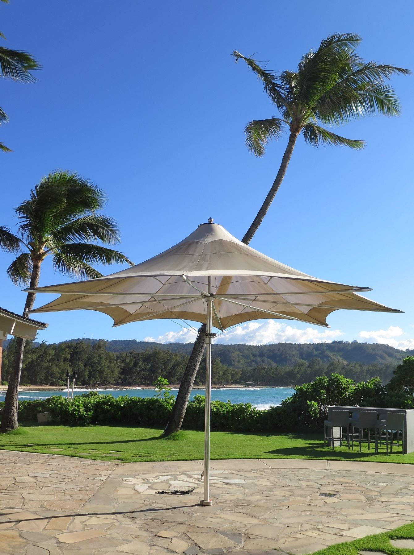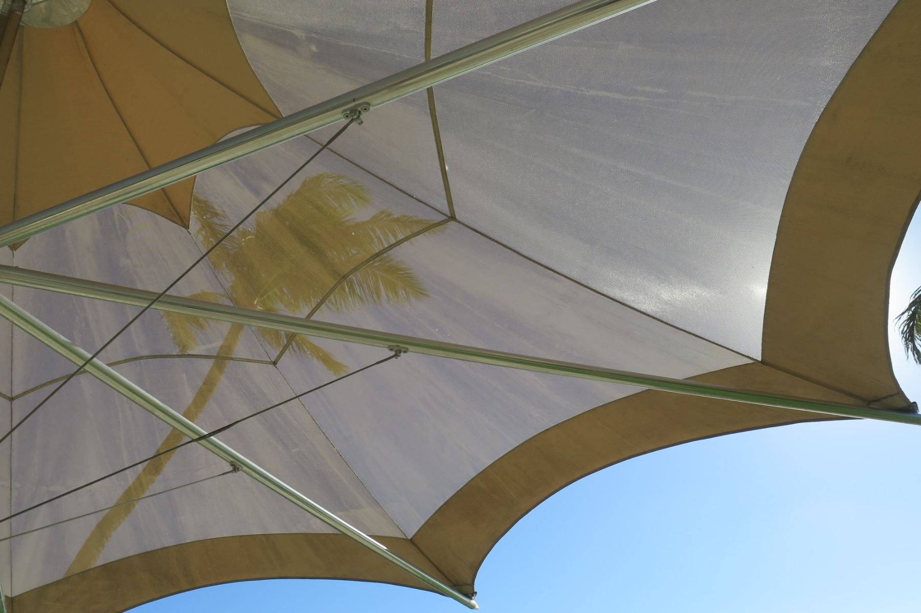 Large Tuuci Collapsible 8-Spoke Umbrella 156" Tall, Approx. 219" Across (missing crank to open & fol
