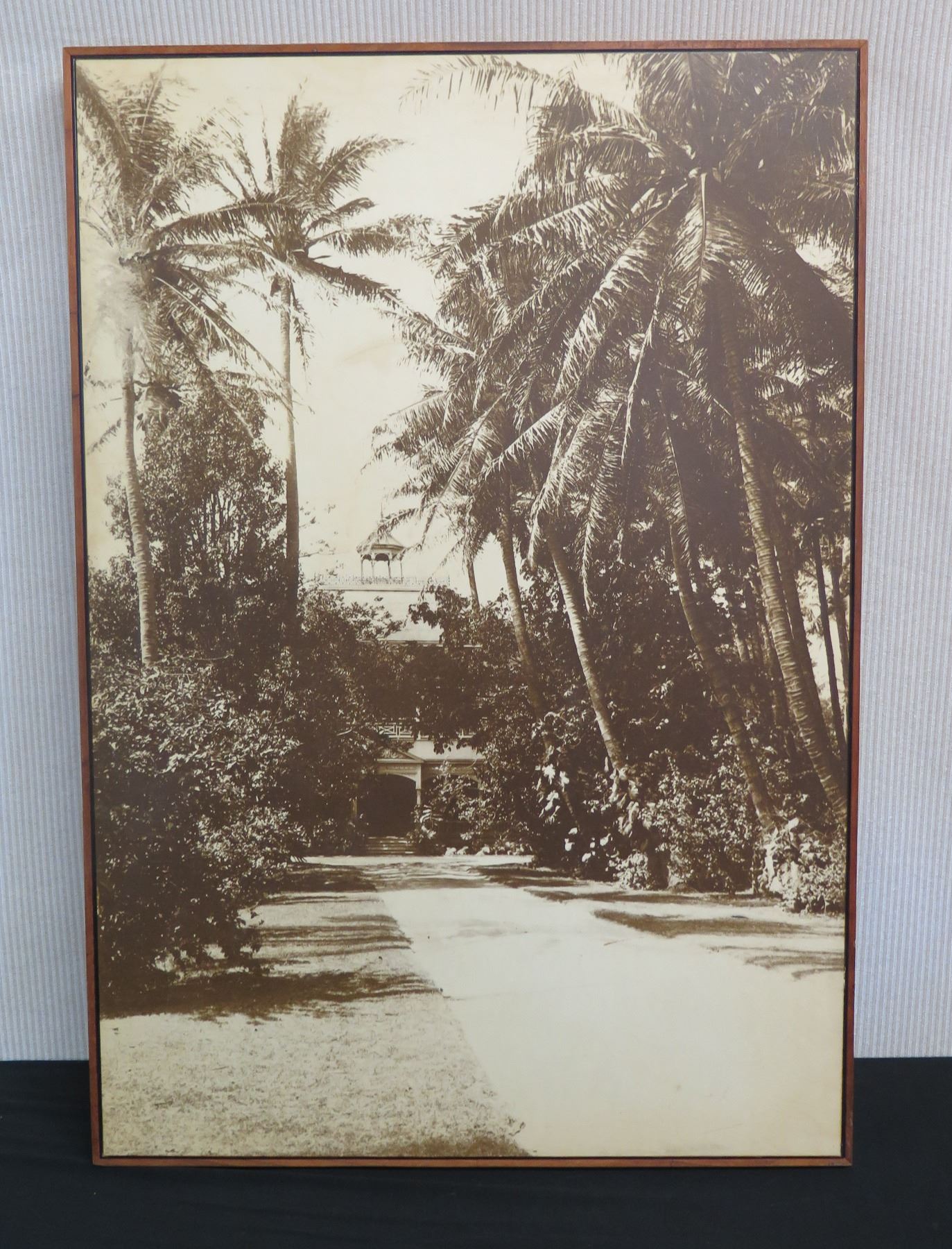 Large Vintage Scenic Photographic Image, Wood Framed 30" x 43". Mounted on wood panel.