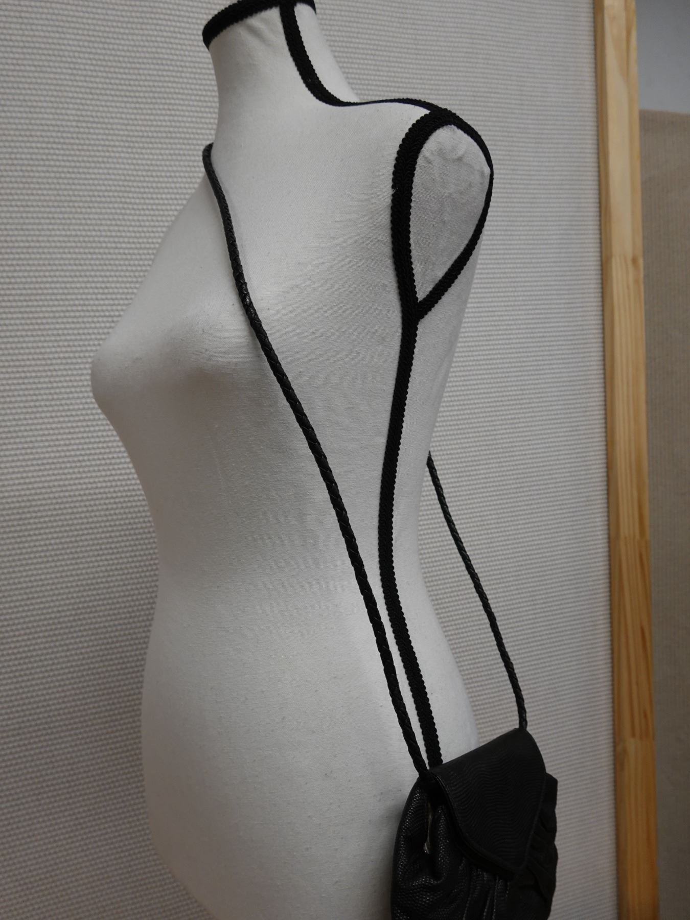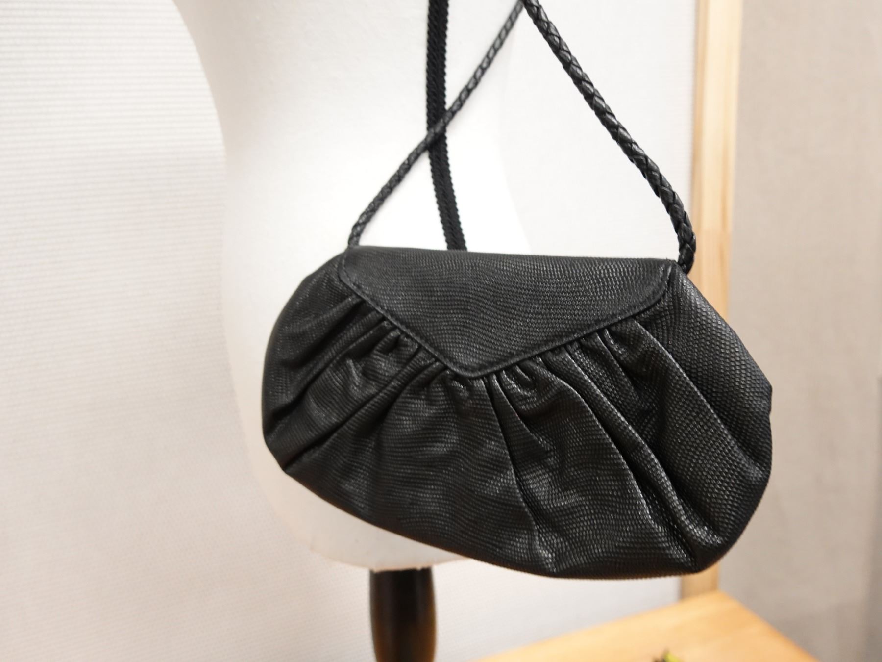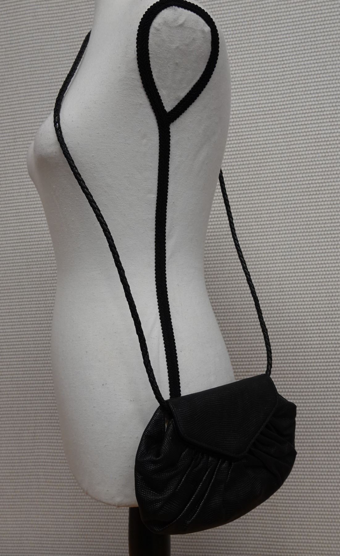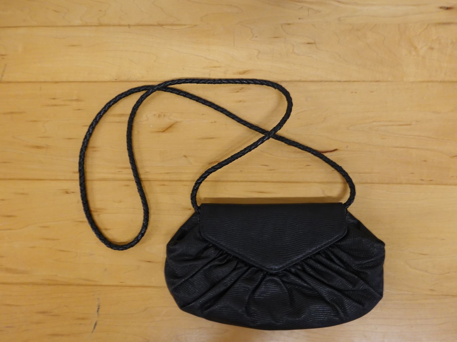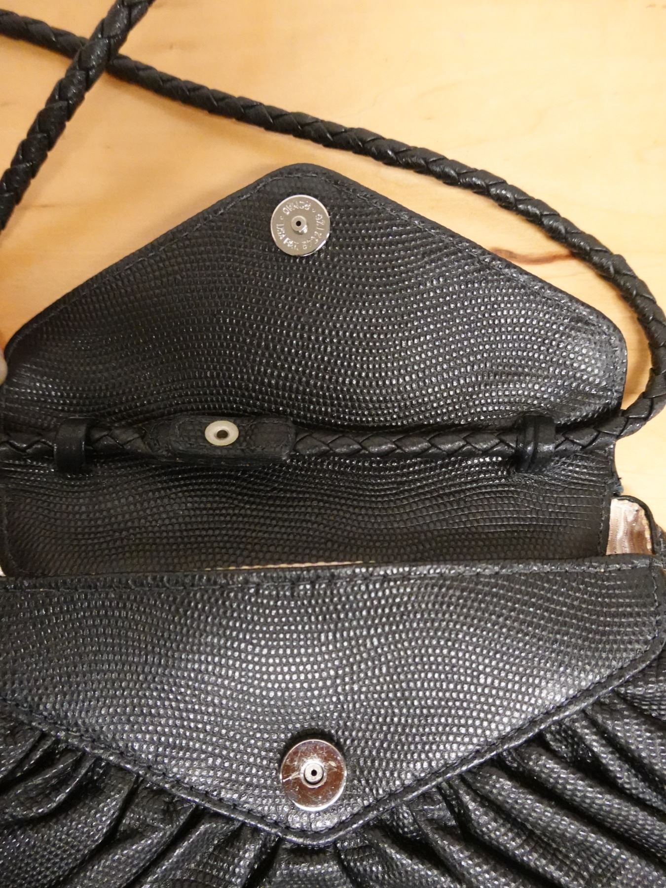 Lauren Merkin Black Leather Snake-Print Cross-Body Bag 9.5" x 6"