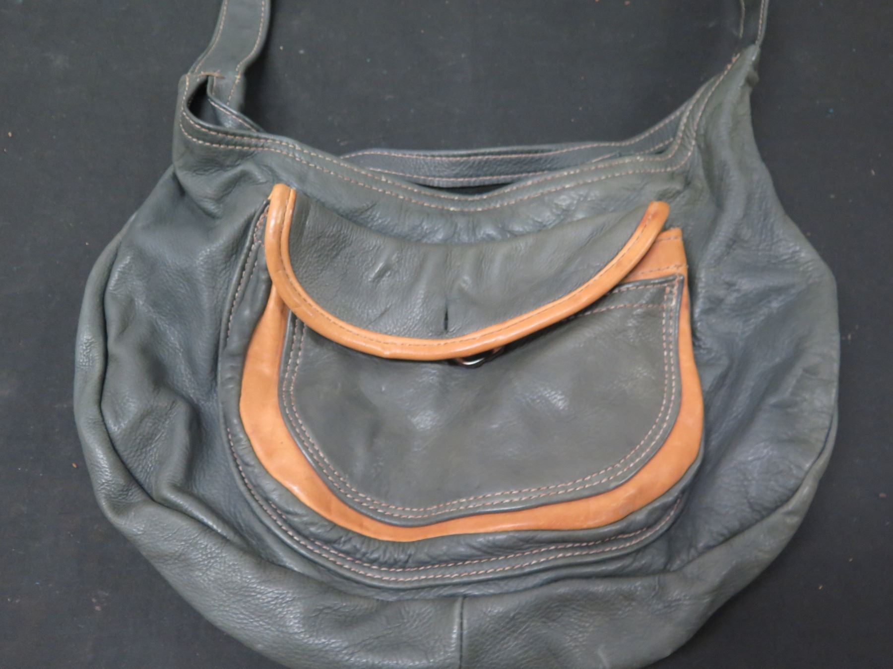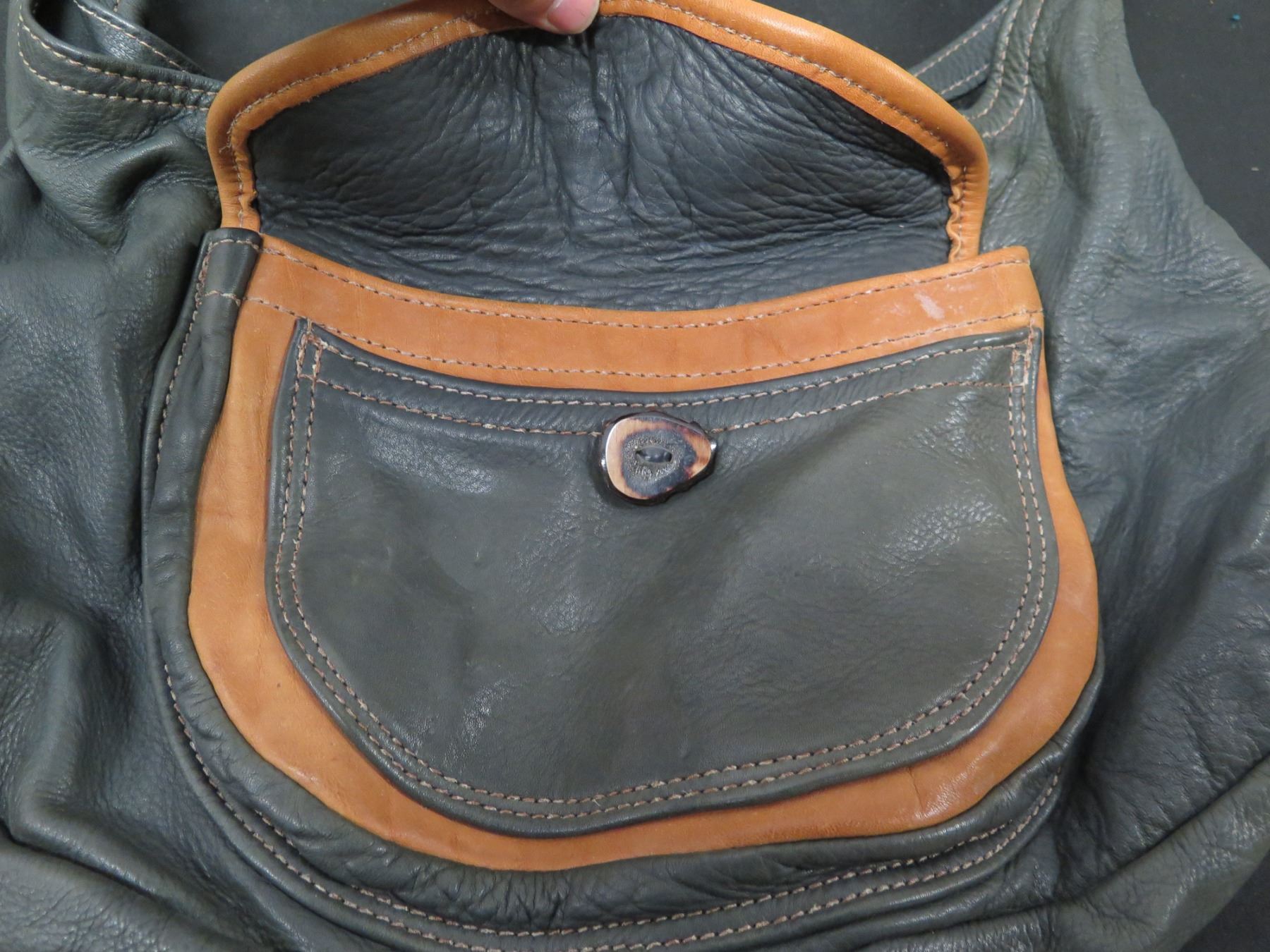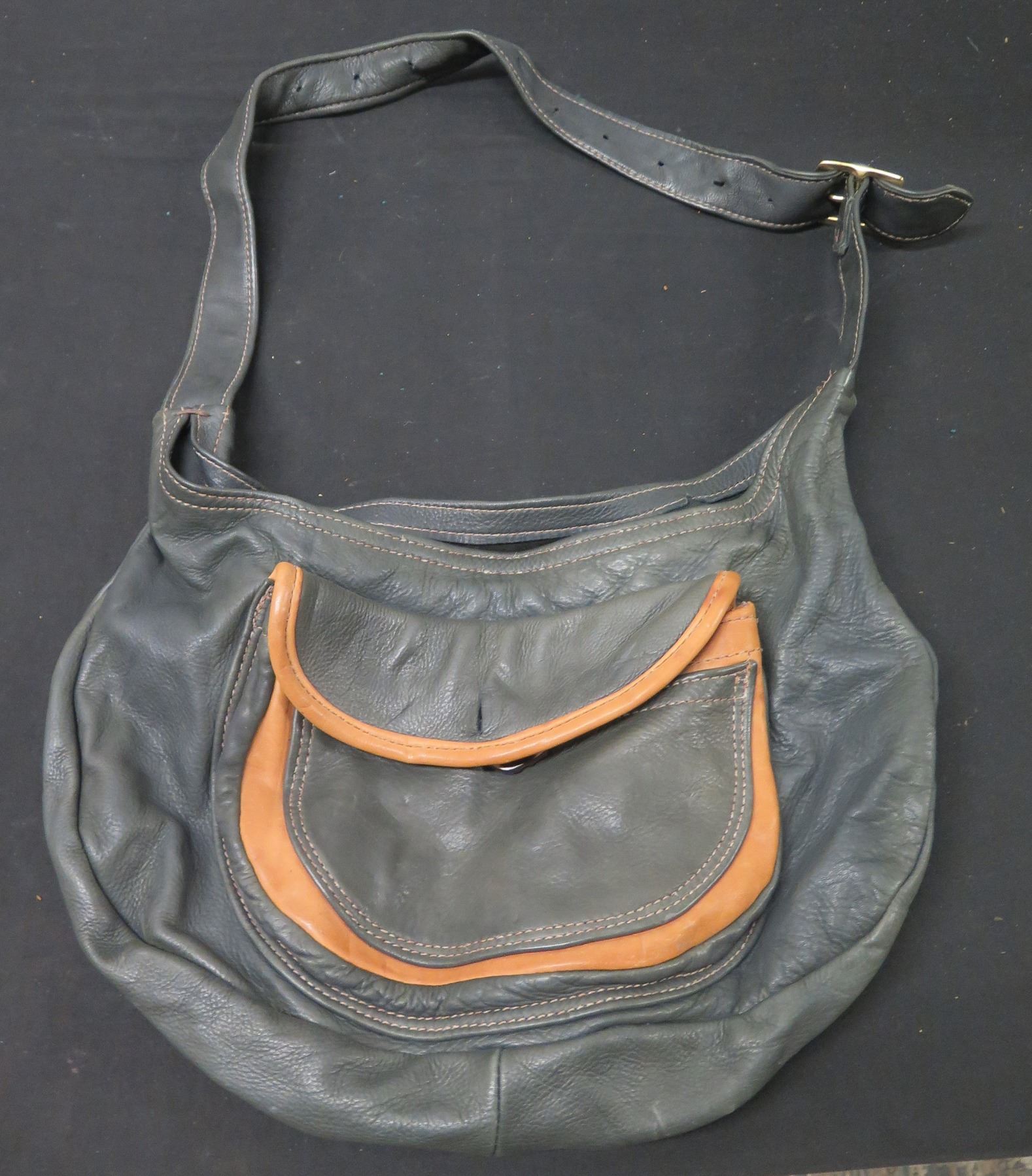 Leather Hobo Shoulder Purse w/ Interior & Exterior Pockets 16"W