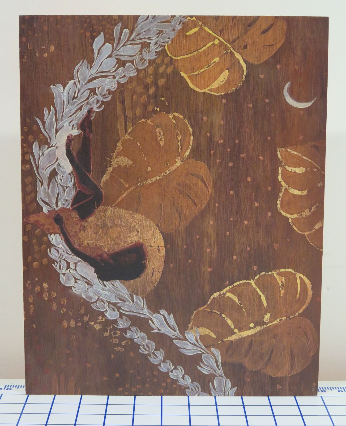 Leaves & Lei Art Print on Wood Panel 14" x 11"