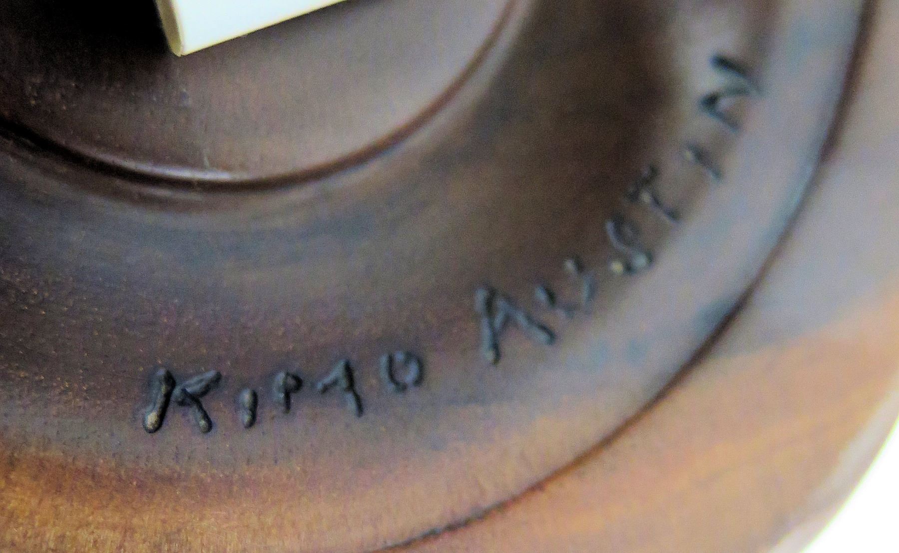 Lidded Milo Wood Bowl on Carved Pedestal Base, Artist Kimo Austin, Approx. 7.5" Dia (lid top), 11.5" Tall