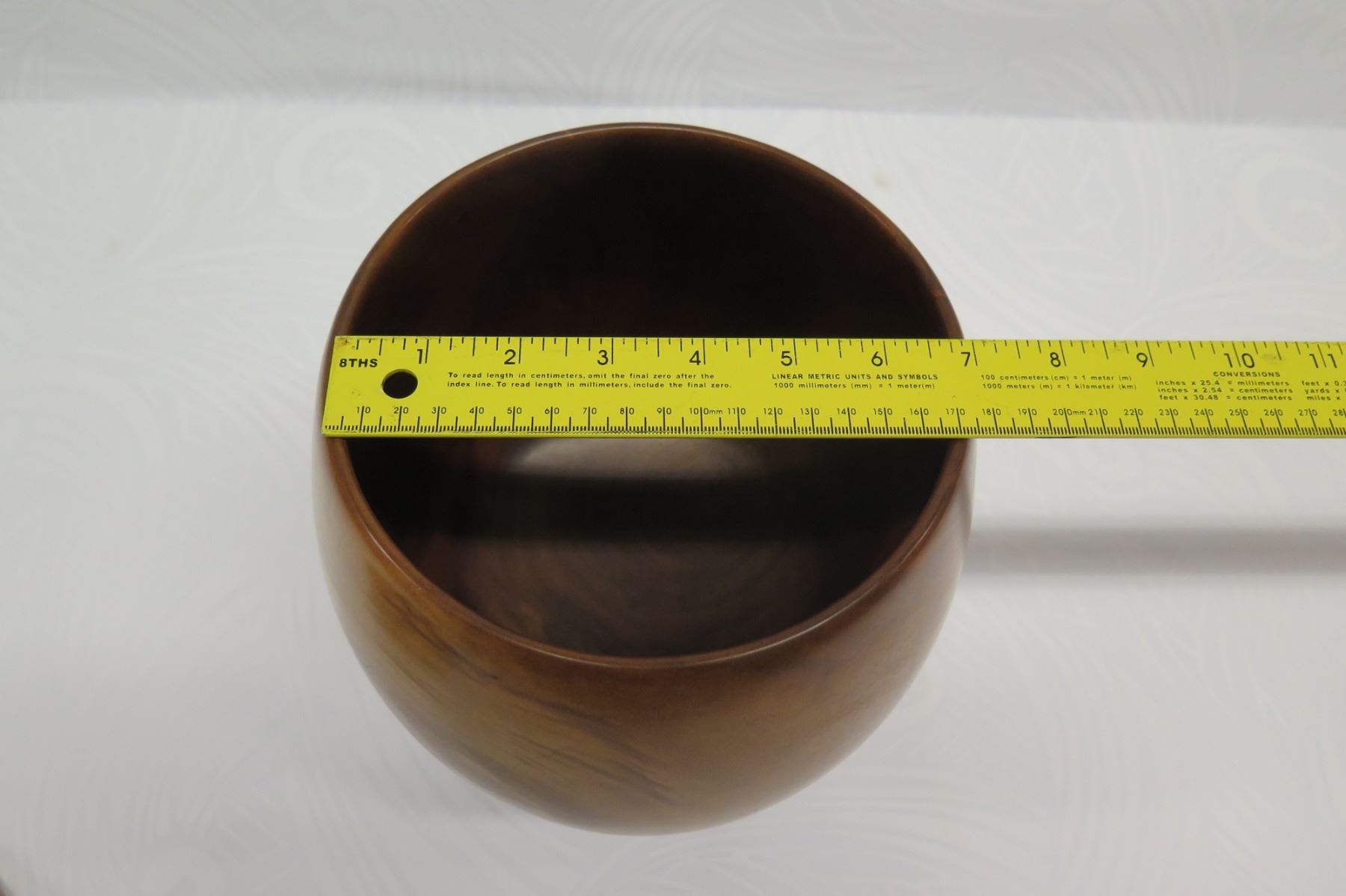 For reference there are ample photos of each object in the online auction catalog. In the photos, we show a golf ball next to each bowl or object for scale and sizing perspective. We also provide dimensions of each item.