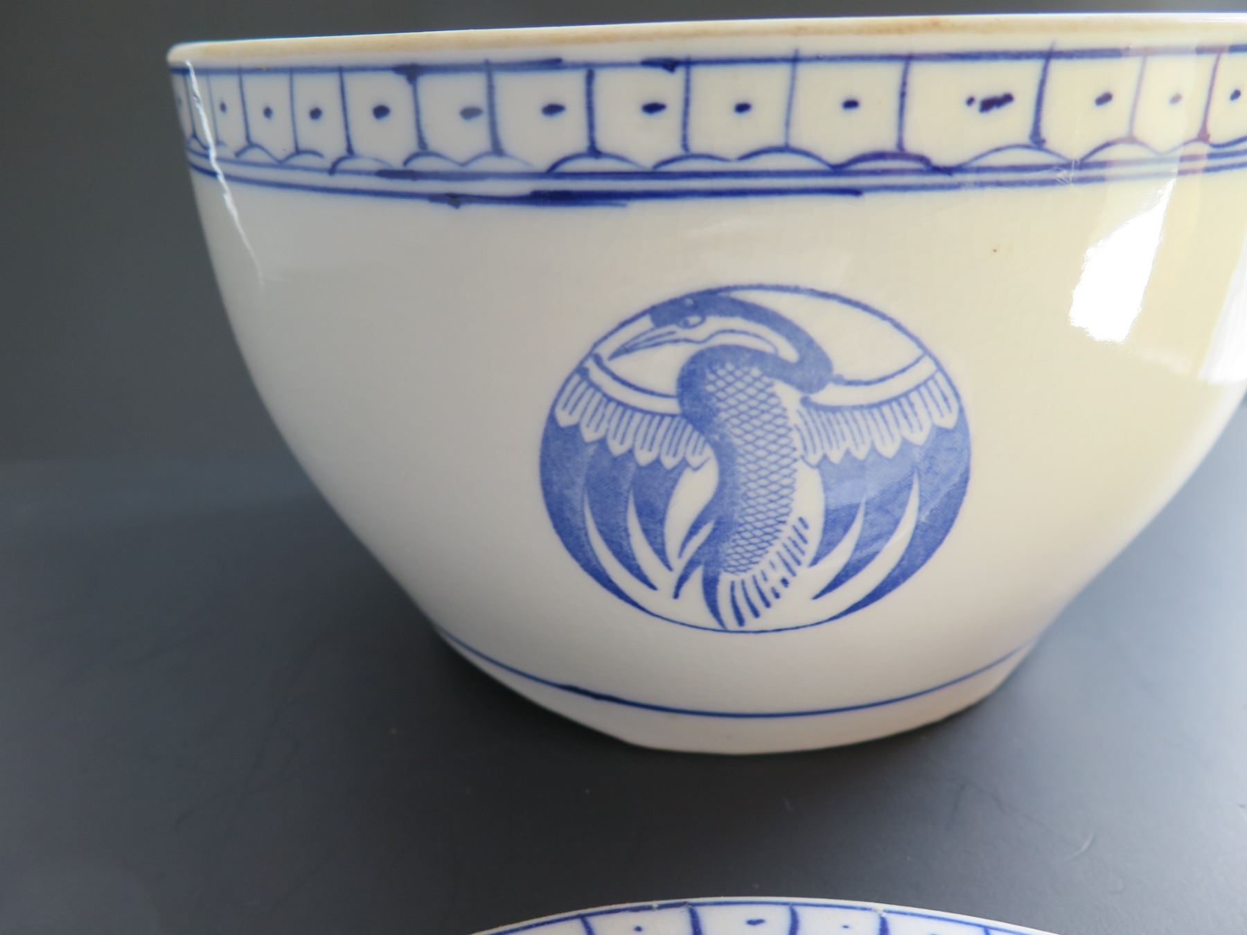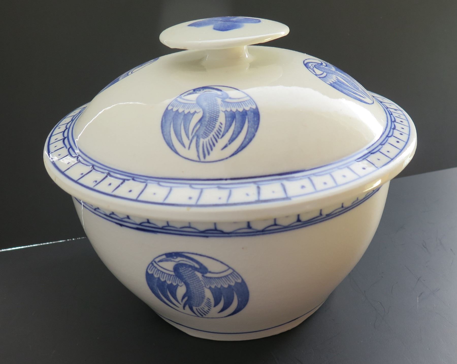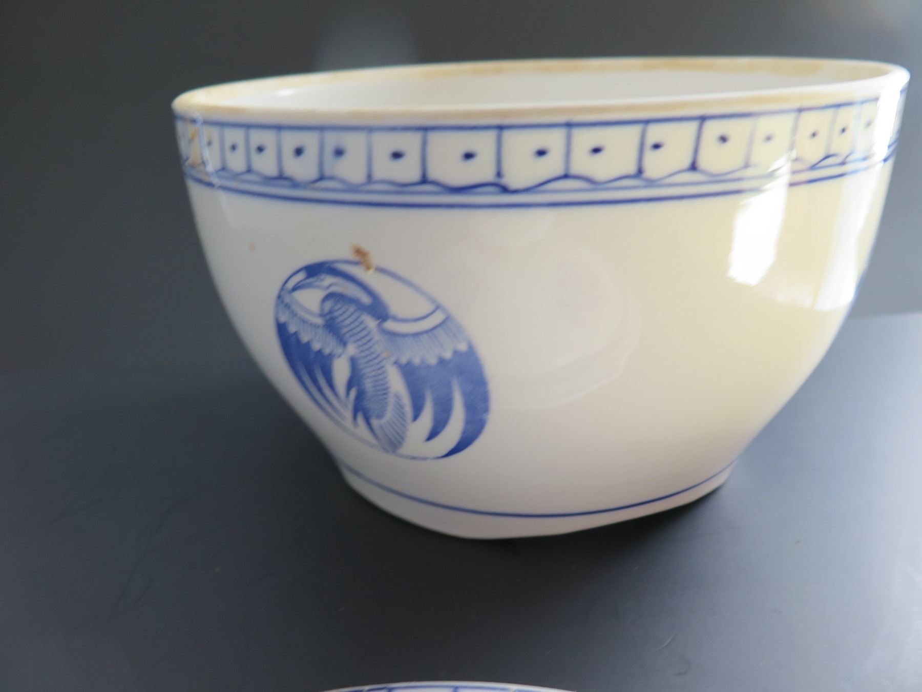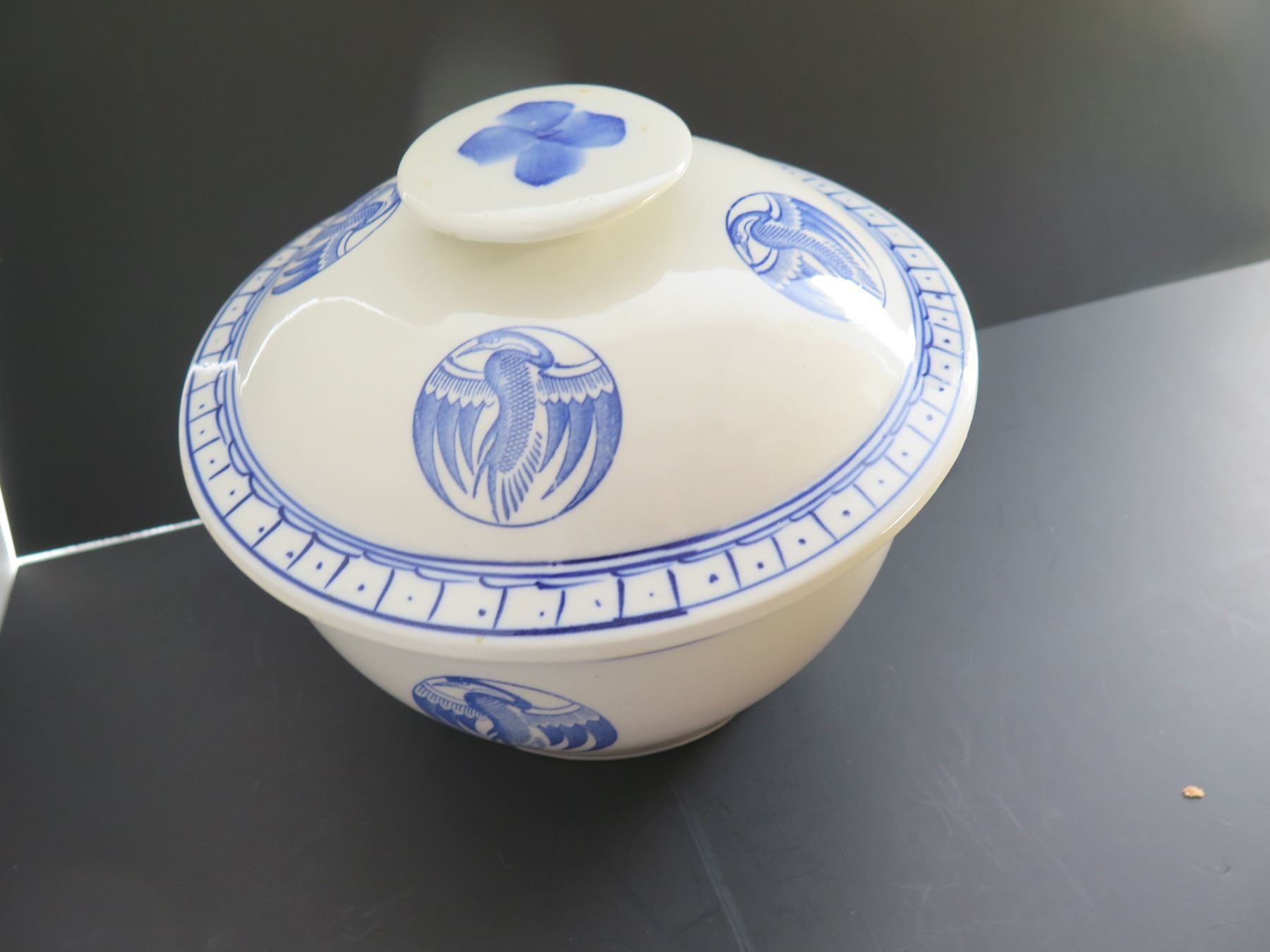 Lidded Rice Bowl, Porcelain Asian, Blue & White