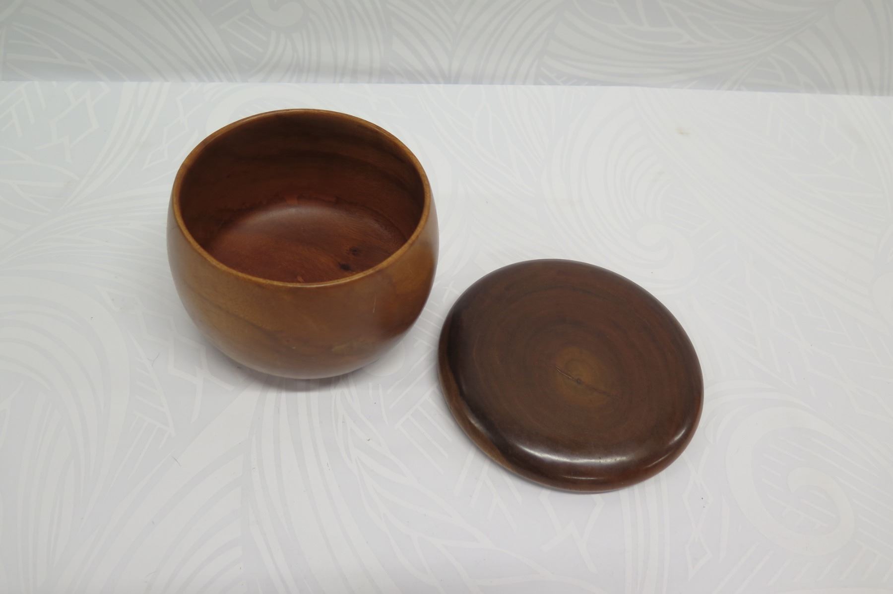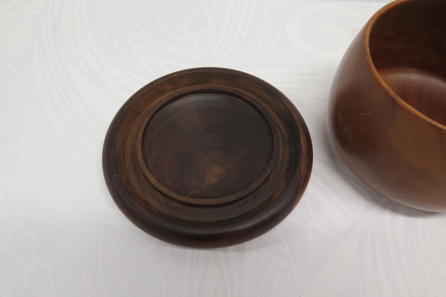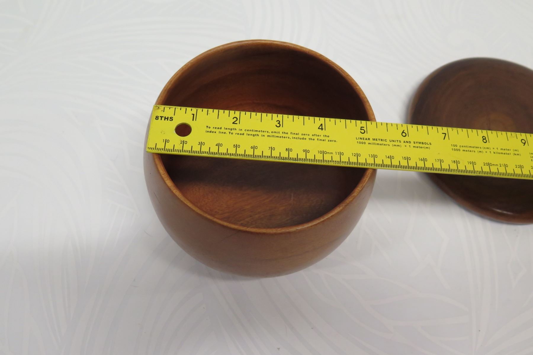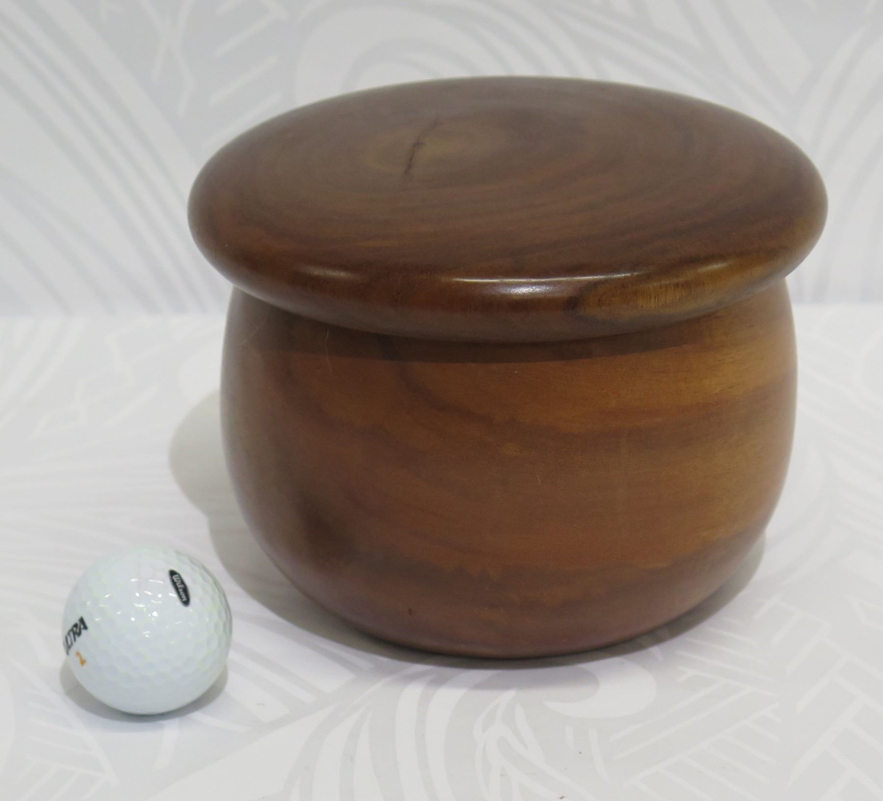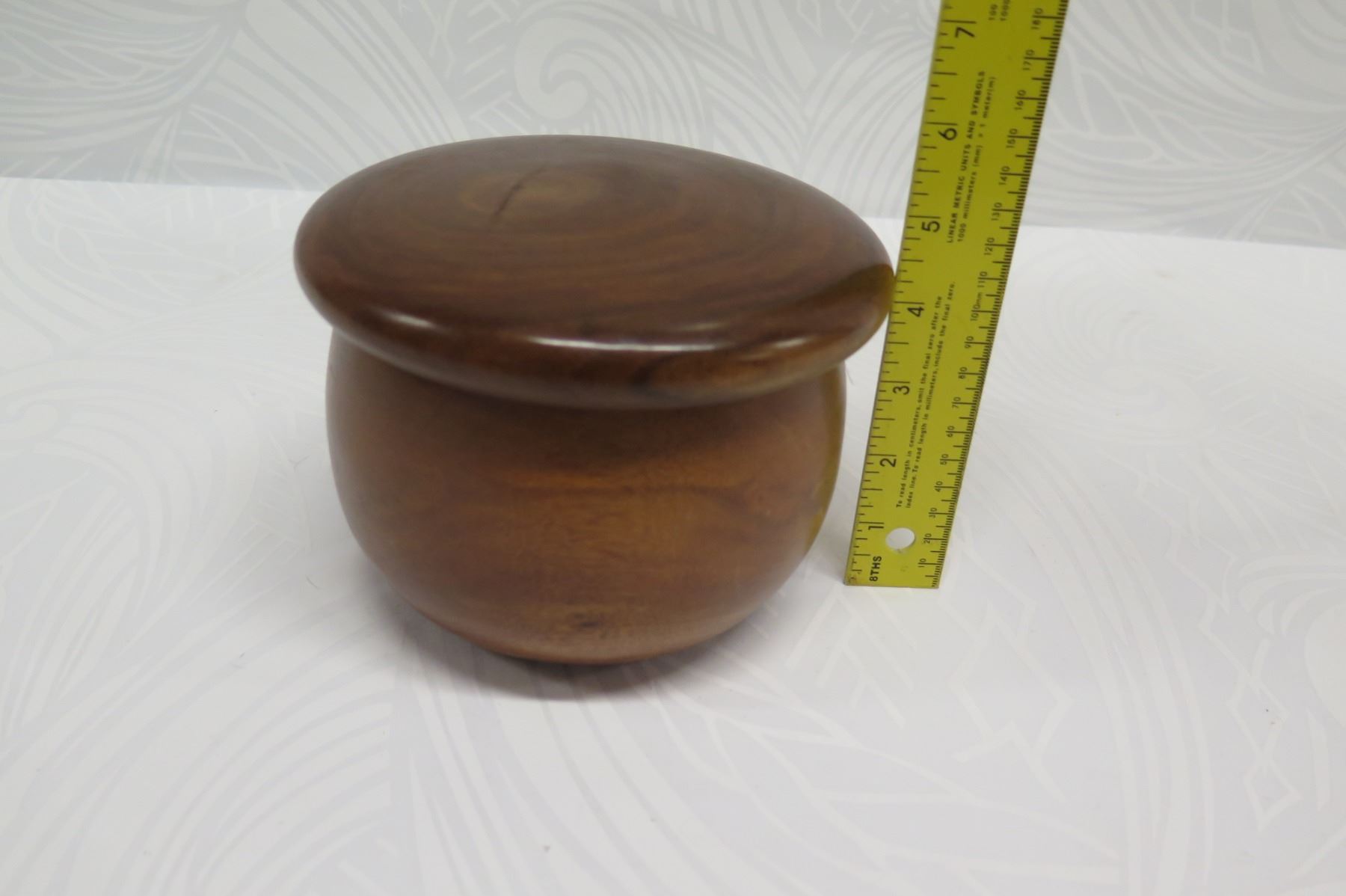Lidded Wooden Bowl from Kamari Woods, Approx. 7.5" Dia (bottom), 4.5" Tall