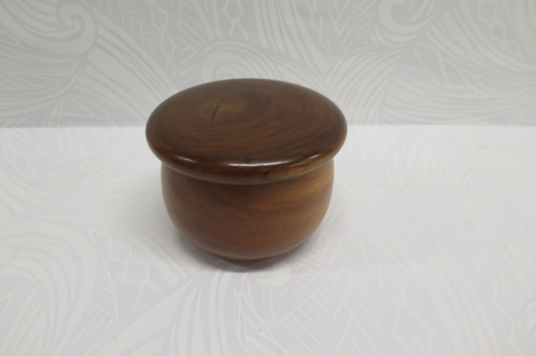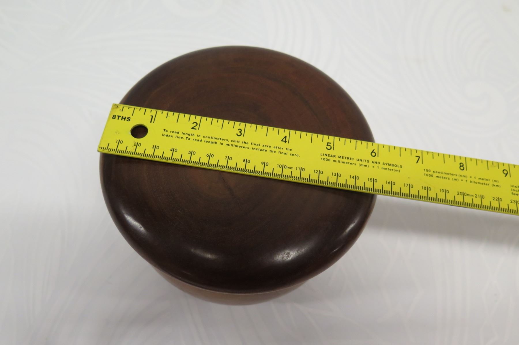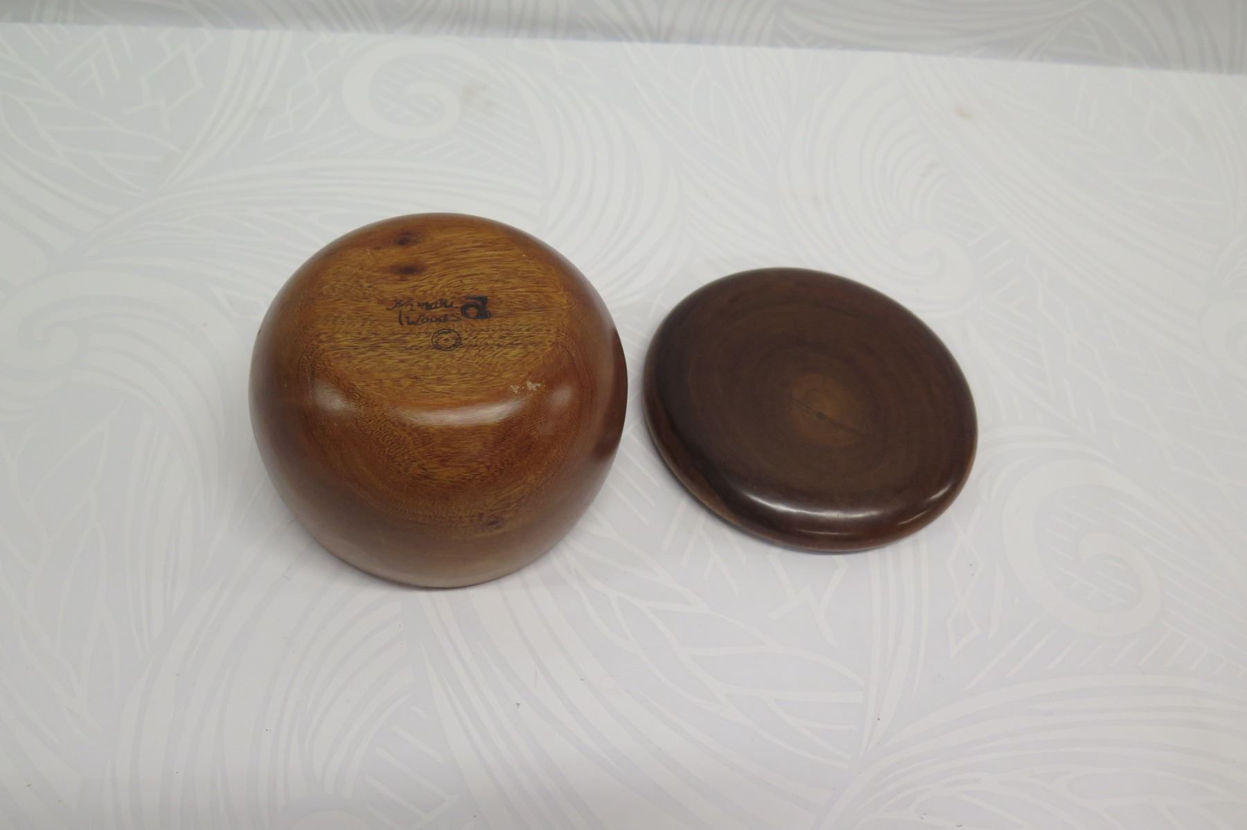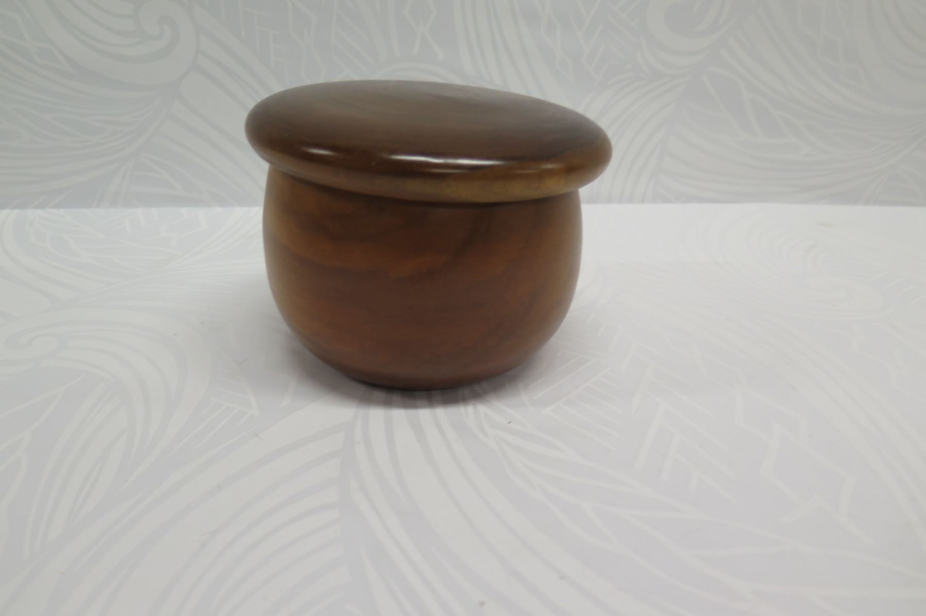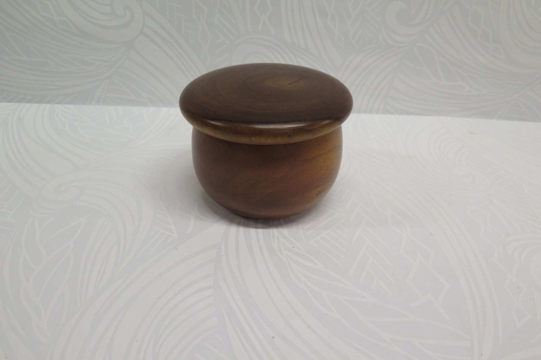 Lidded Wooden Bowl from Kamari Woods, Approx. 7.5" Dia (bottom), 4.5" Tall