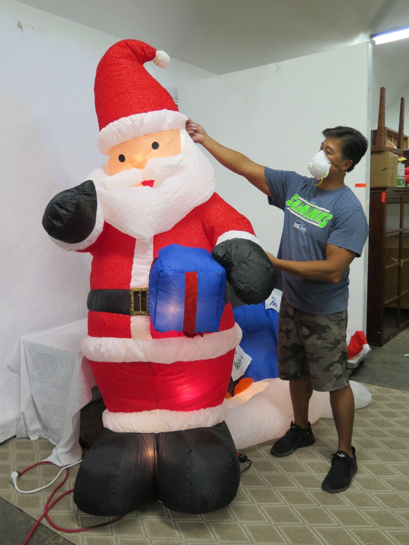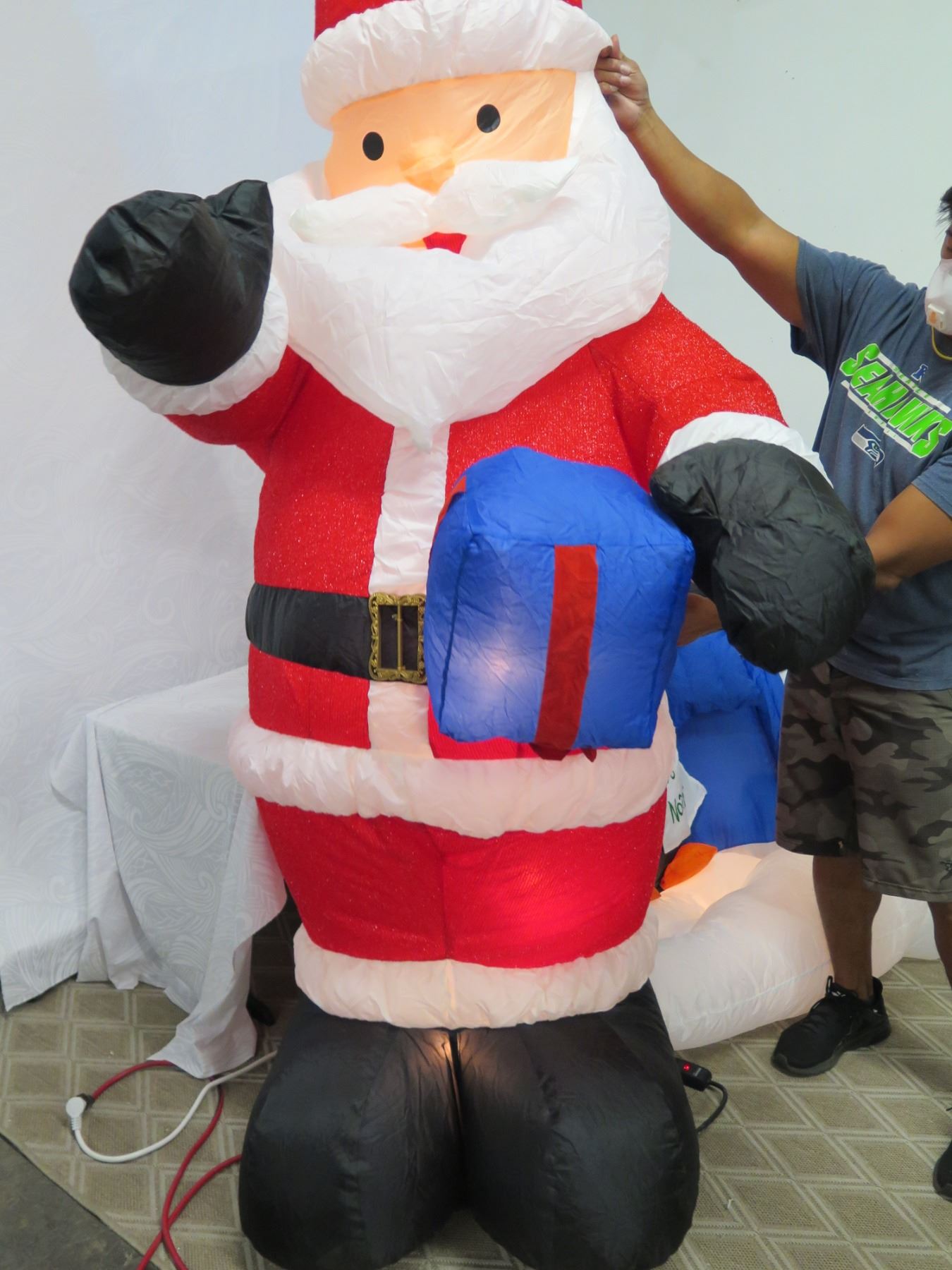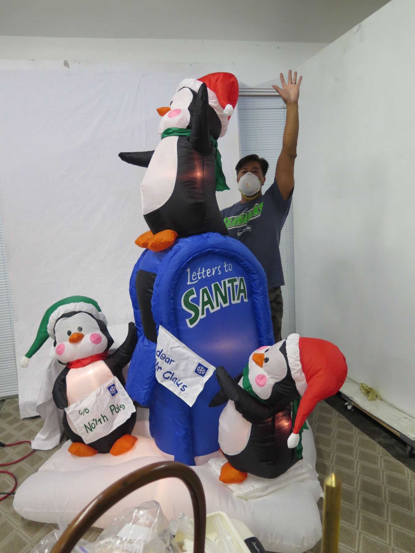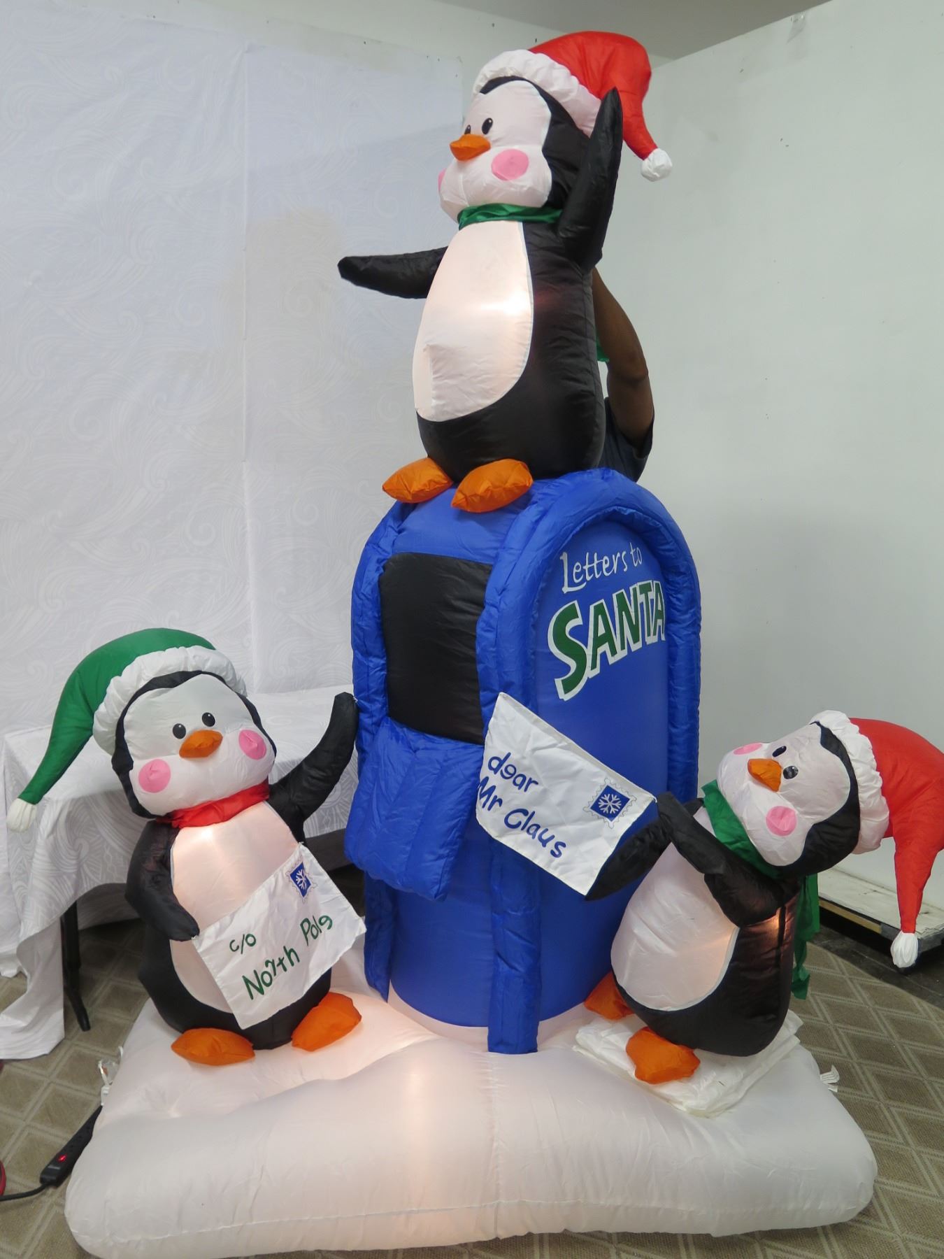 Life-Size Air Blown Santa & Penguins on Mailbox Yard Decorations