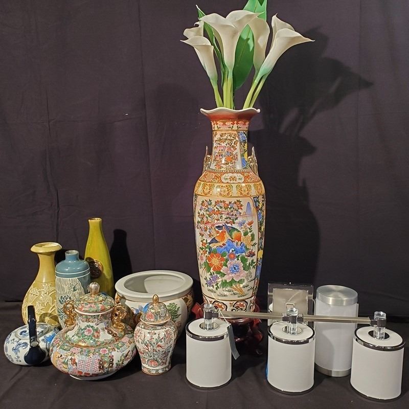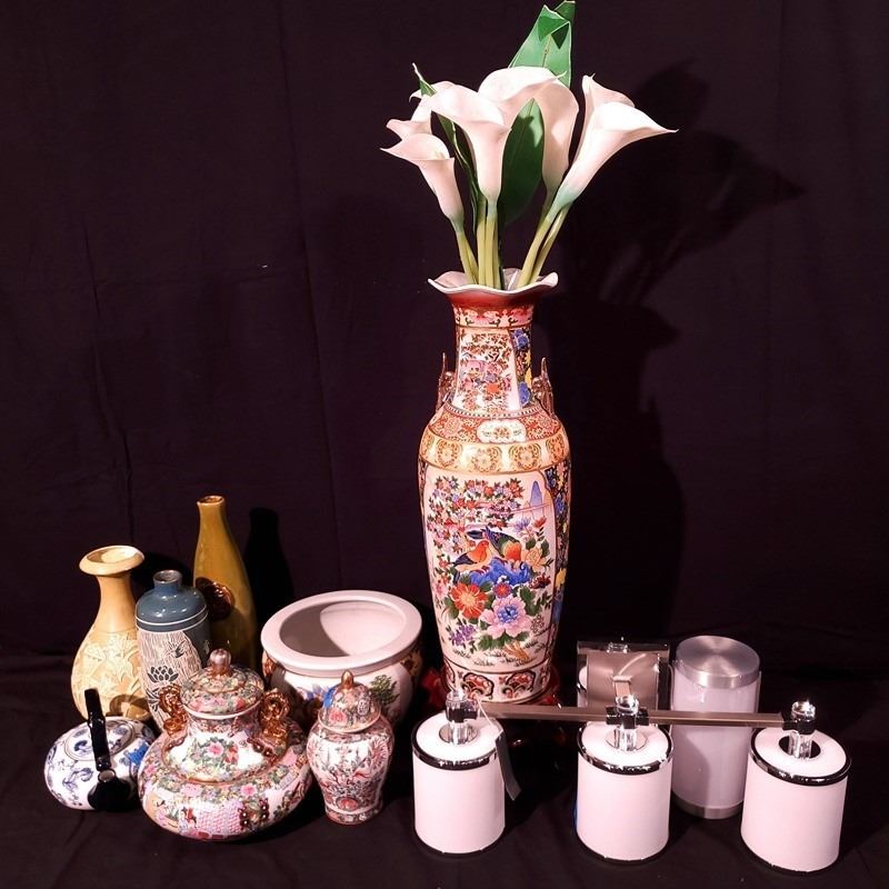 Three Wall Vanity Lights, One Outdoor Sconce, Eight Vases in Various Size