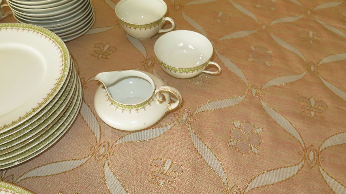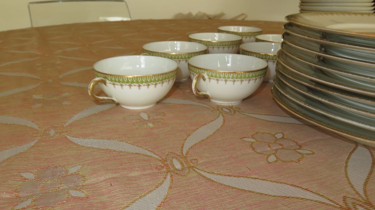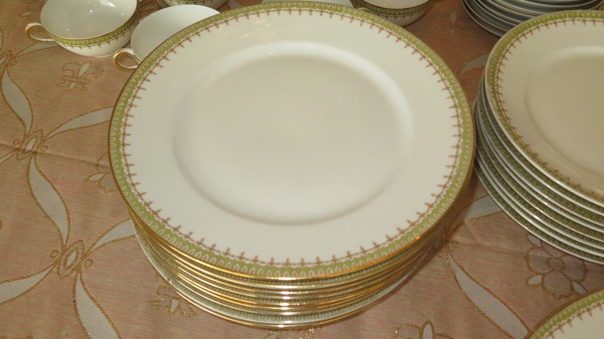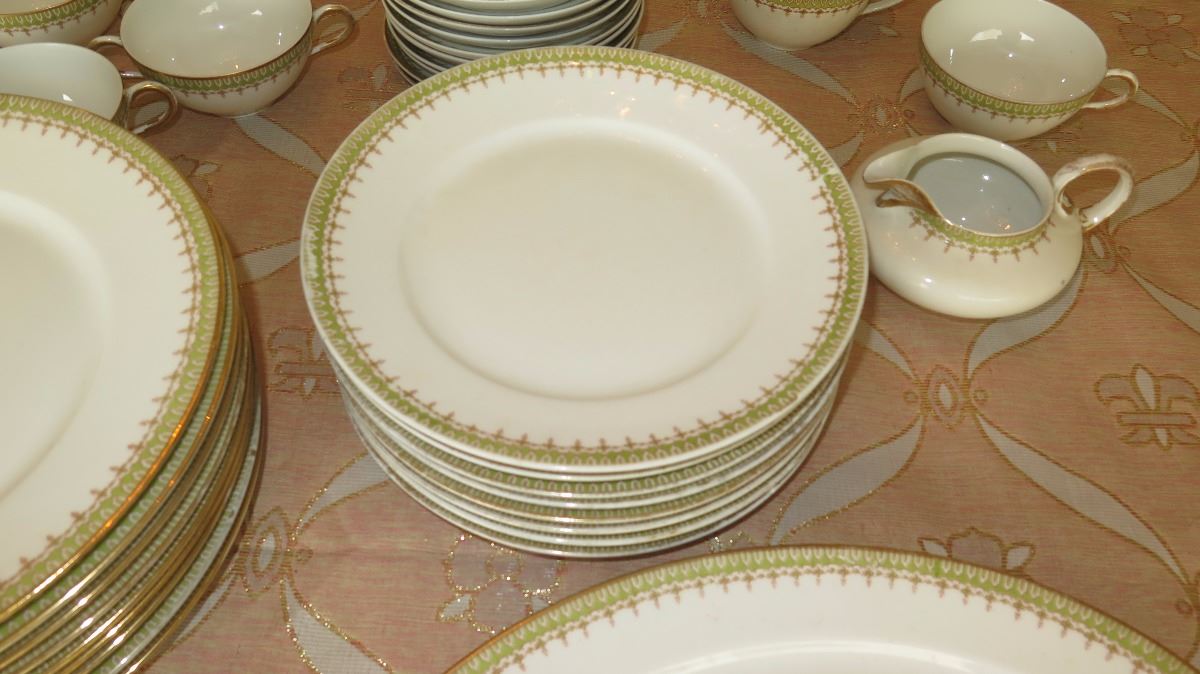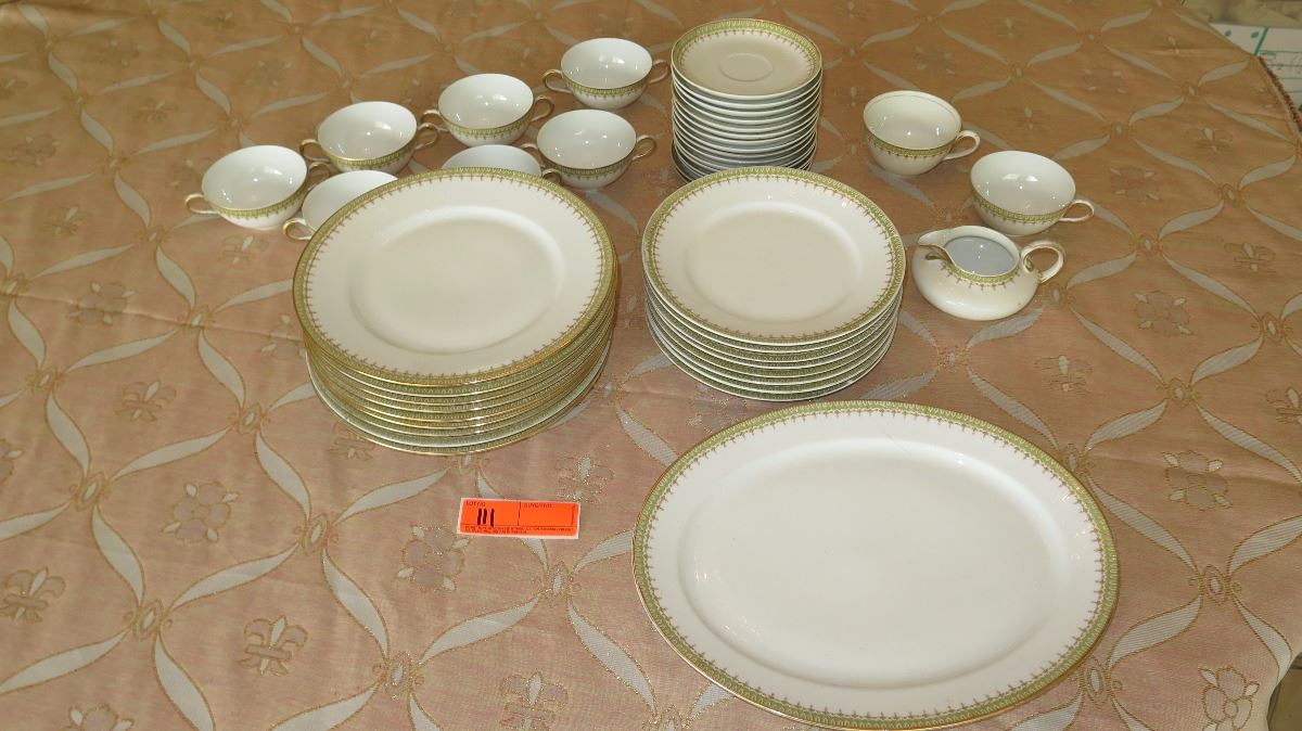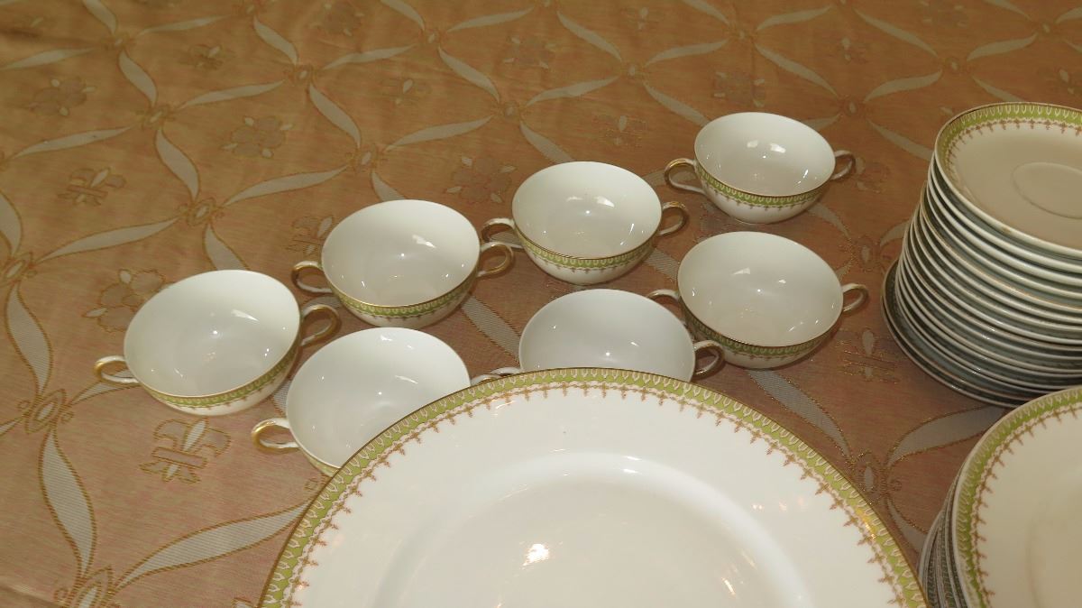 Limoges France Fine China Dinnerware Set w/Gilt Celery Border - Plates, Platter, Teacups, etc.