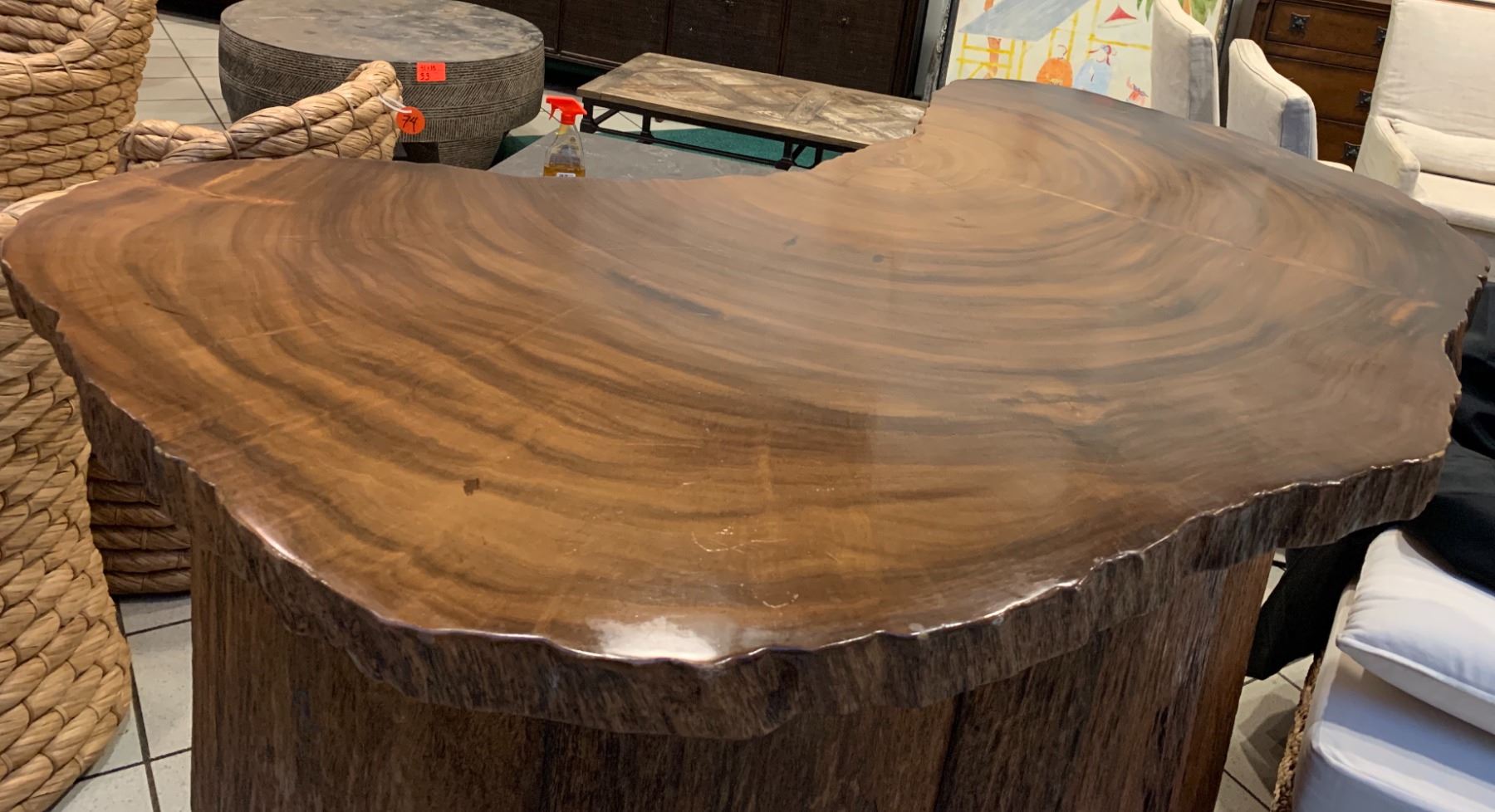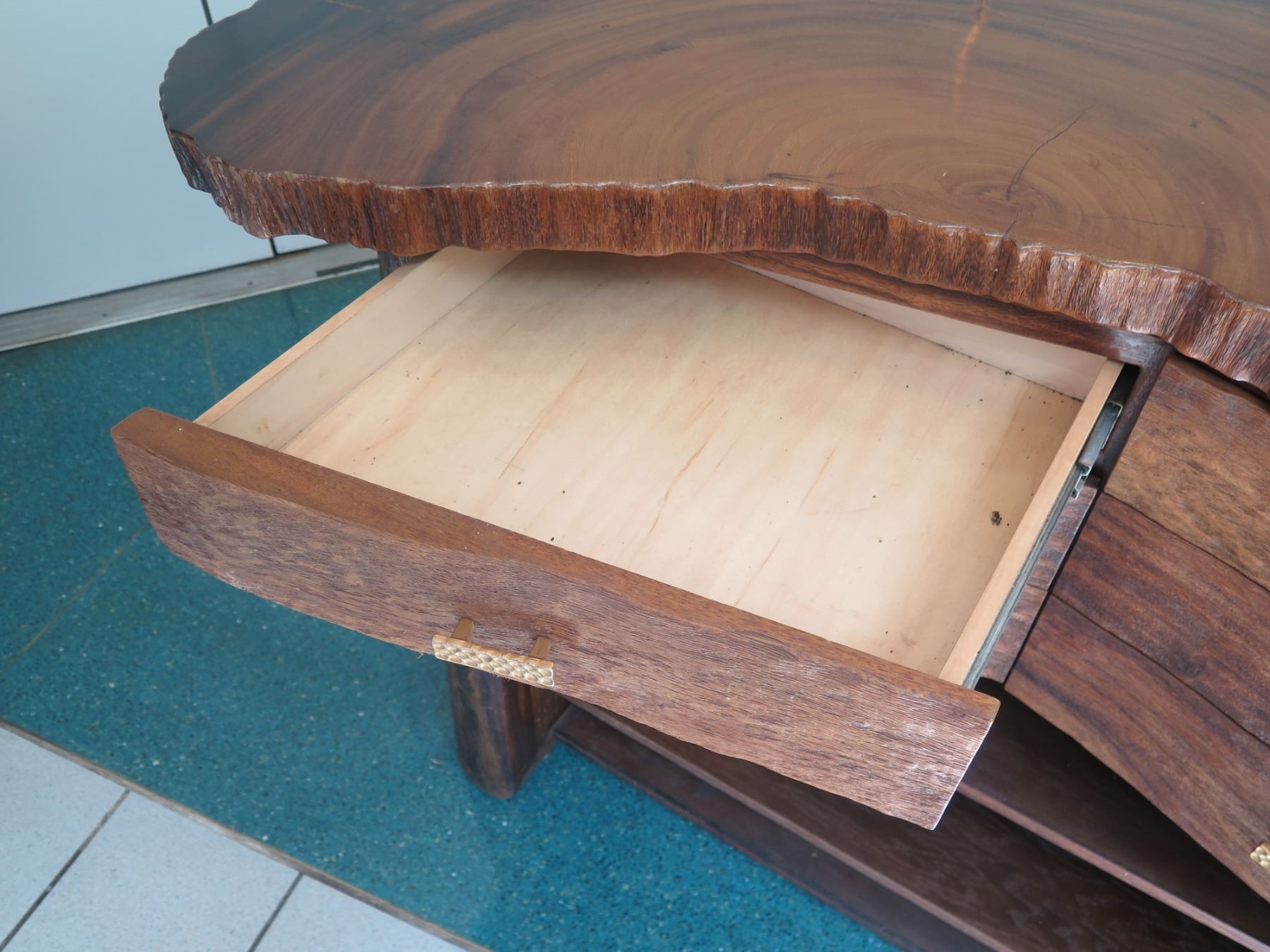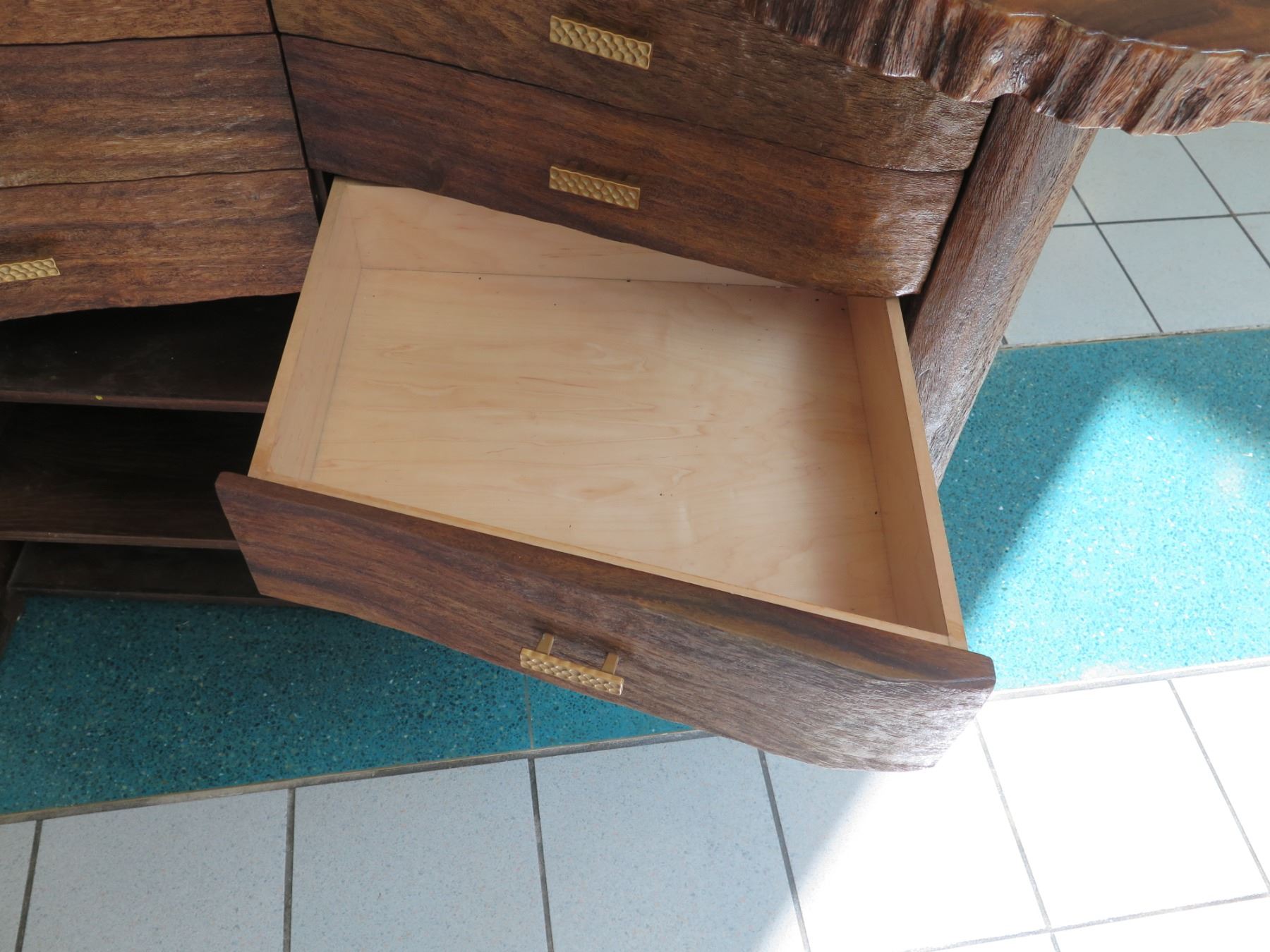 Live Edge Solid Wood Bar w/ Drawers & Shelving on Reverse, 62"x29"x42"H