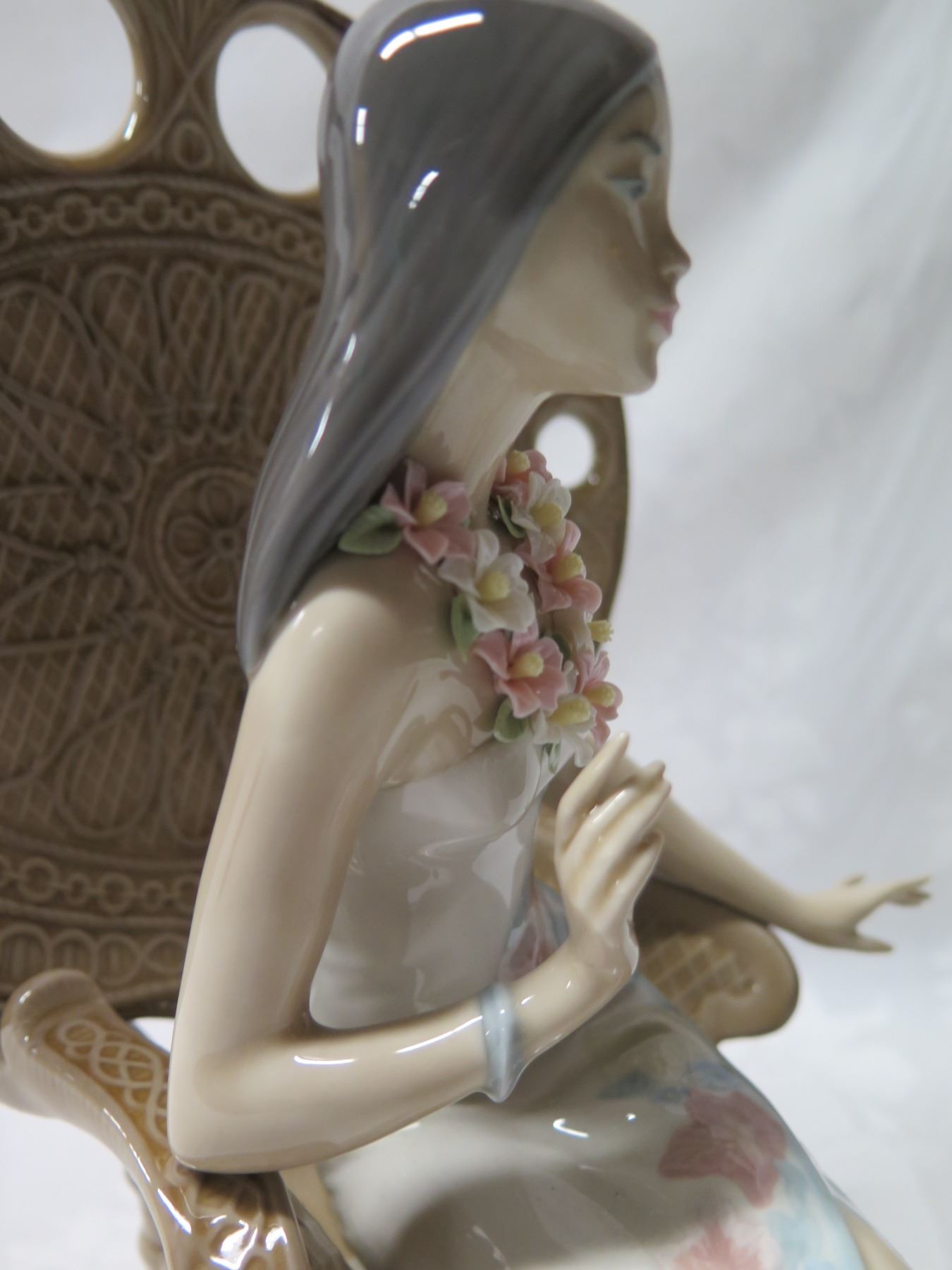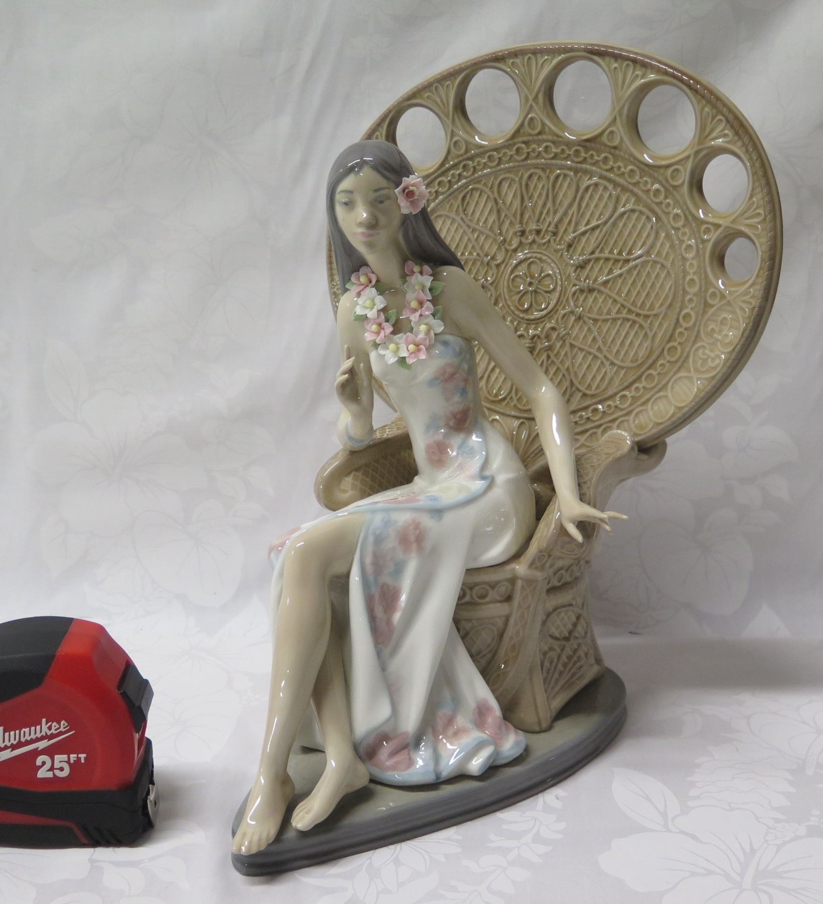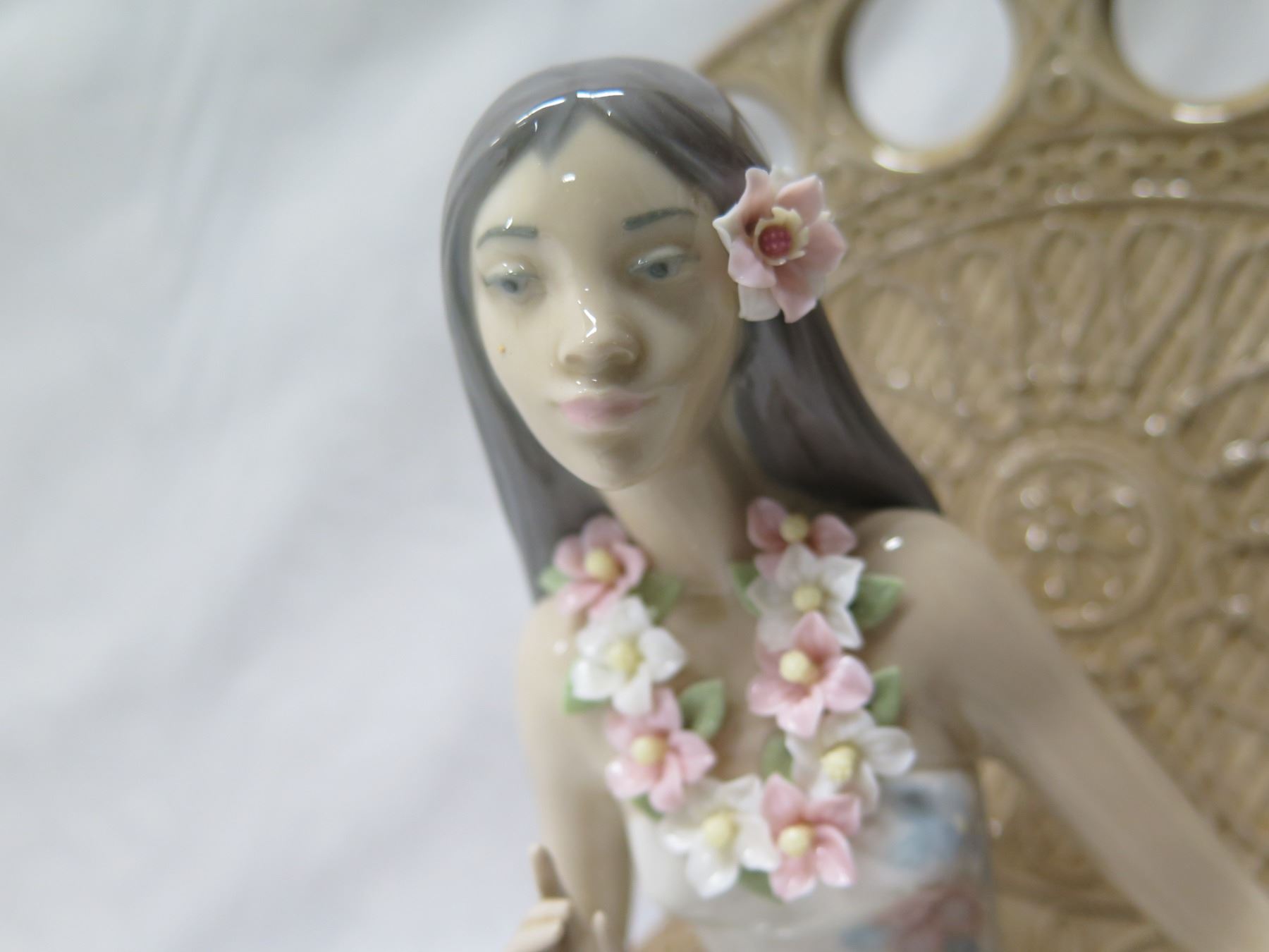Lladro Seated Girl w/ Lei Figurine 9"L x 11"H