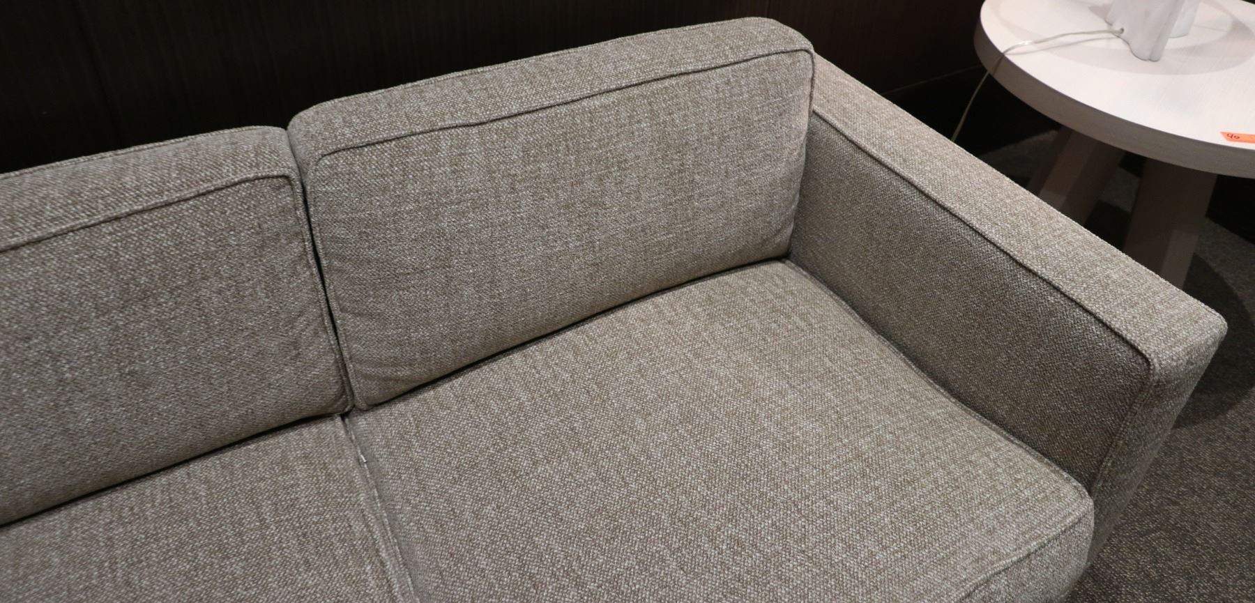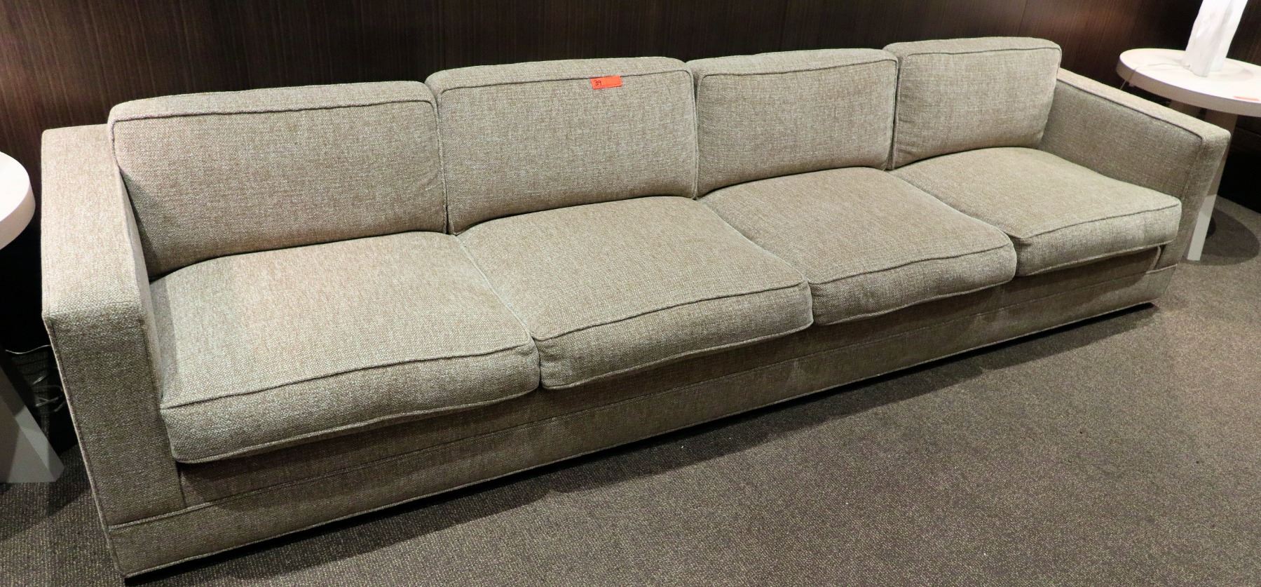 Long Beige/Brown Sofa - 10’6 L, 35” Back to Front, 25” Frame Height