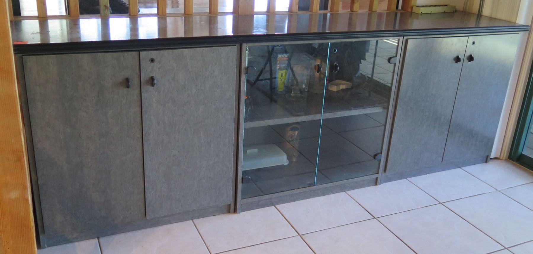 Long Cabinet w/ 3 Double Door Cabinet Sections 98"x18"x33"H (Contents Not Included)