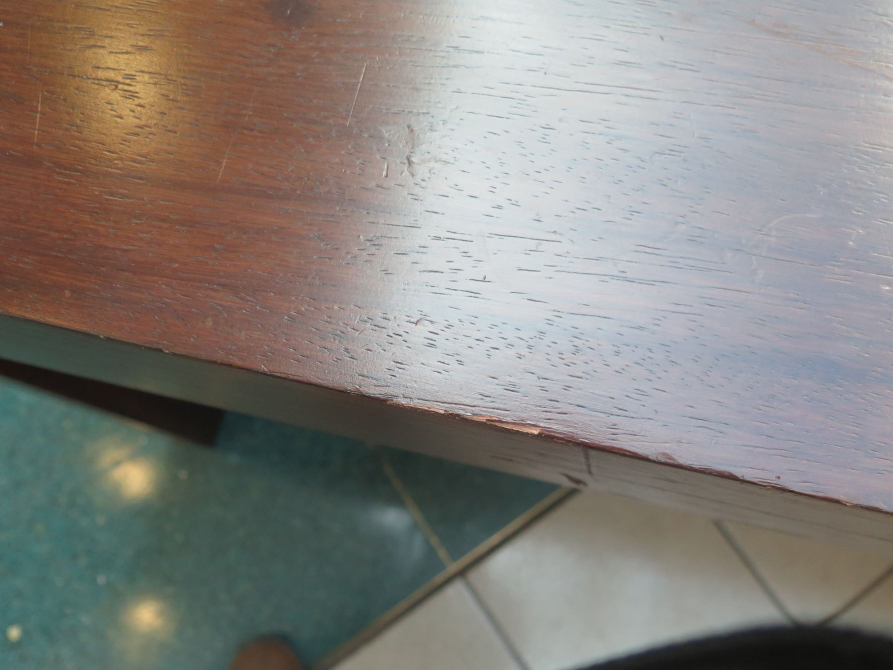 Long Wooden Console Table w/ Center Drawer 84"x20"x30"H (shows scratches/surface wear)