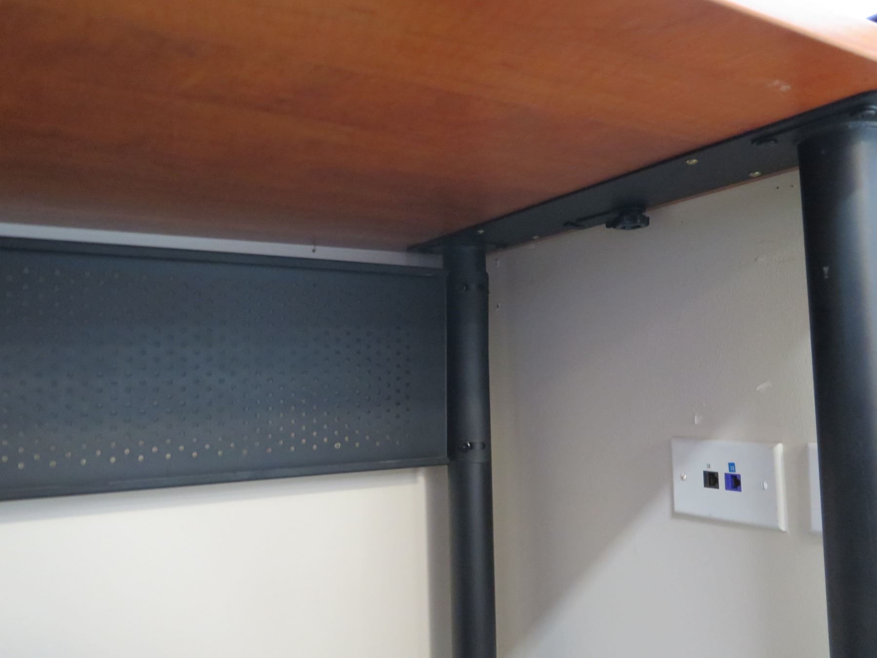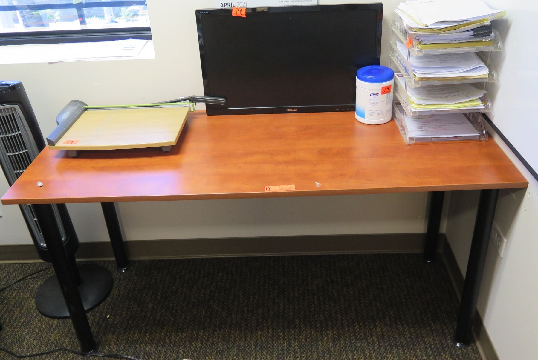 Long Wooden Table 59 x24 x28 H w/ Paper Cutter, ASUS Monitor, Organizer, etc