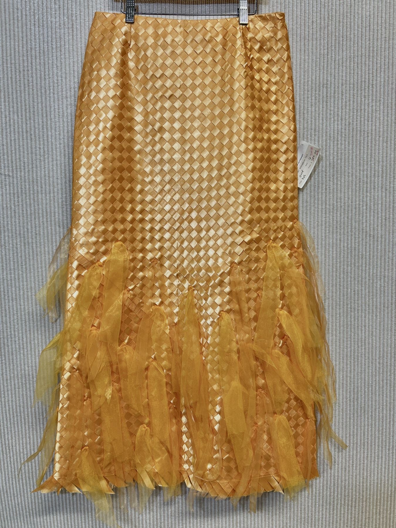 Christina Von Fieandt Long Woven Gold Skirt w/ Chiffon Ribbon Ties, Size 6, New with Tag (Original Retail $750).