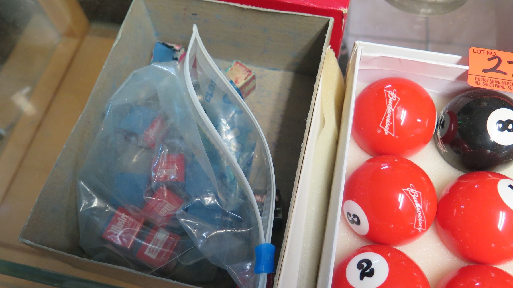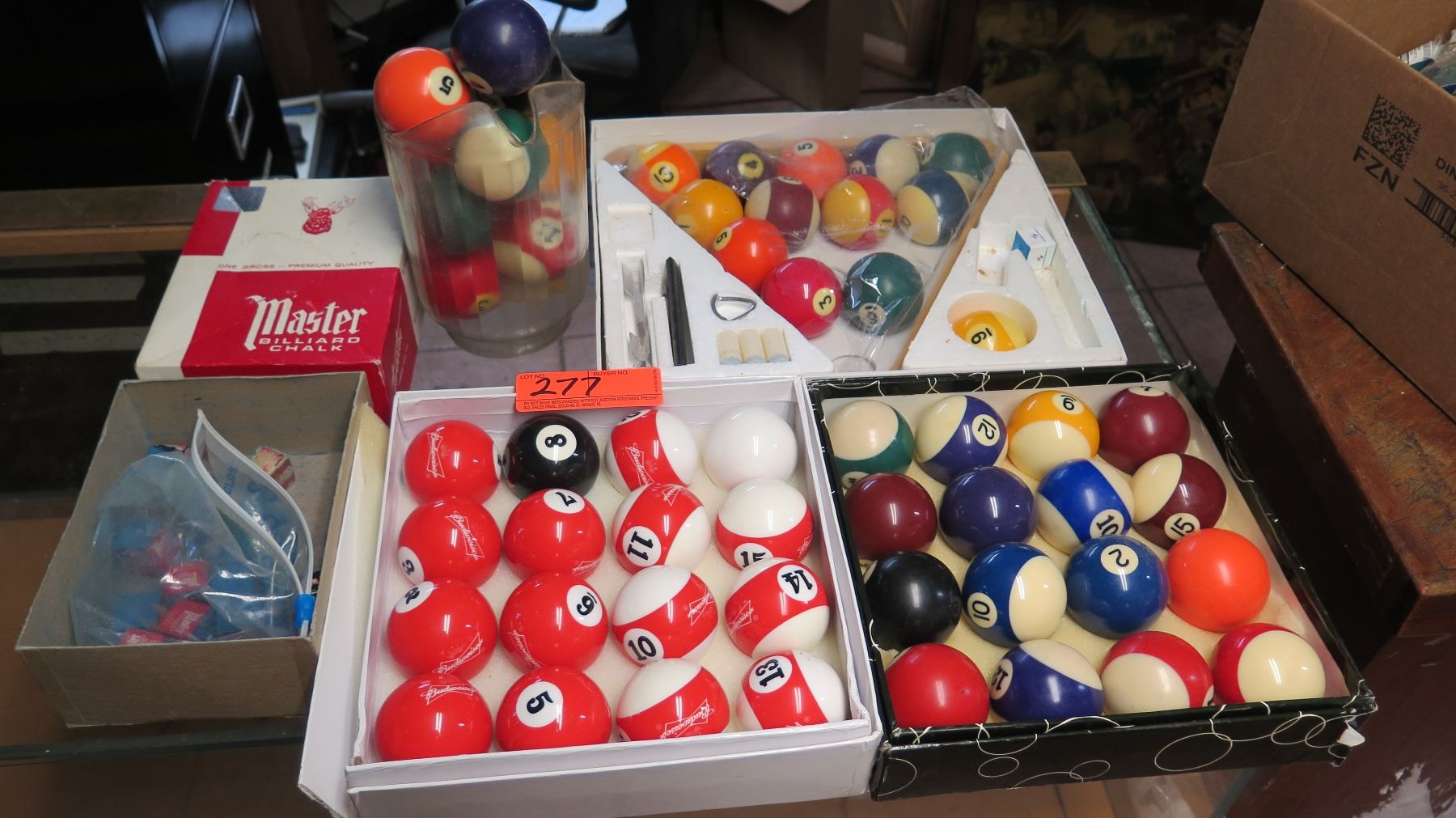 Lot of Misc. Billiards Balls, Pool Cue Chalk, etc.