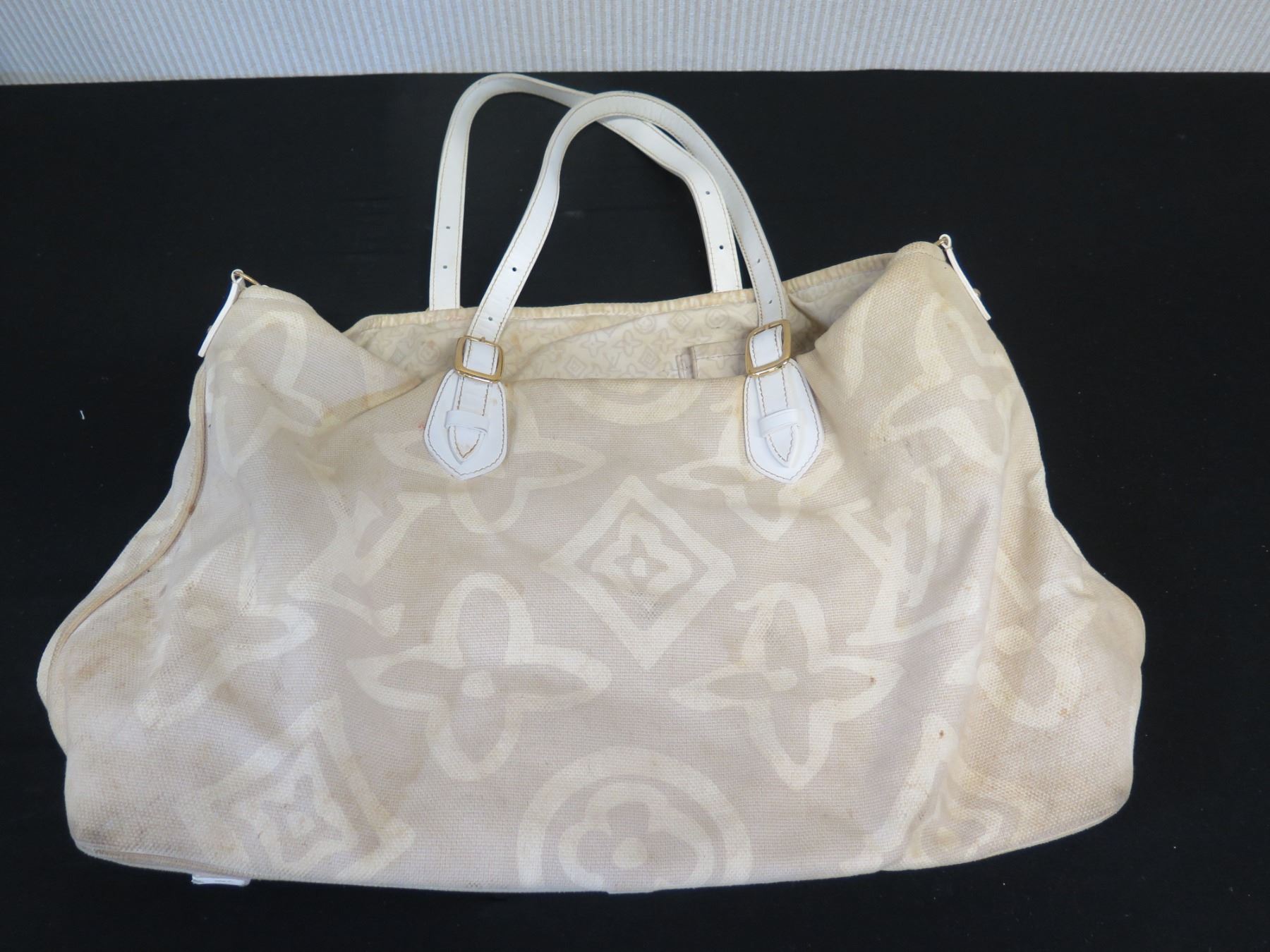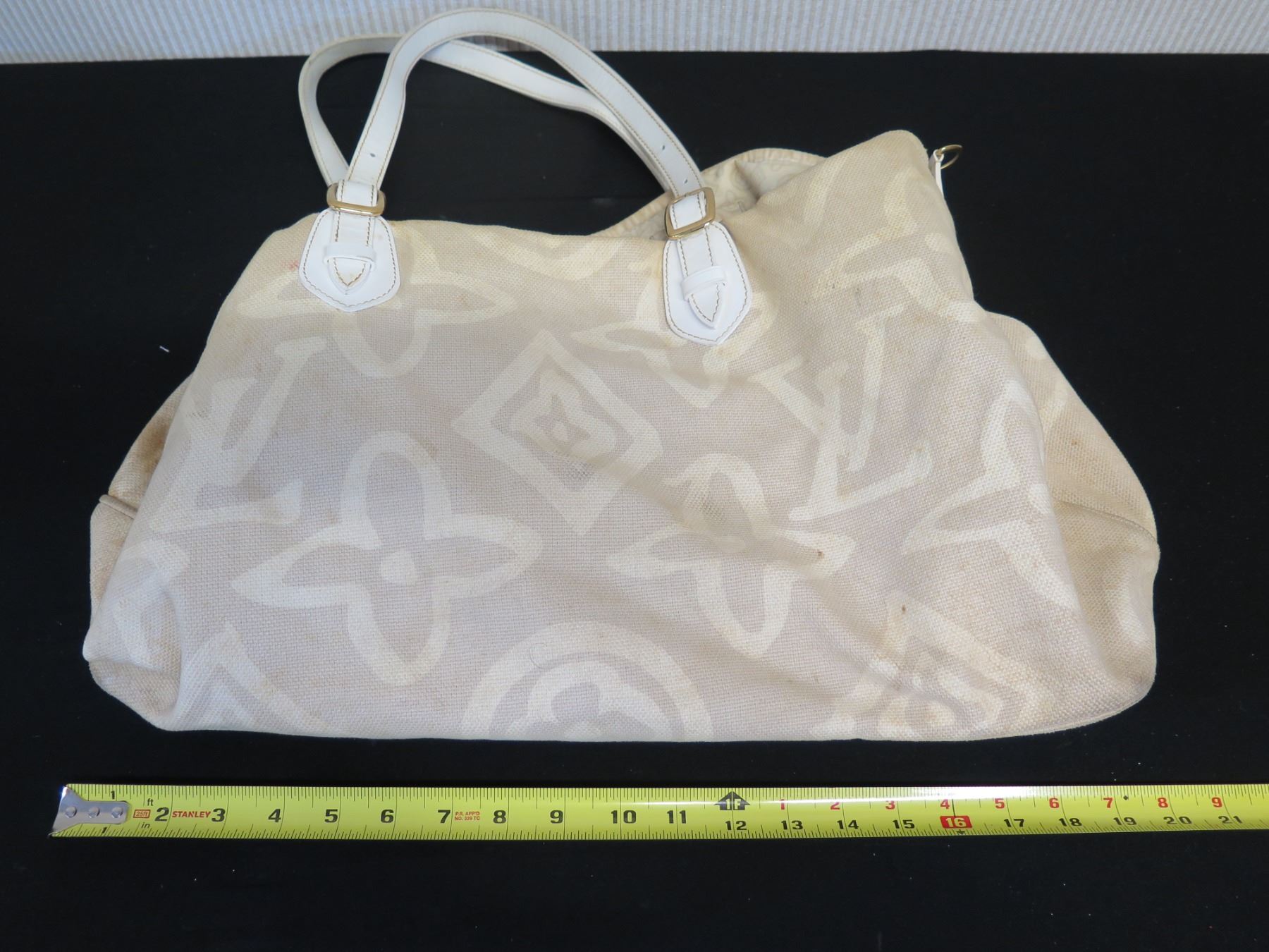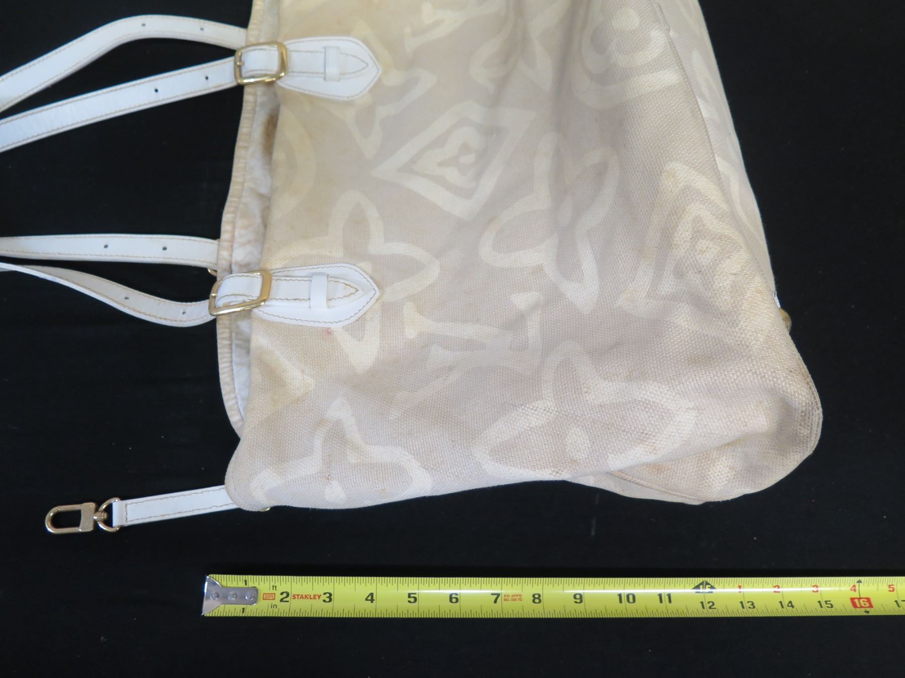 Louis Vuitton White Tote Bag w/ Leather Strap 20" x 15"