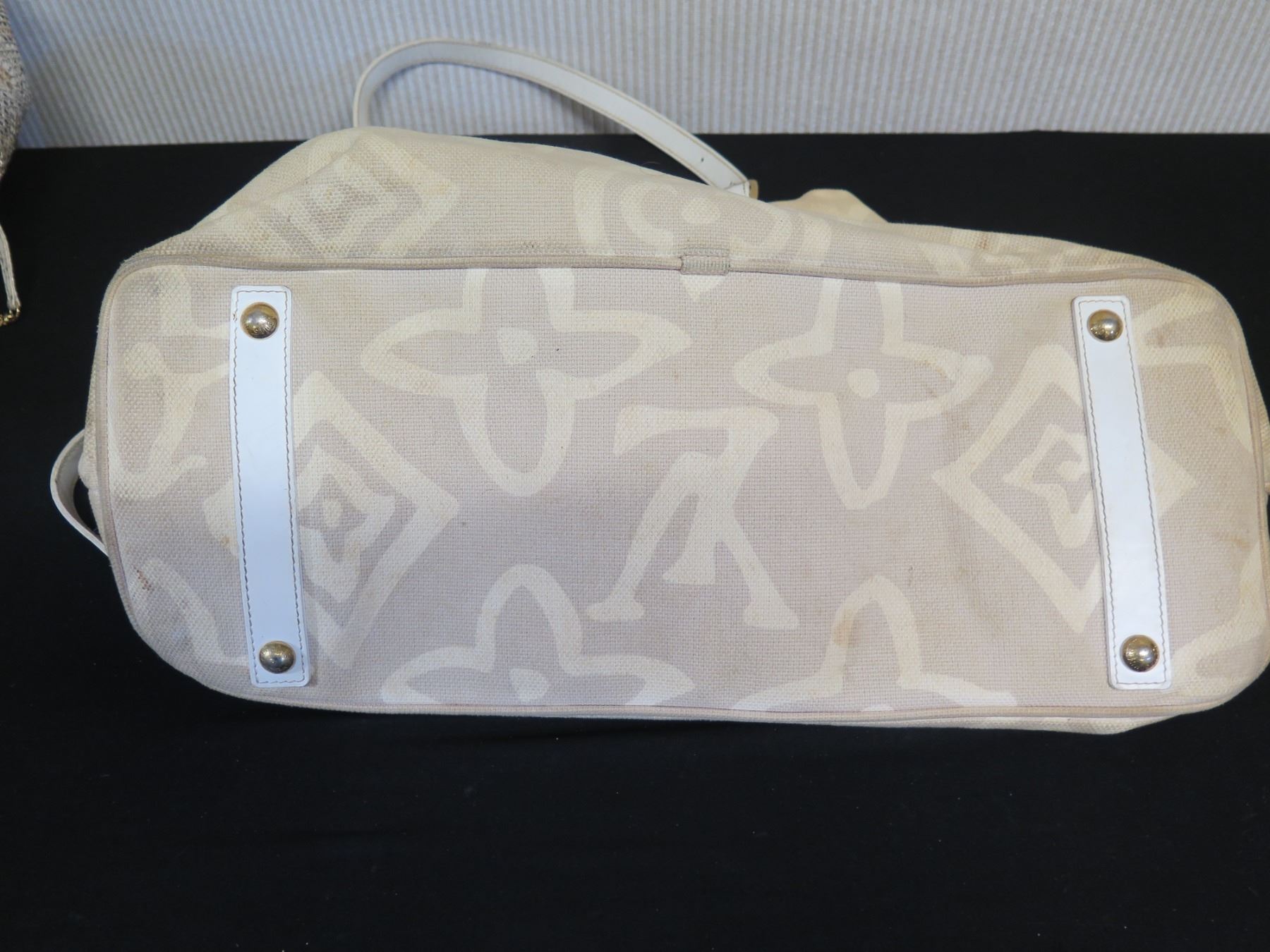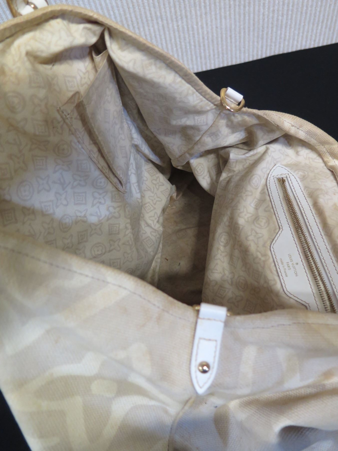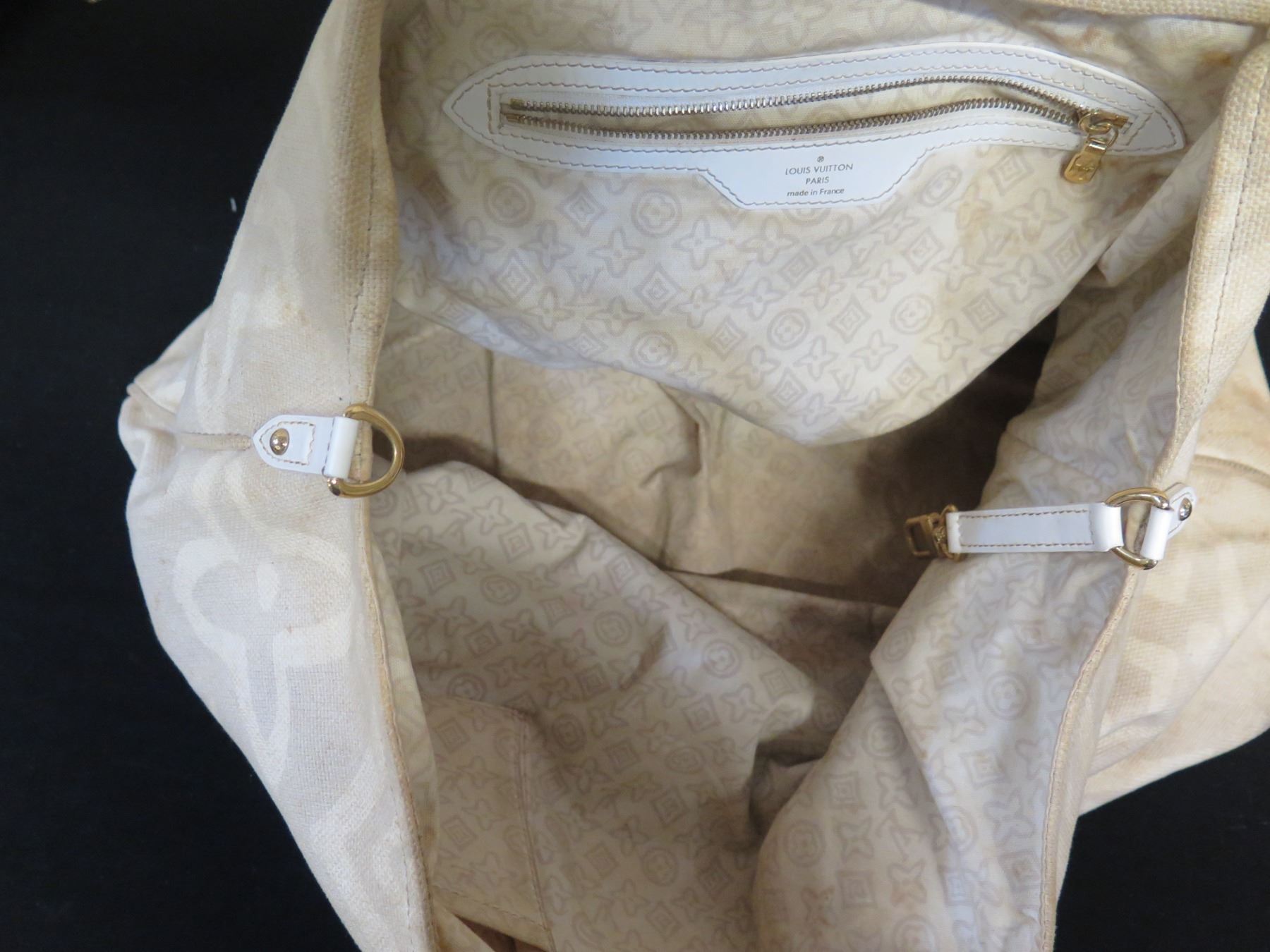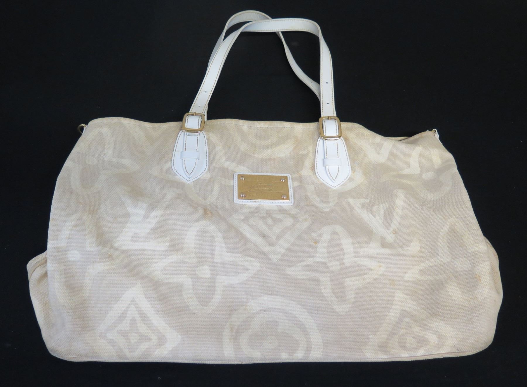 Louis Vuitton White Tote Bag w/ Leather Strap 20" x 15"