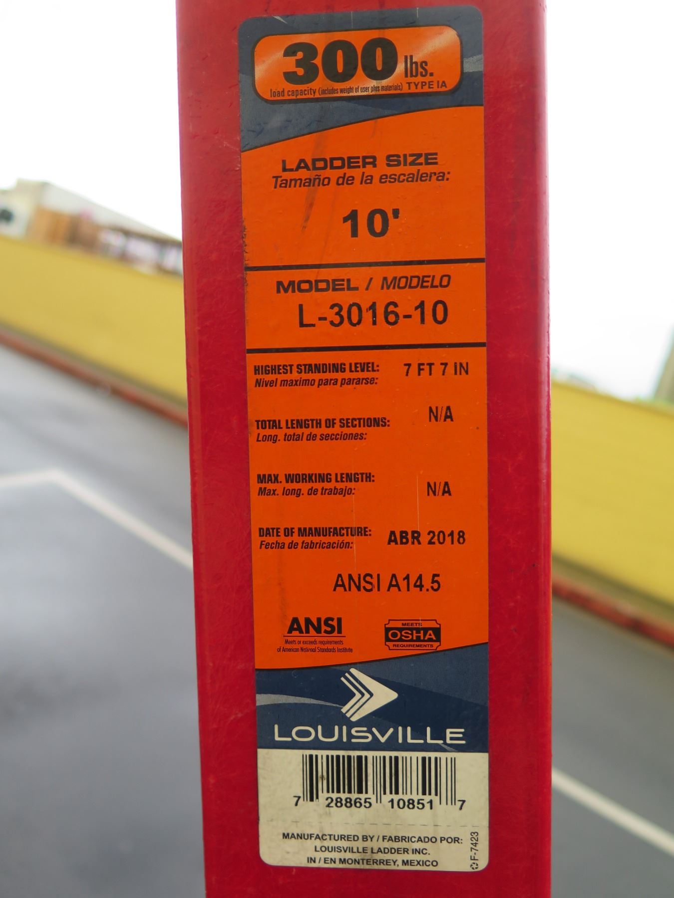 Louisville L-3016-10 Step Ladder, 10'H, 300 lb. Capacity