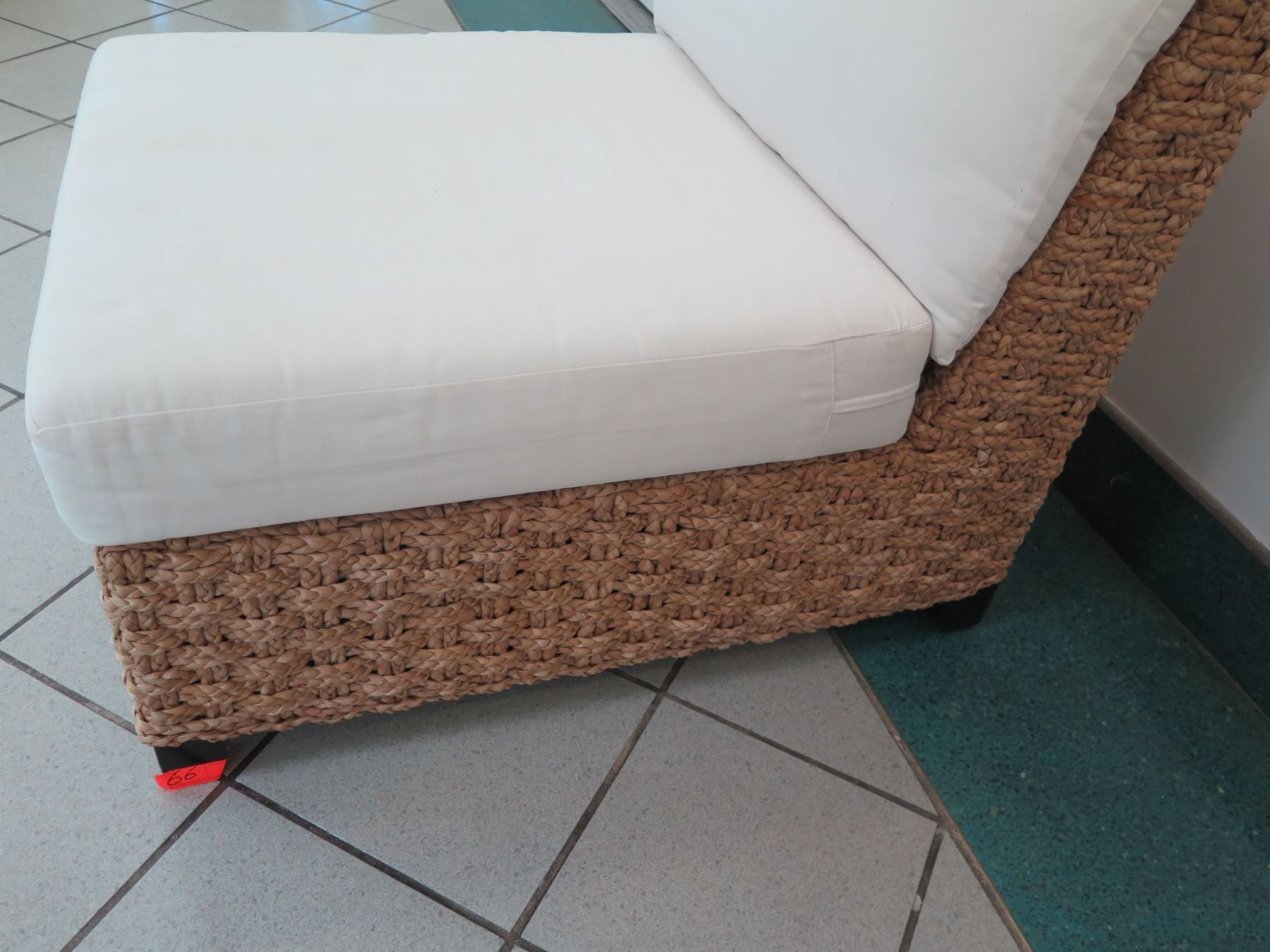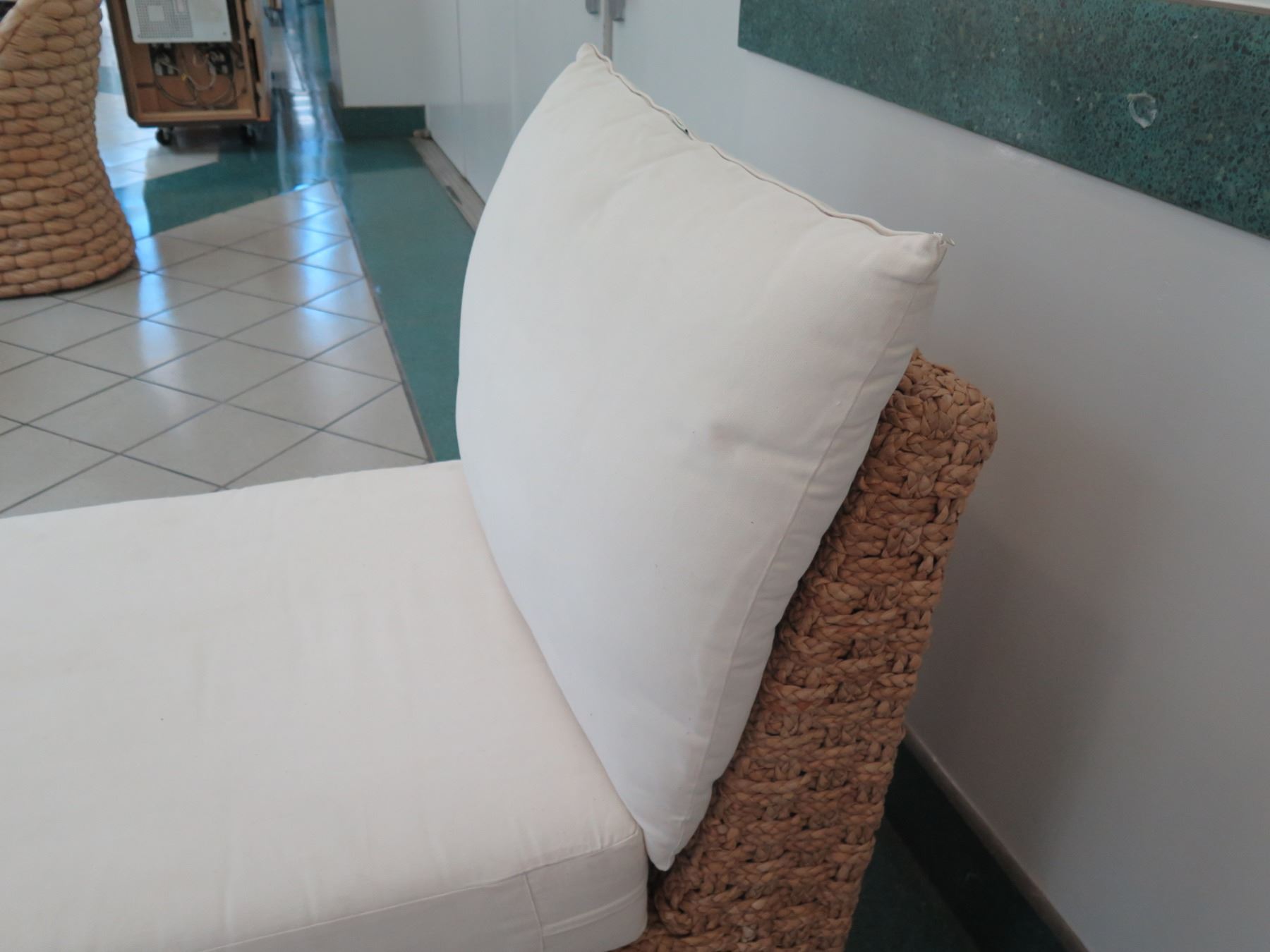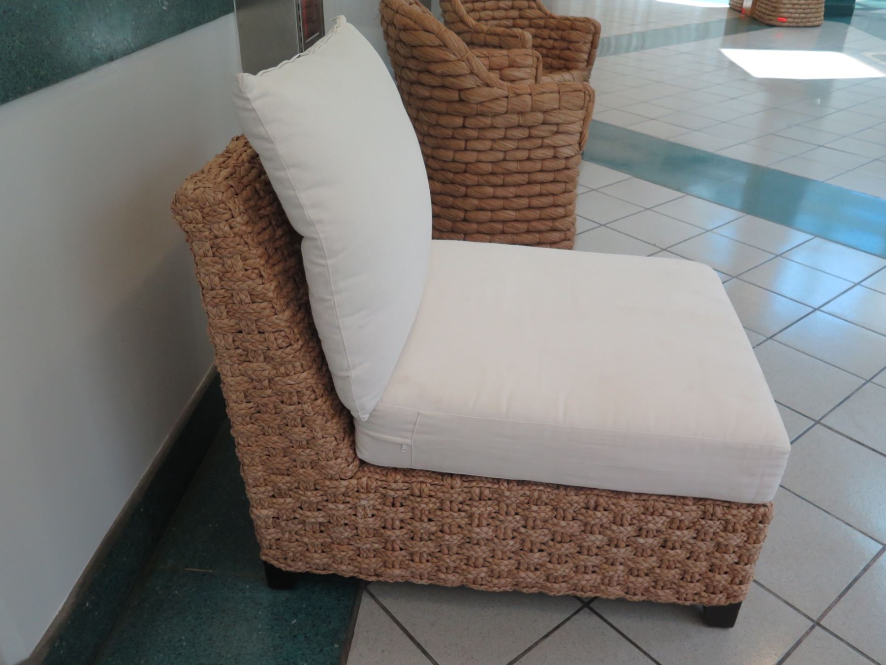 Lounge Chair w/ Woven Base and White Cushions 28" x 36" x 32" Back Ht.