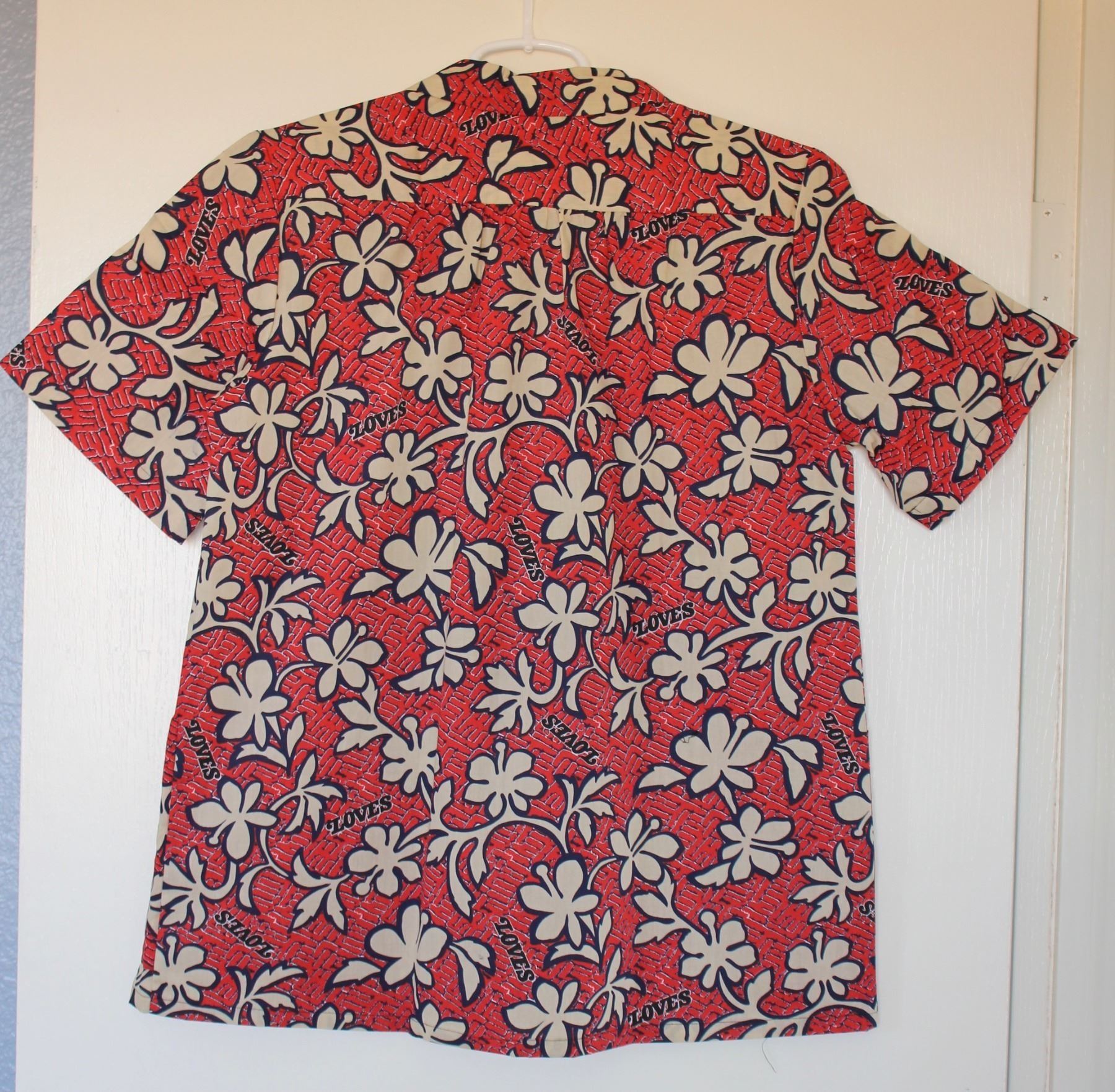 Love's Bakery Logo Red Floral Print Aloha Shirt Size 4X