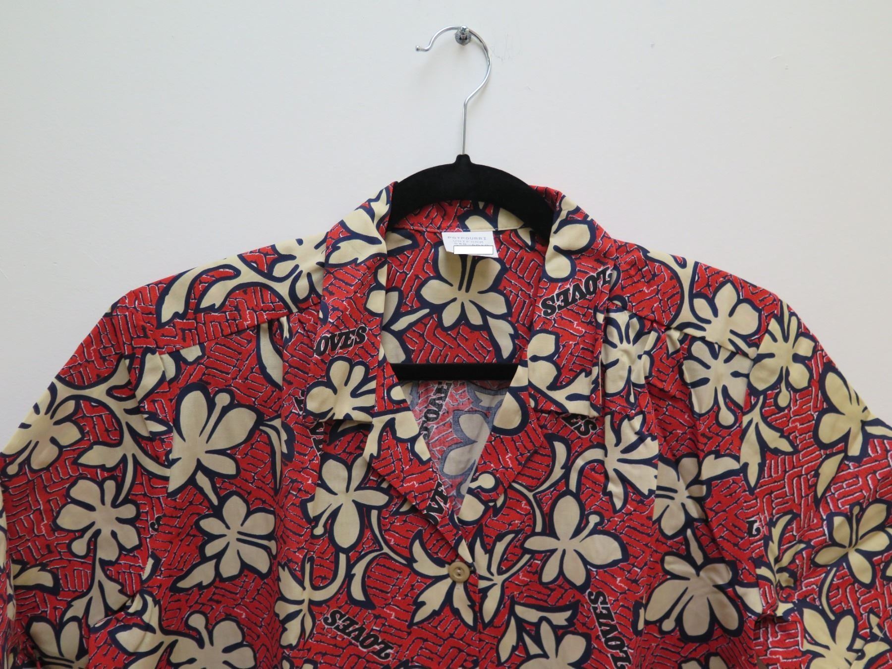 Love's Bakery Logo Red Floral Print Aloha Shirt Size Medium