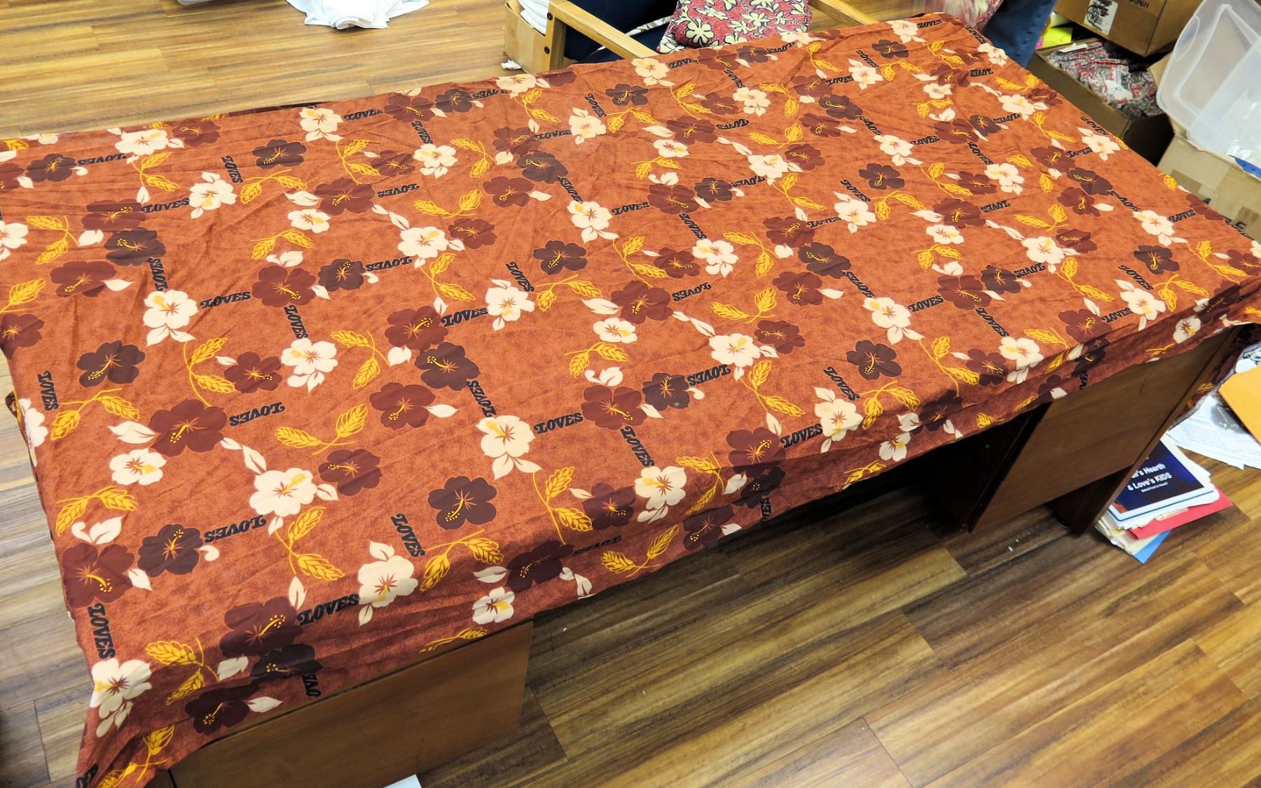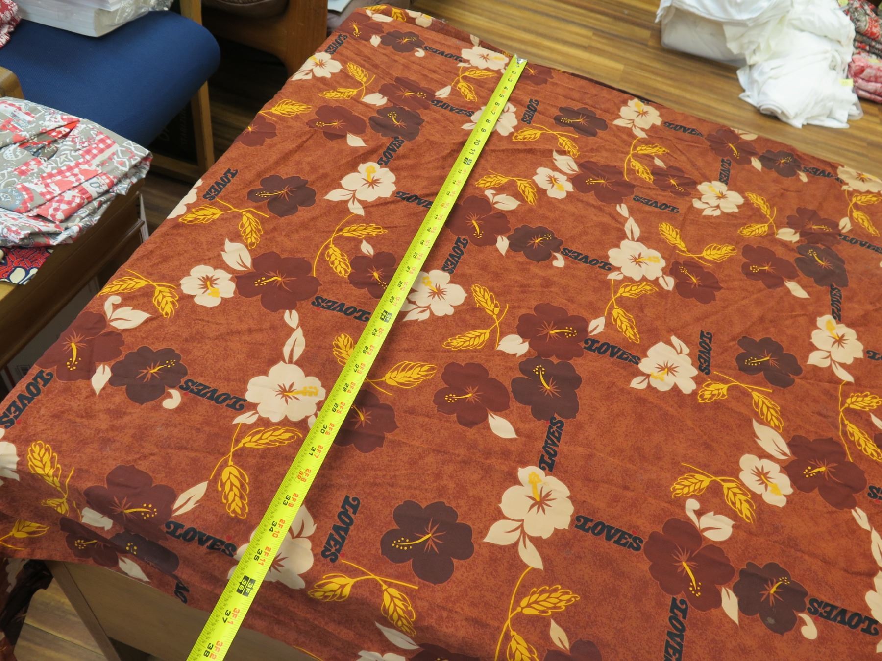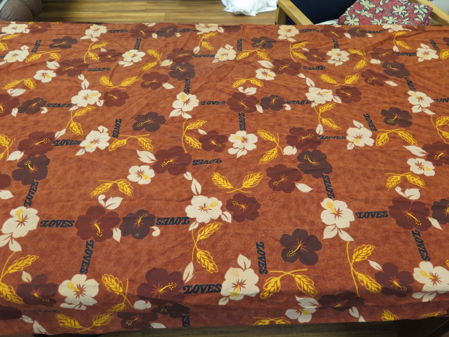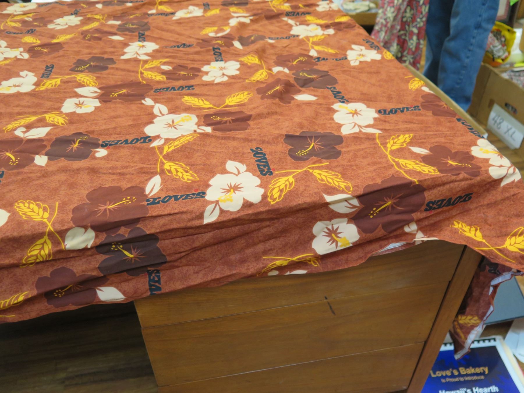 Love's Bakery Red Floral Logo Fabric 76"x36"