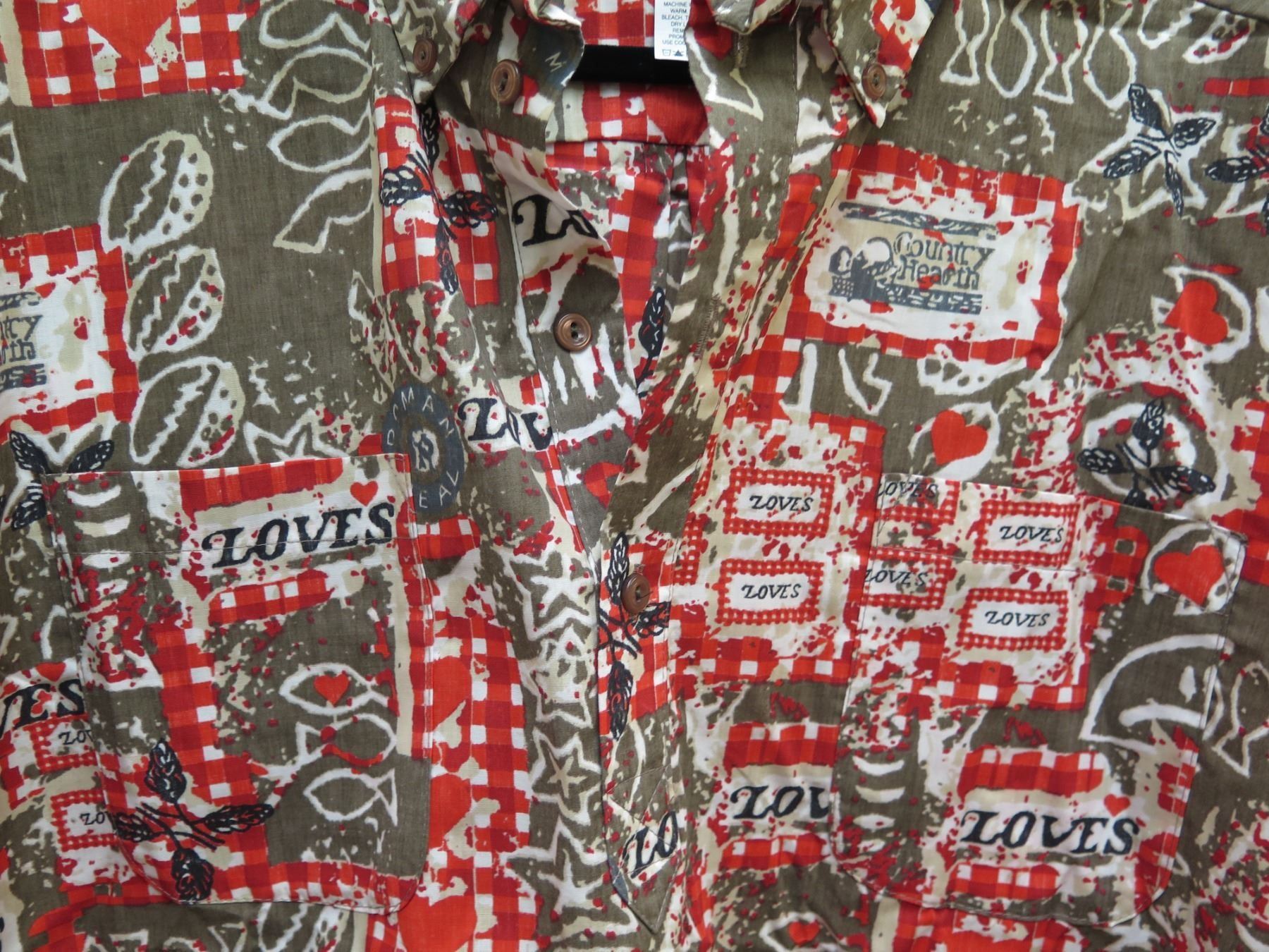 Love's Logo Red Gray House of Uniforms Aloha Shirt Size XL