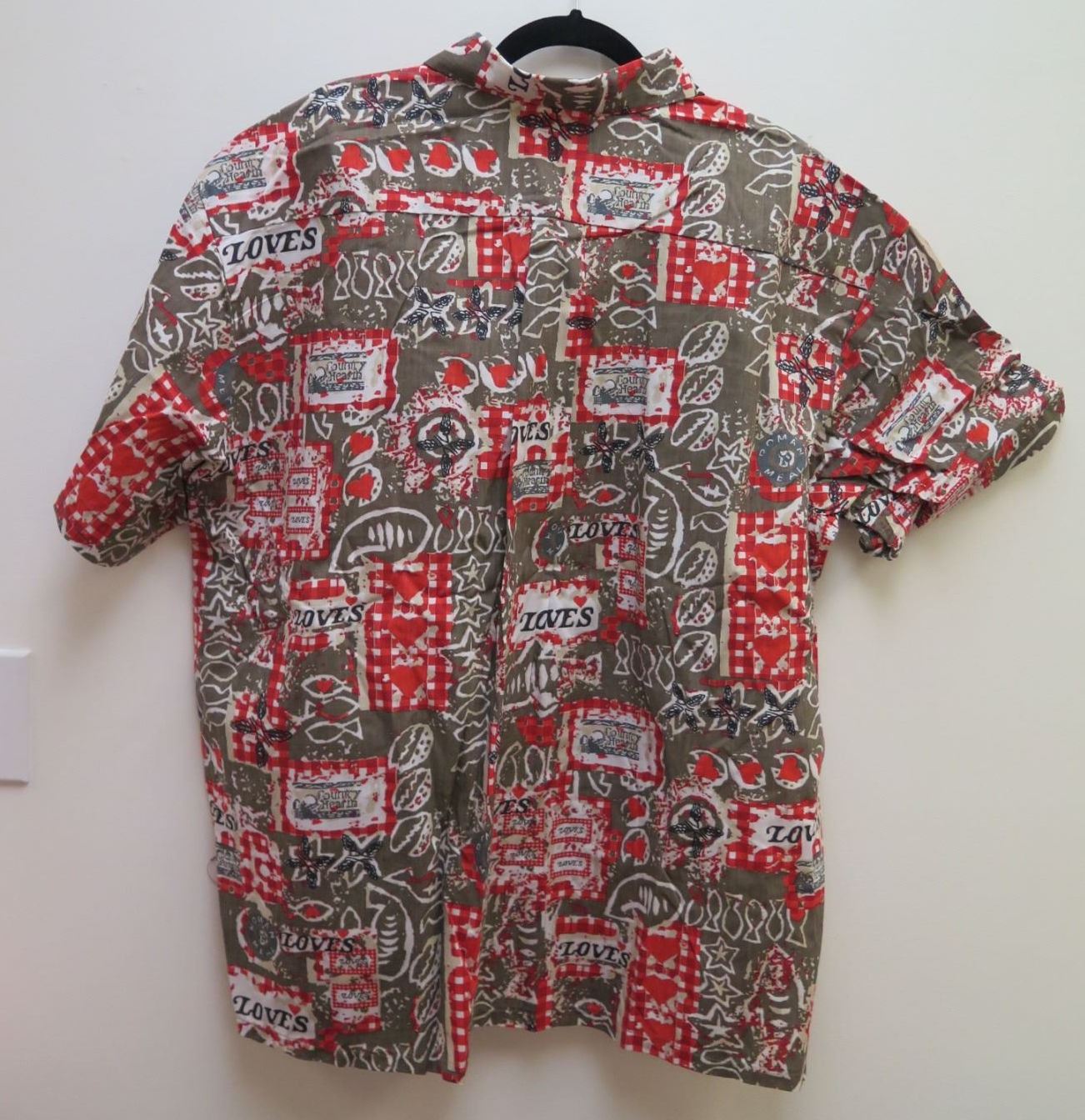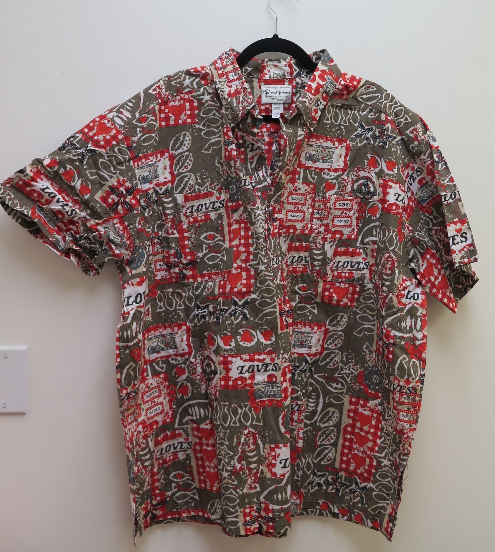 Love's Logo Red Gray House of Uniforms Aloha Shirt Size XL