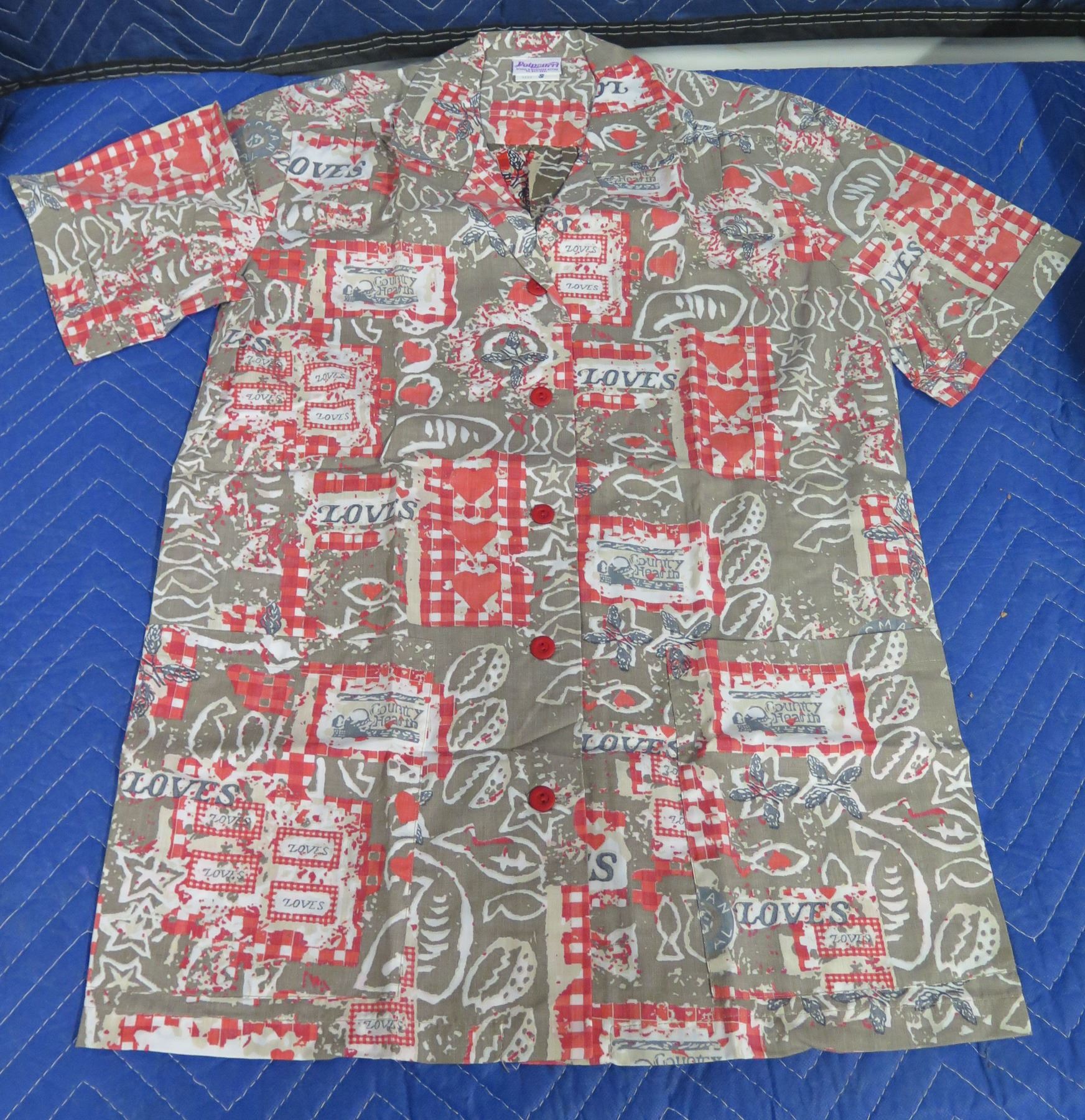 Love's-Themed Potpourri Red & Gray Aloha Shirt, Size Small
