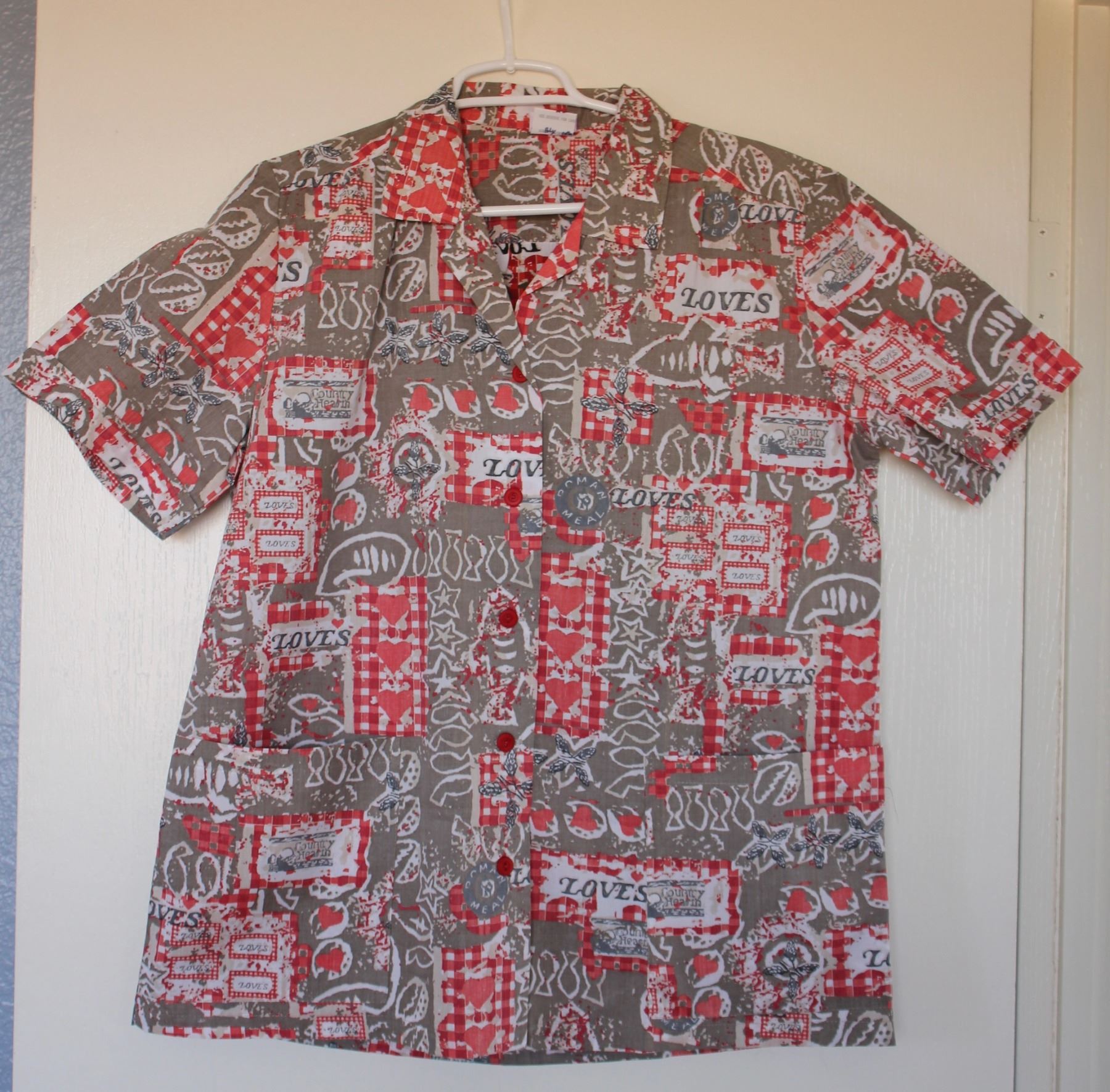Love's-Themed Red & Gray Aloha Shirt, Size 3X