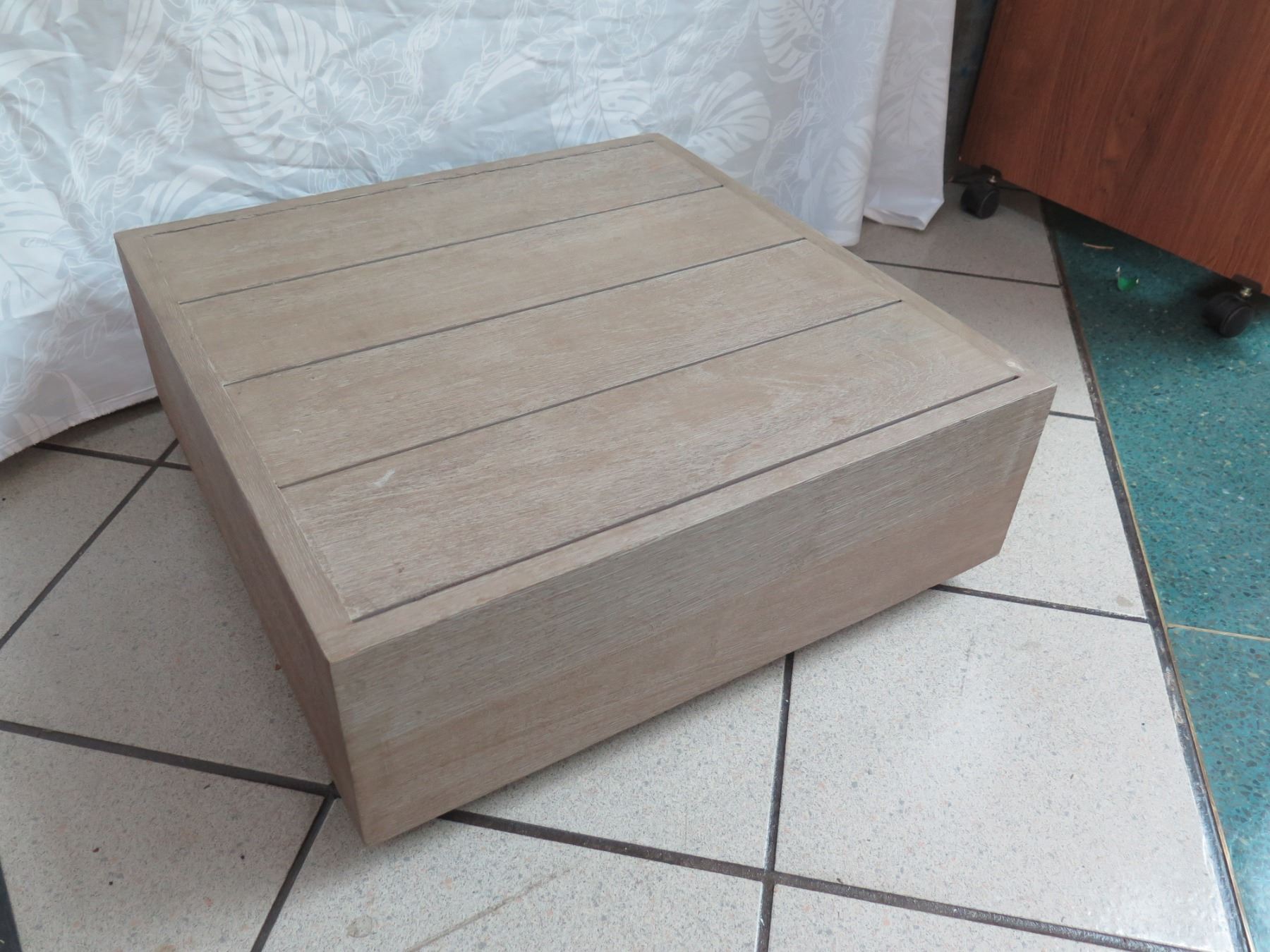 Low Wooden Ottoman, Distressed Finish, No Cushion 22”x22”x8.5”H