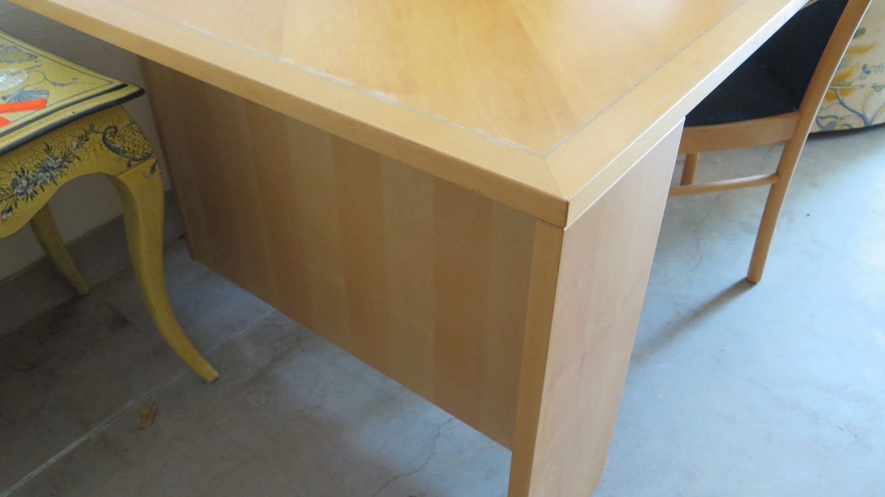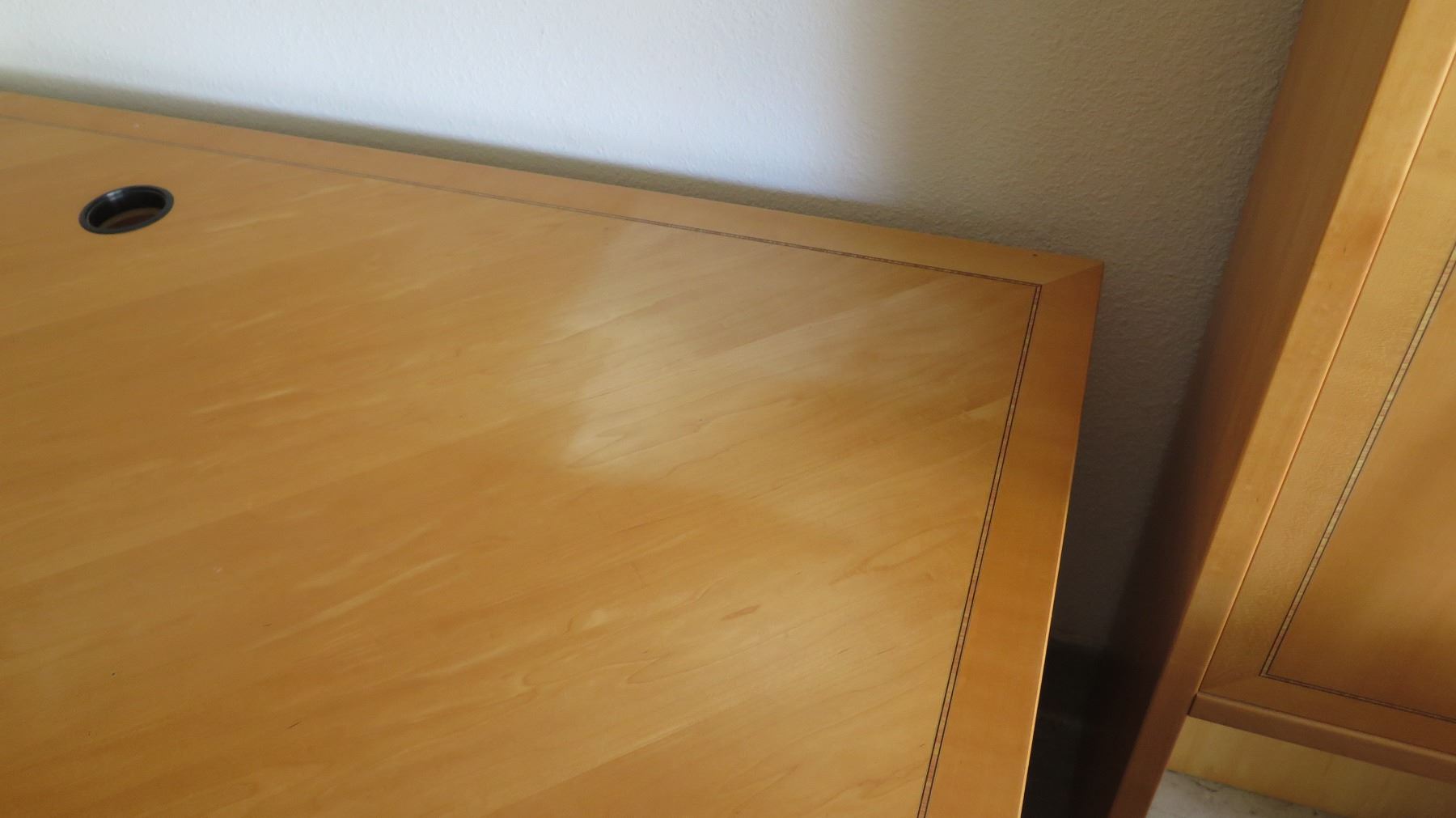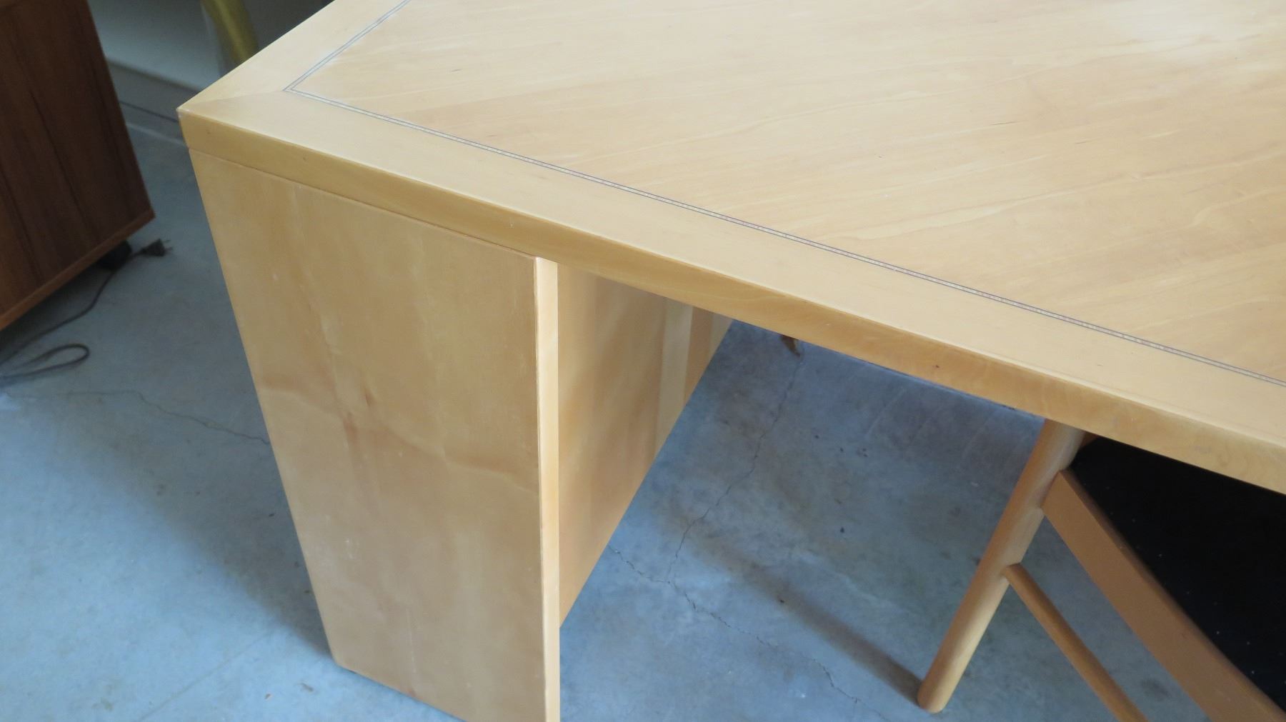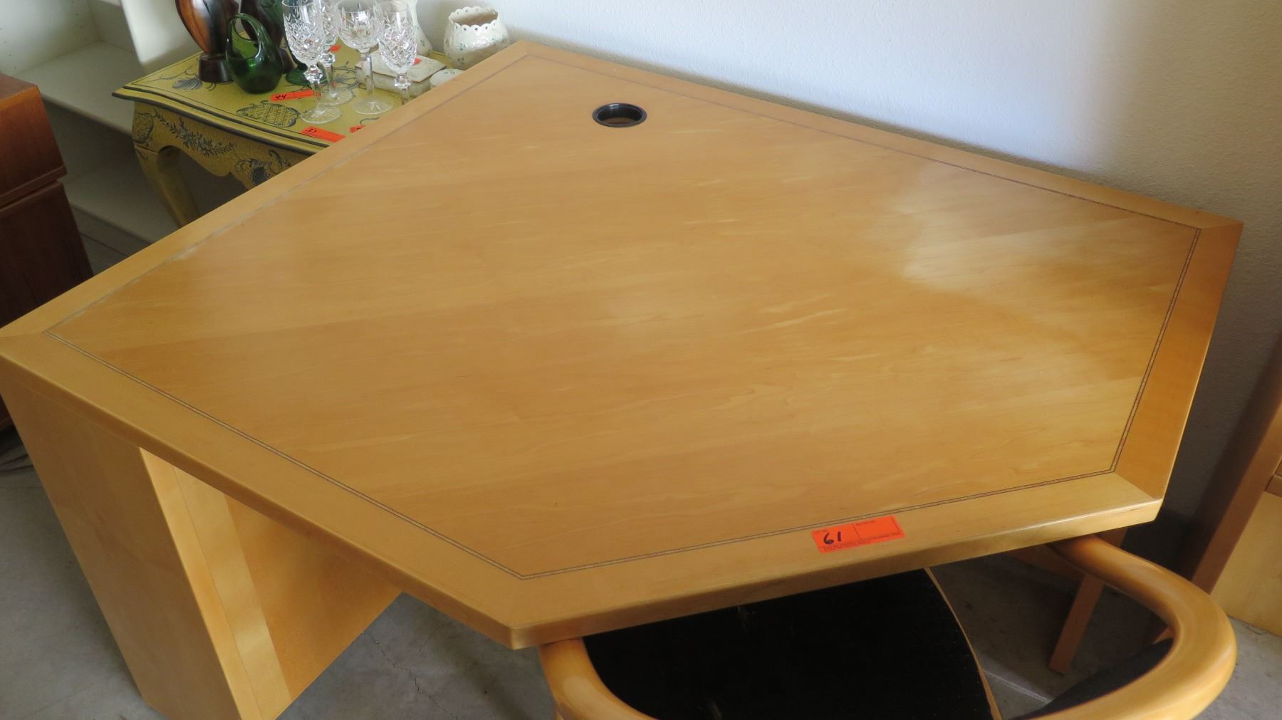 Lt. Wood Corner Desk with Chair, Detail Accent (some fading towards right), 48X42
