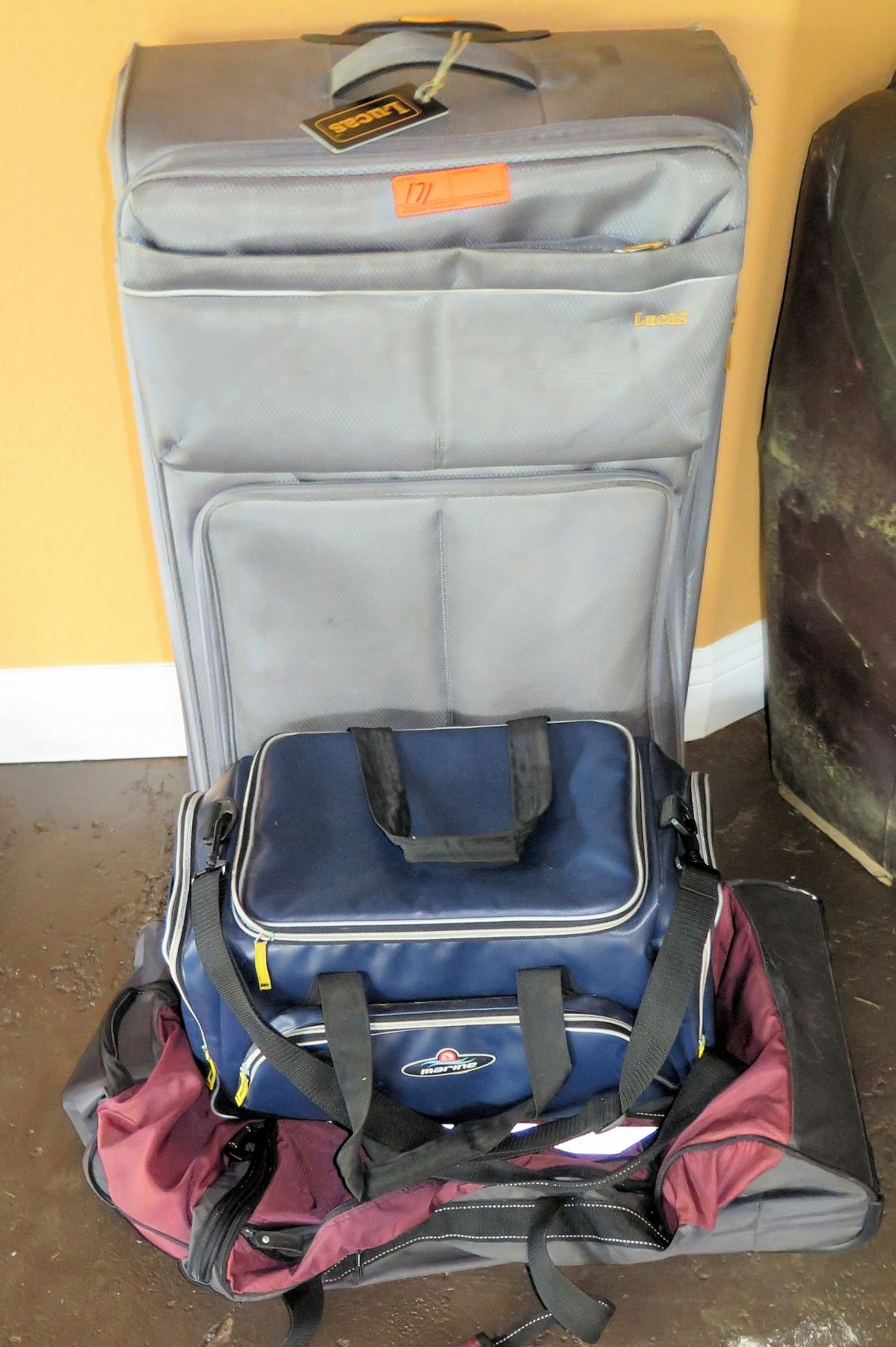 Lucas Gray Wheeled Suitcase w/ Handle, Vinyl Duffle, Canvas Bag