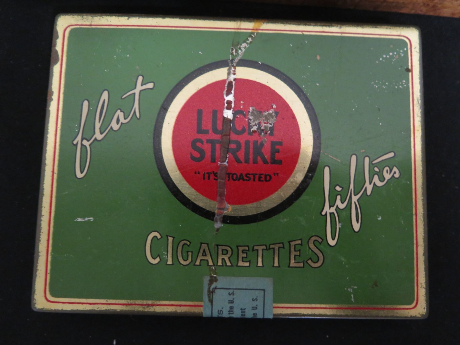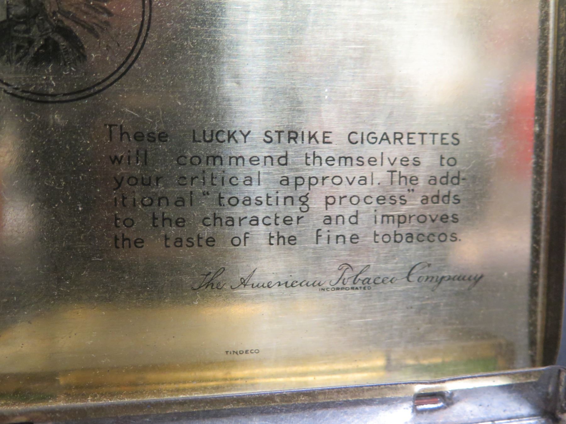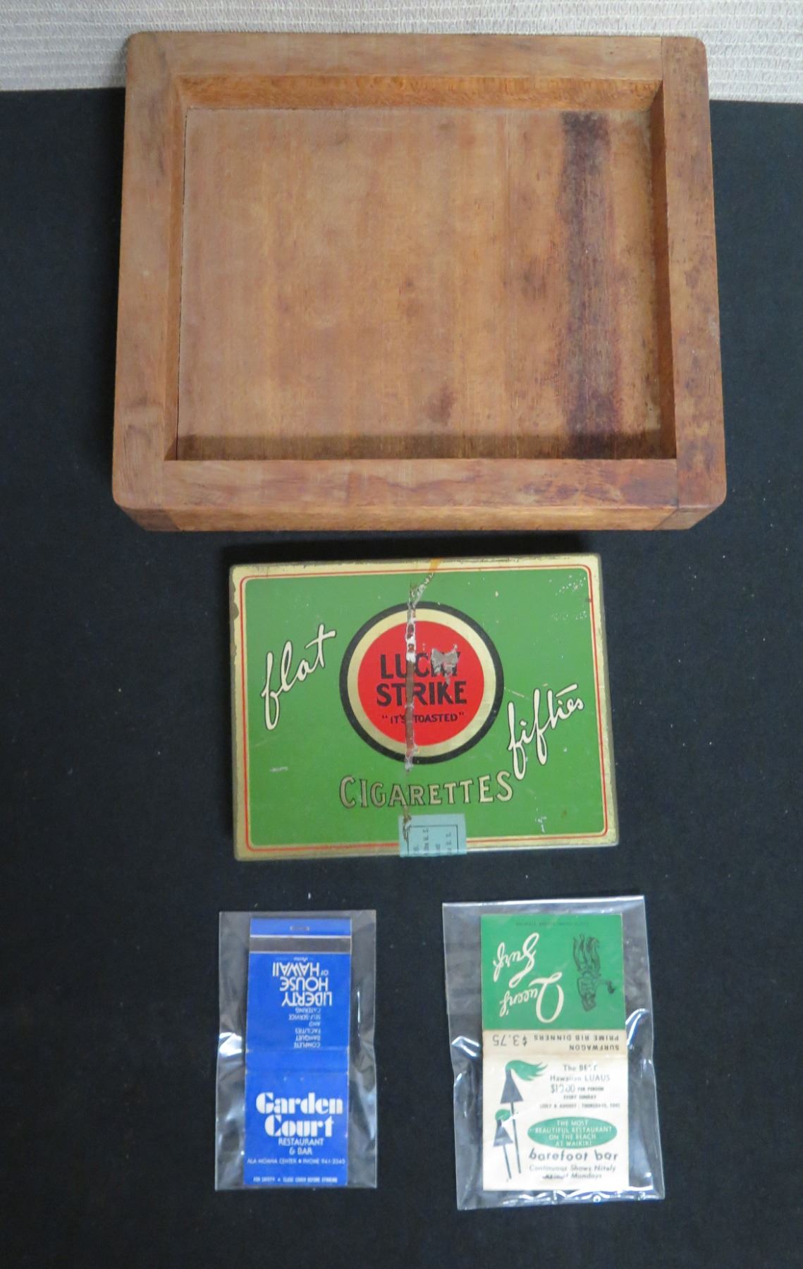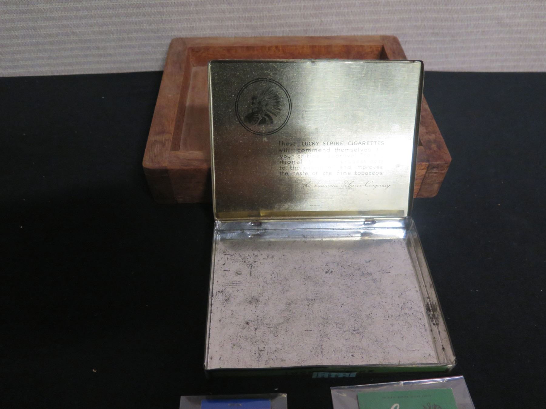 Lucky Strike Metal Cigarette Holder, Matchbook Covers & Wooden Tray