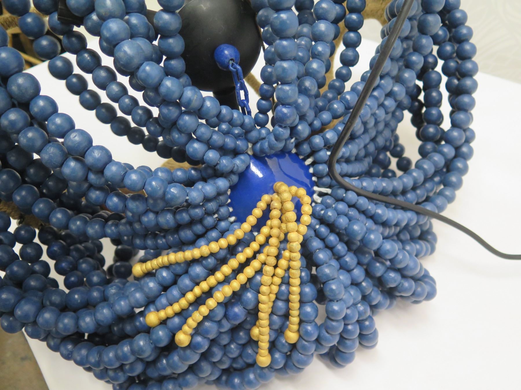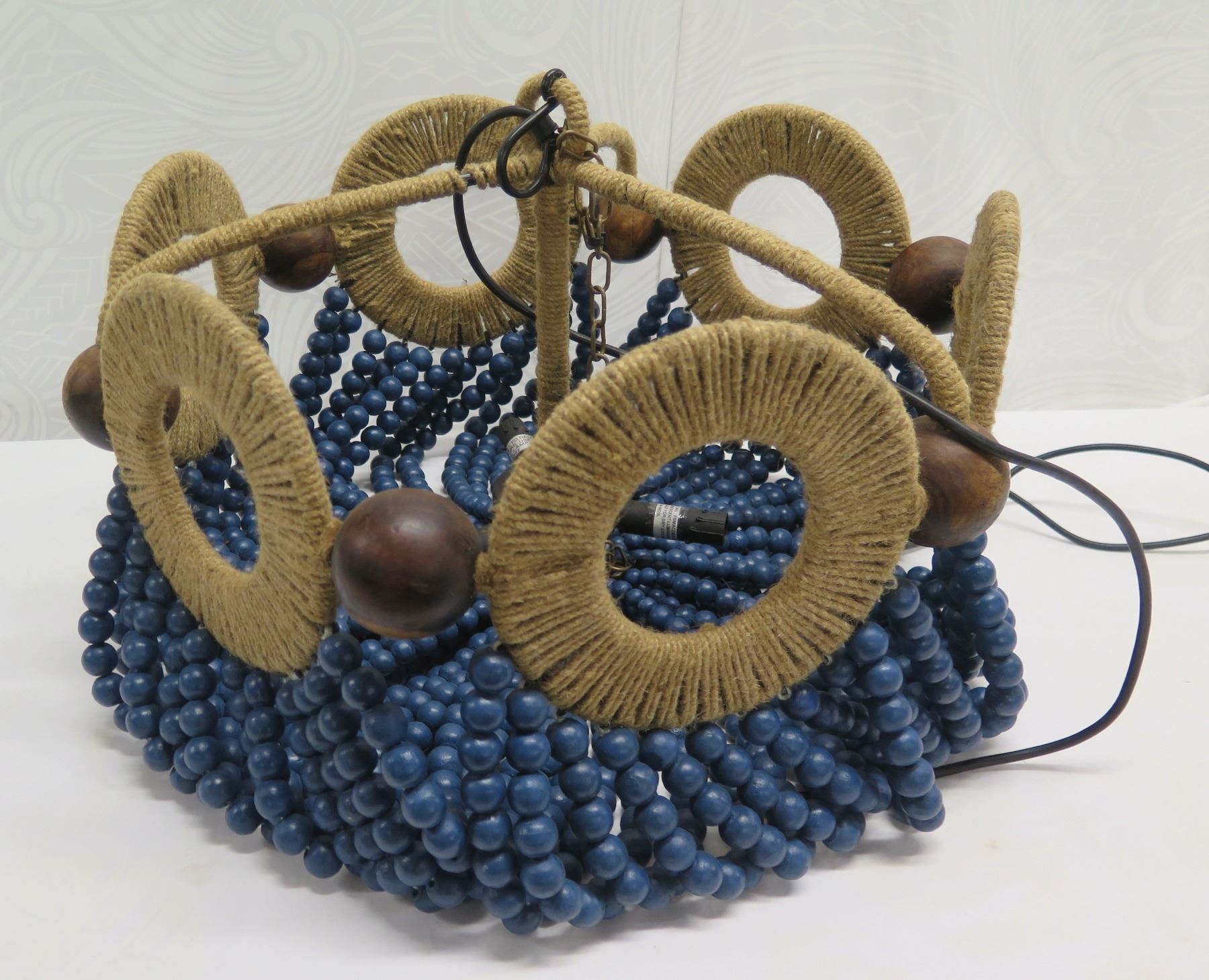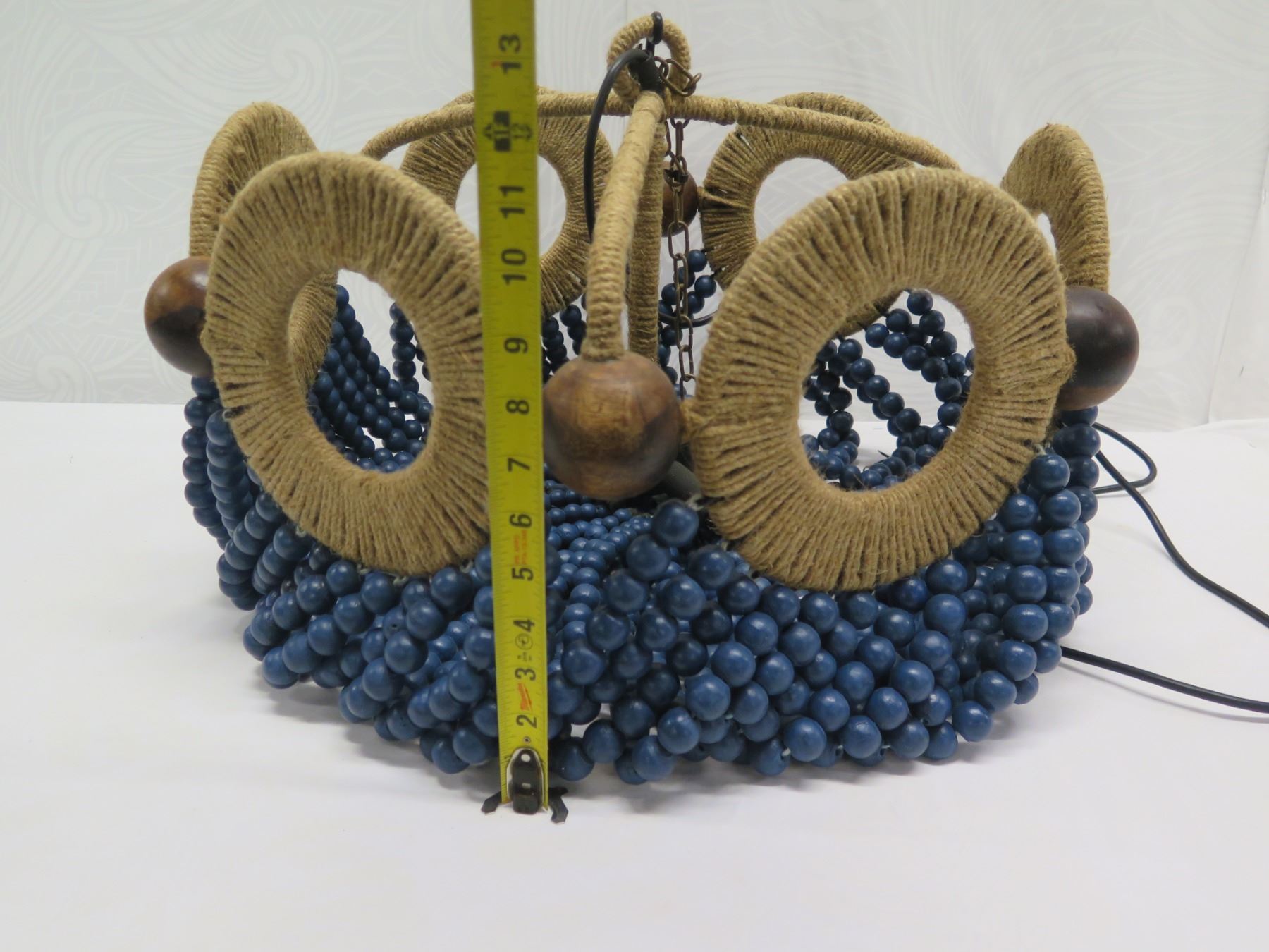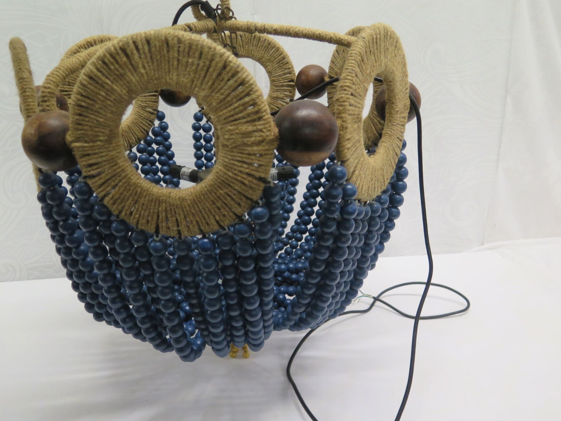 MAYFAIR Florence Blue Bead Jute Chandelier 20" dia, 13"H (Retail $1055)