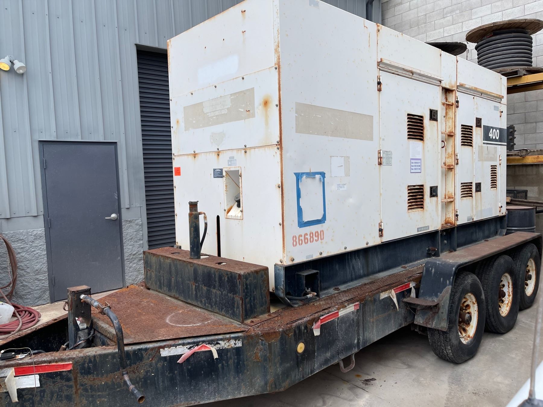 MQ Power 400 KVA WhisperWatt Diesel Powered AC Generator DCA-400SSV on Trailer (Starts & Runs, Produces Electricity - See Video) Seller reports that the generator produces proper power but says that the 220v outlets were rarely used , are corroded and will need to be cleaned or replaced.