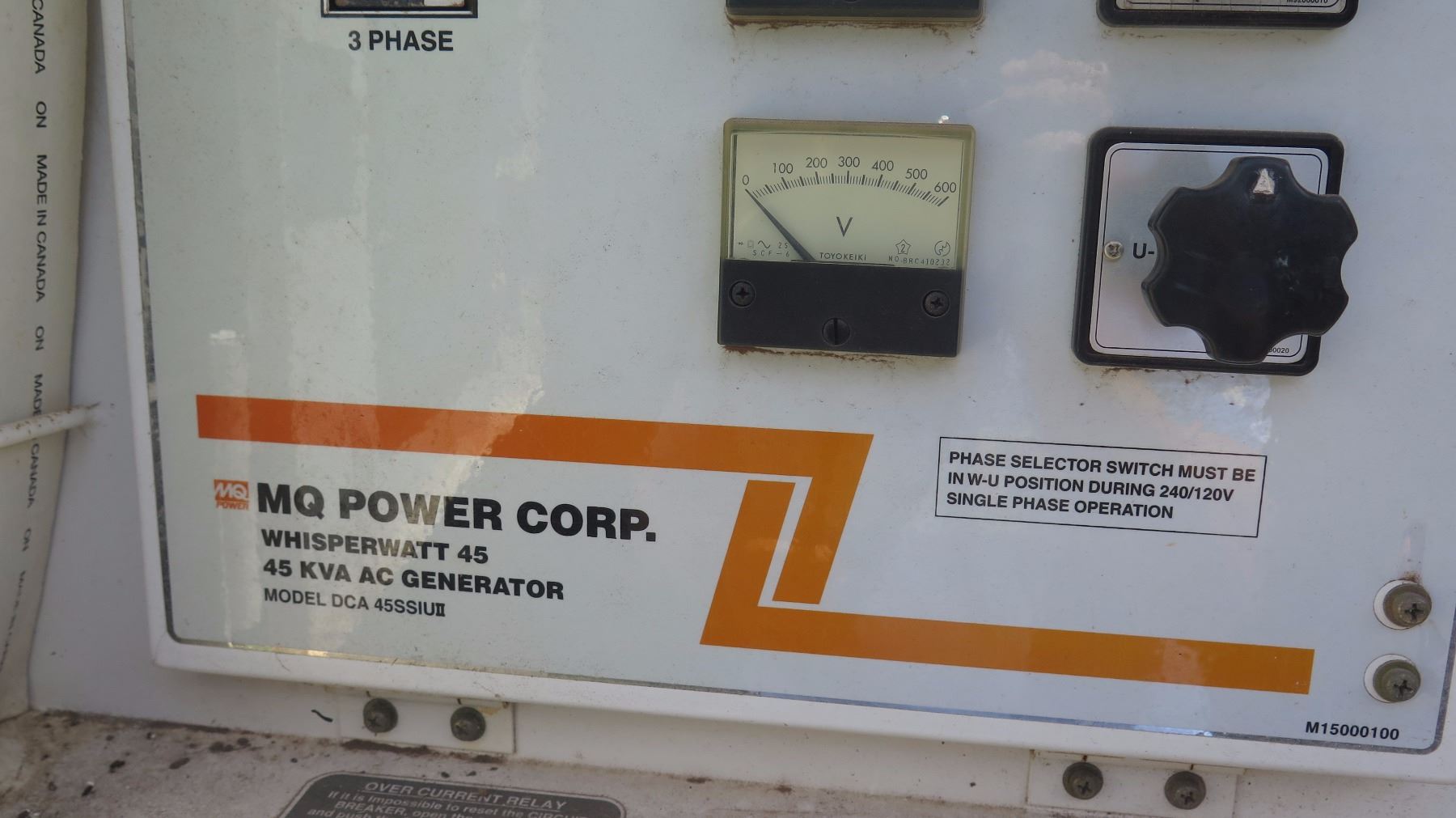 MQ Power Corp Whisperwatt 45KW Generator Model DCA 45SSIU II (9647 Hours, Starts and runs, no known