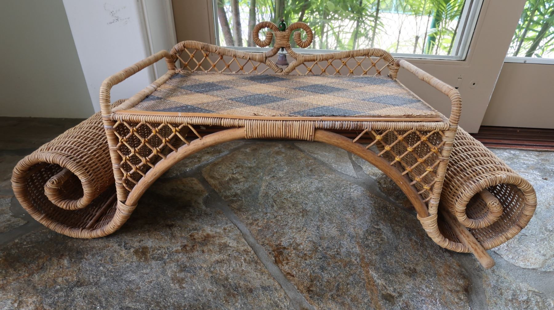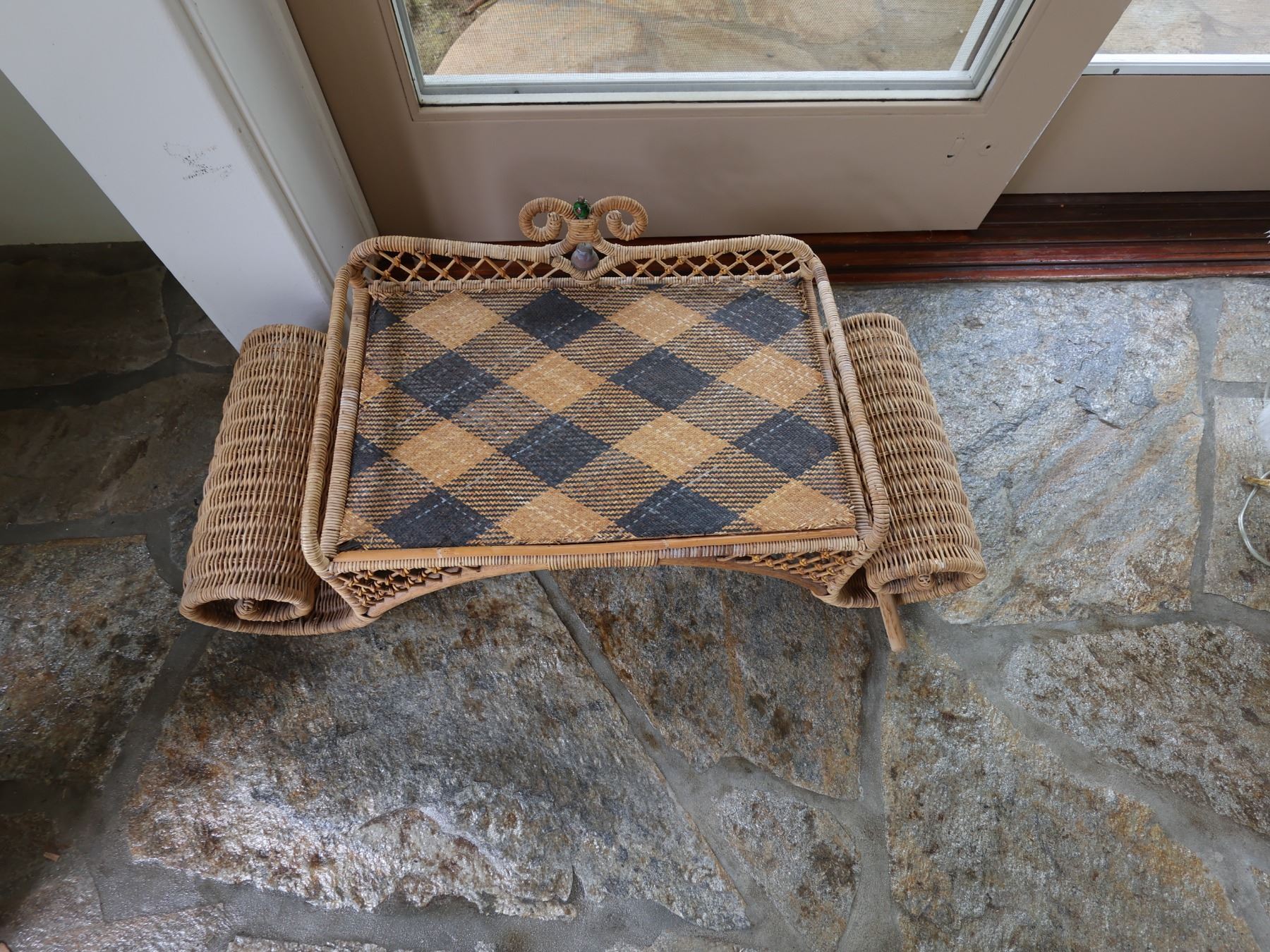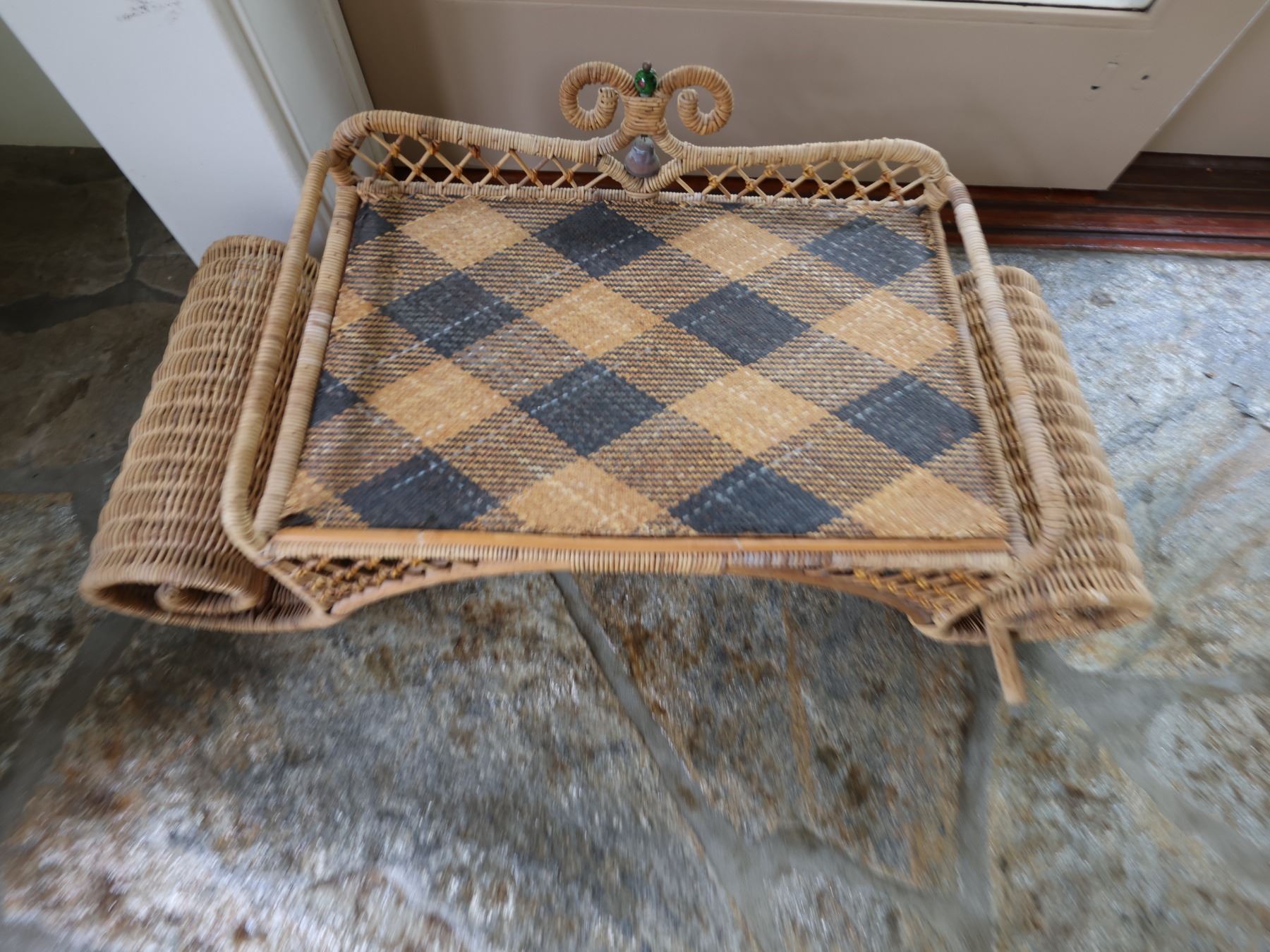 MacKenzie Childs Wicker Rattan Breakfast Bed Tray With Bell 12" x 14"