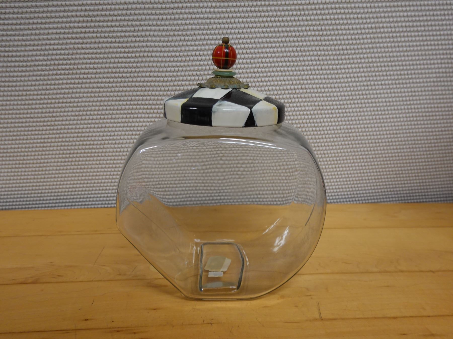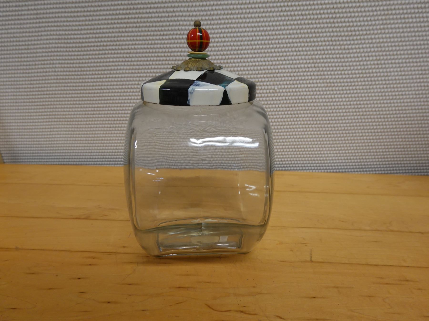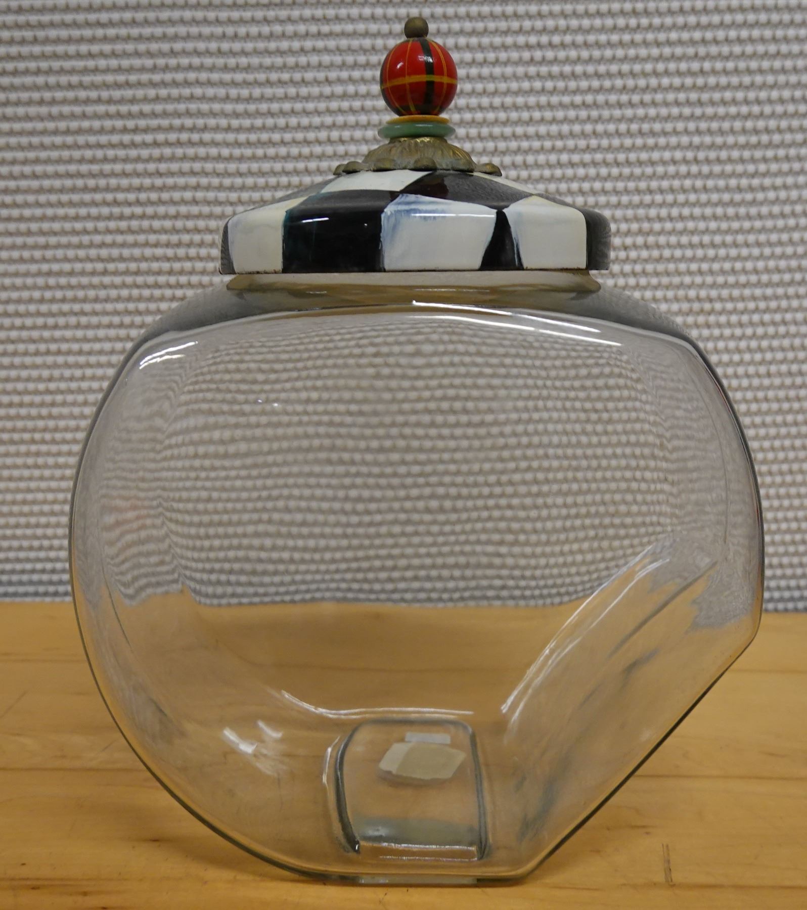 Mackenzie Childs Courtly Check Counter Cookie Jar 8" x 5.5" x 10"H