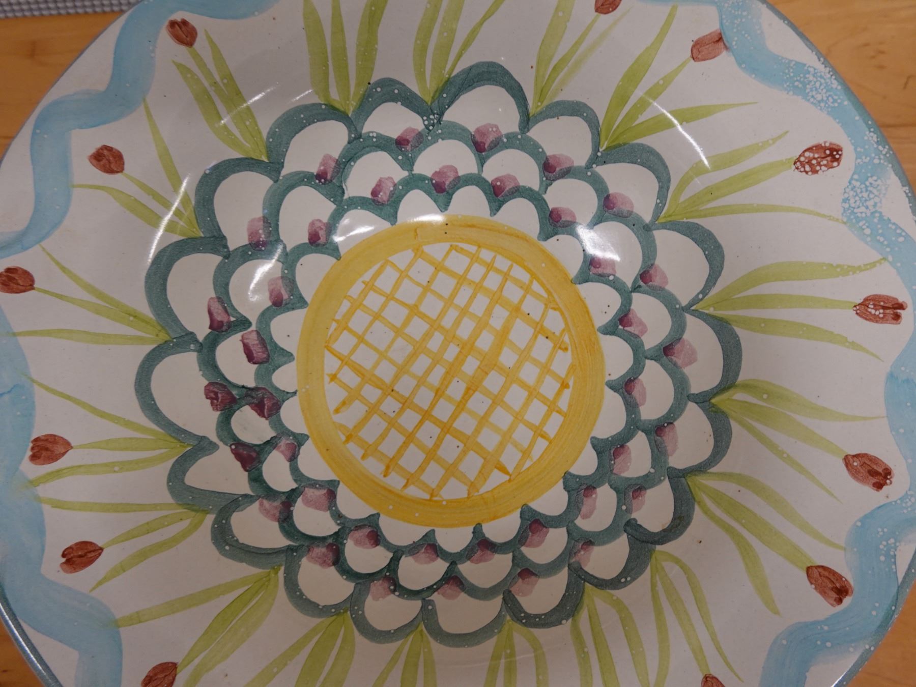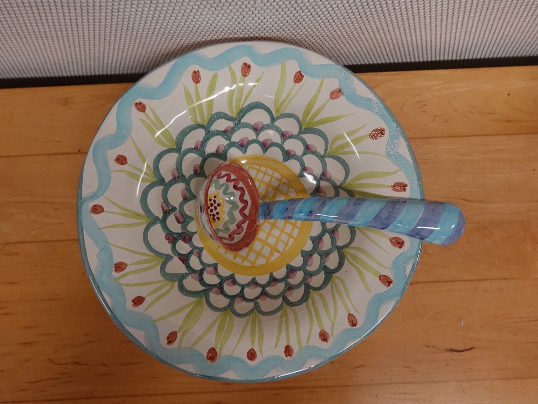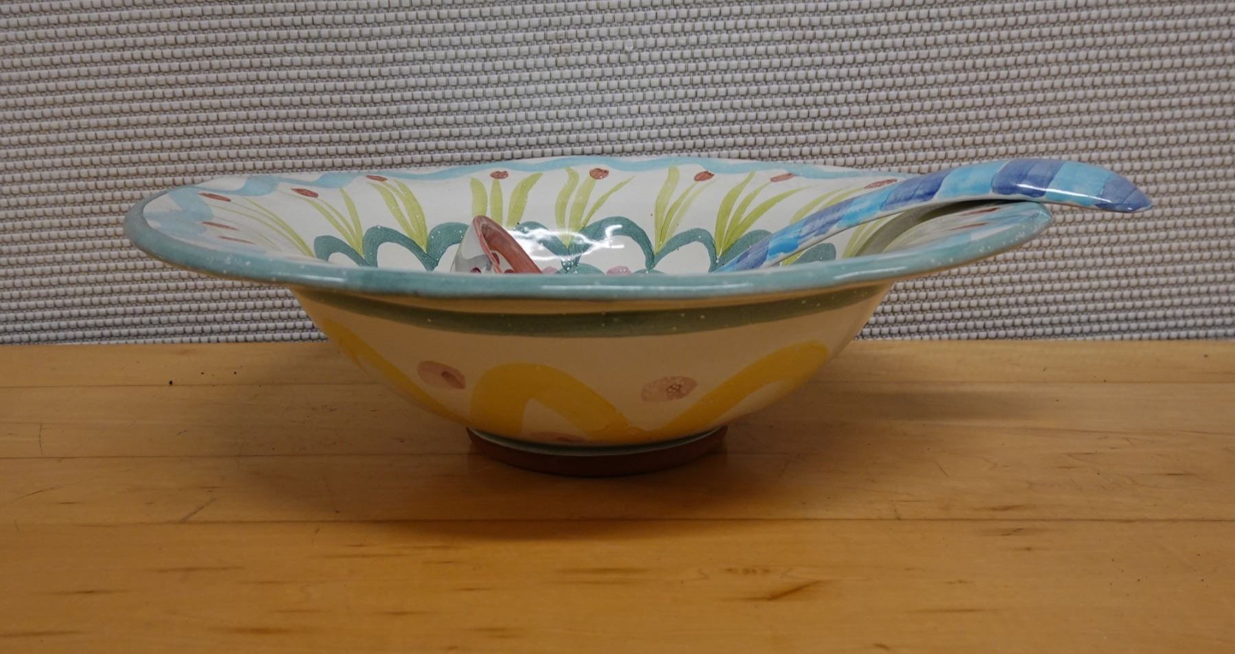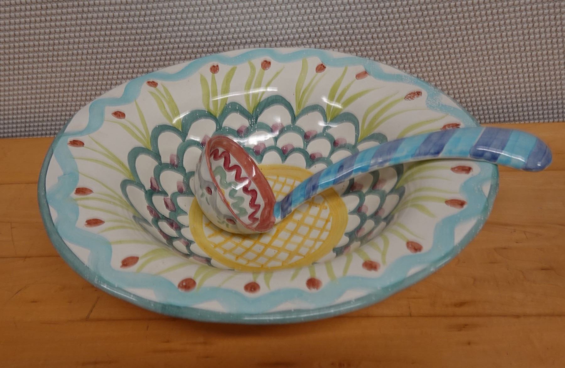 Mackenzie Childs King Ferry Bowl 14" Dia w/ Matching Ladle 11"L