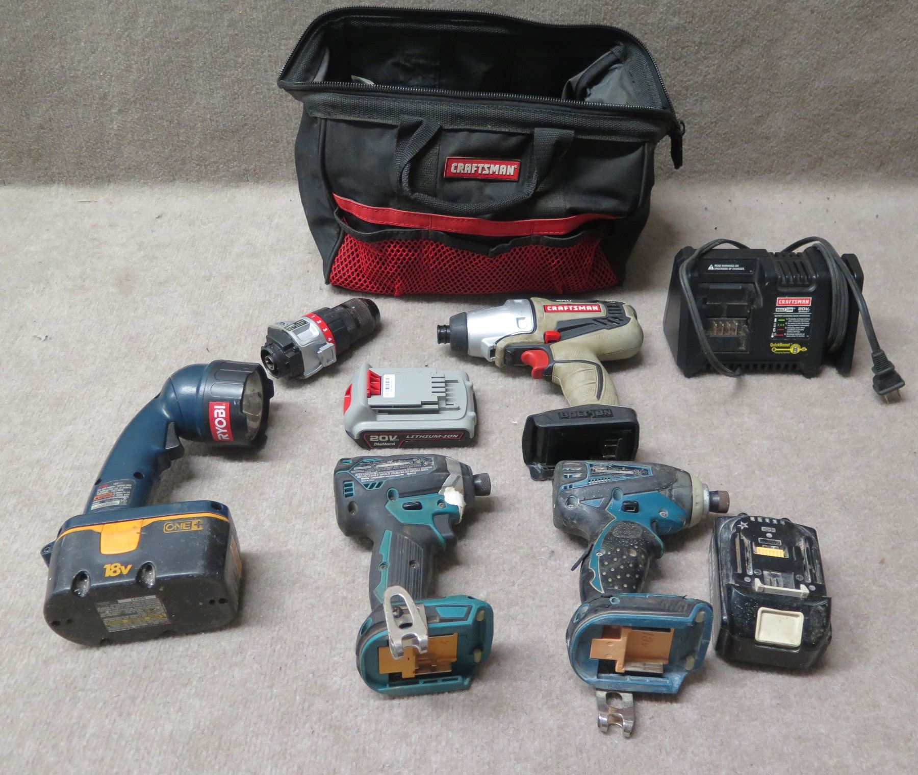 Makita XDT01 & XDT13 Impact Drivers, Craftsman 900.16496 Bolt-On Drill, etc in Case