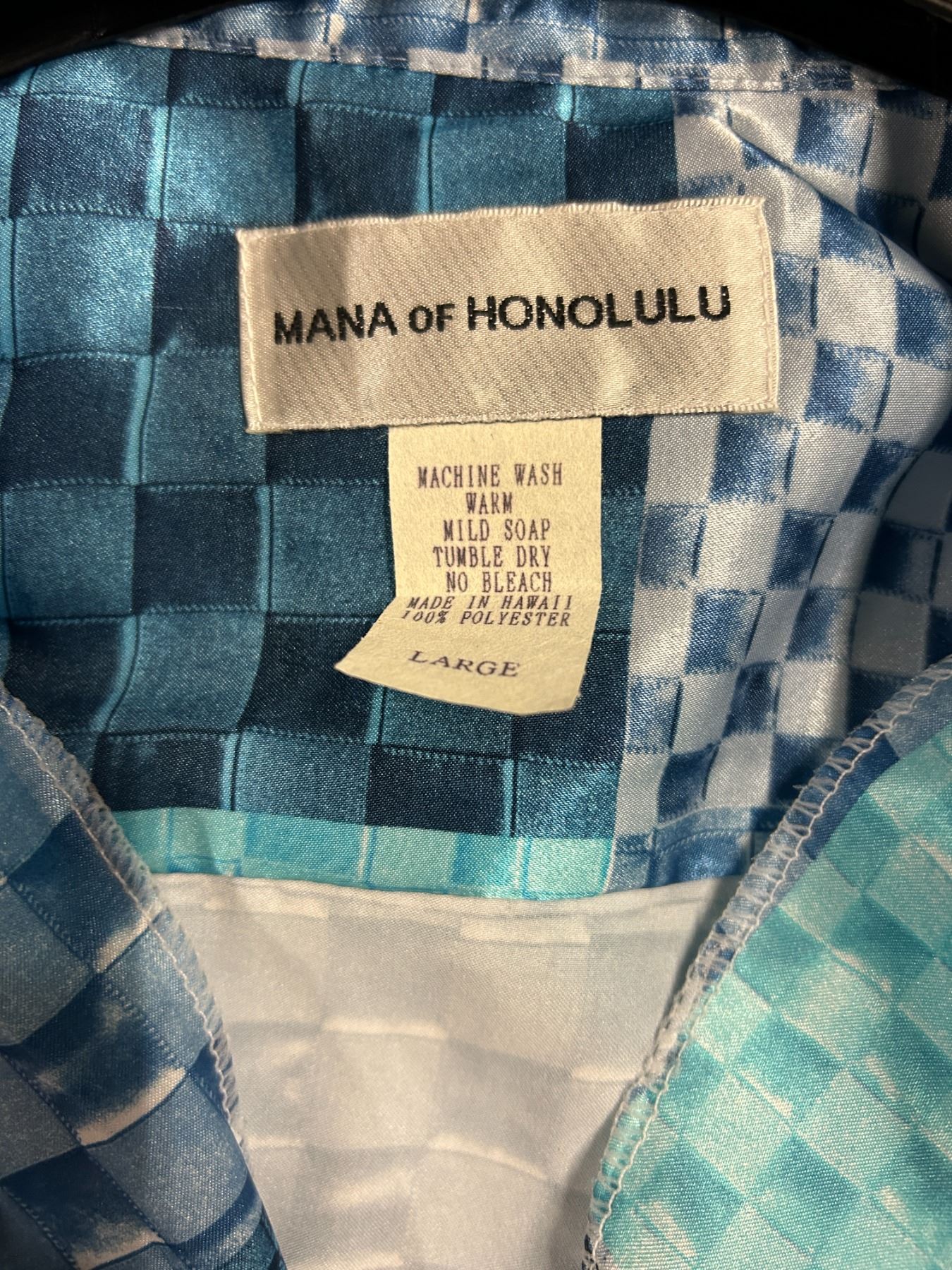 Christina von Fieandt Mana Aloha Shirt, Blue, Size Large, New with Tag (Retail $80). Not woven.