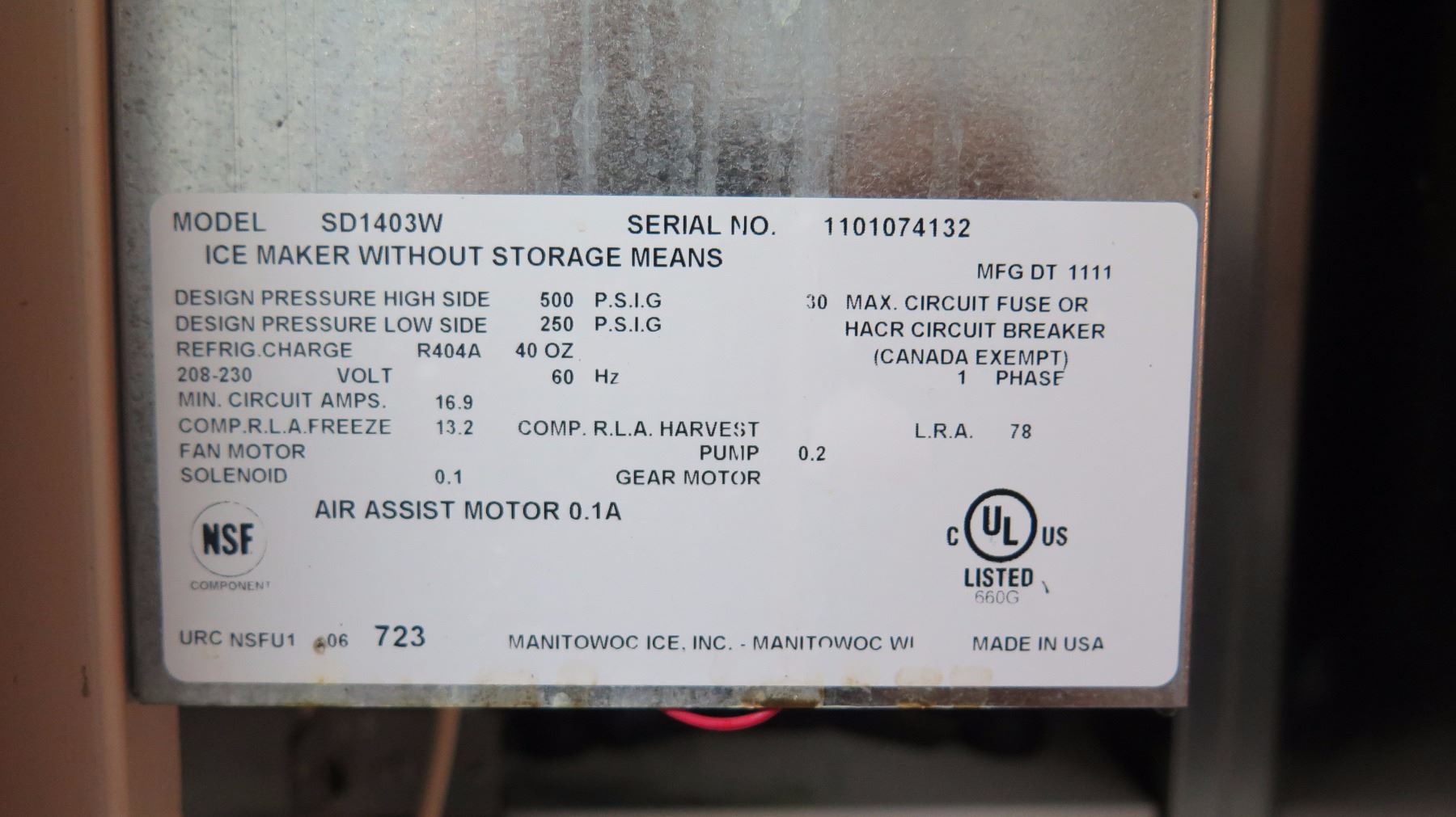 Ice Machine - Self Contained (4"L x 34"W x 77"H)