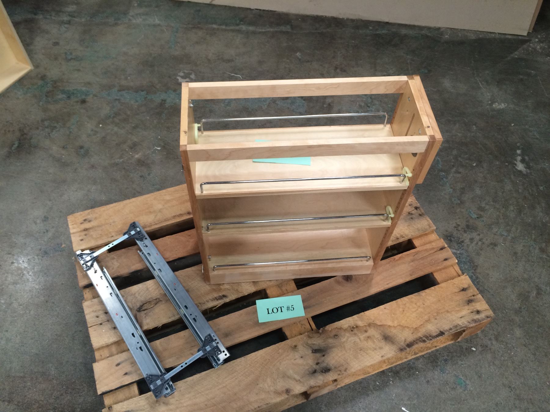 Maple Pull-Out Spice Rack. 24-3/4”H x 21-1/2”W x 7-15/16”D w/slide and 3 shelves.