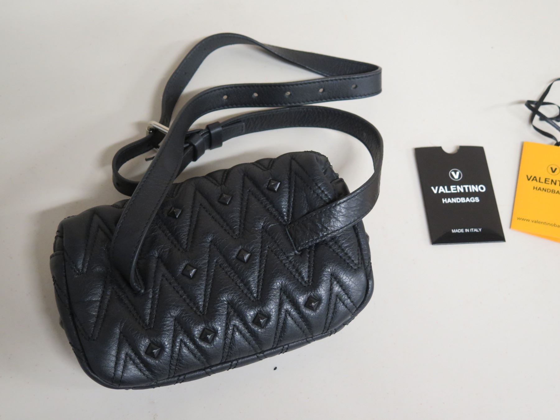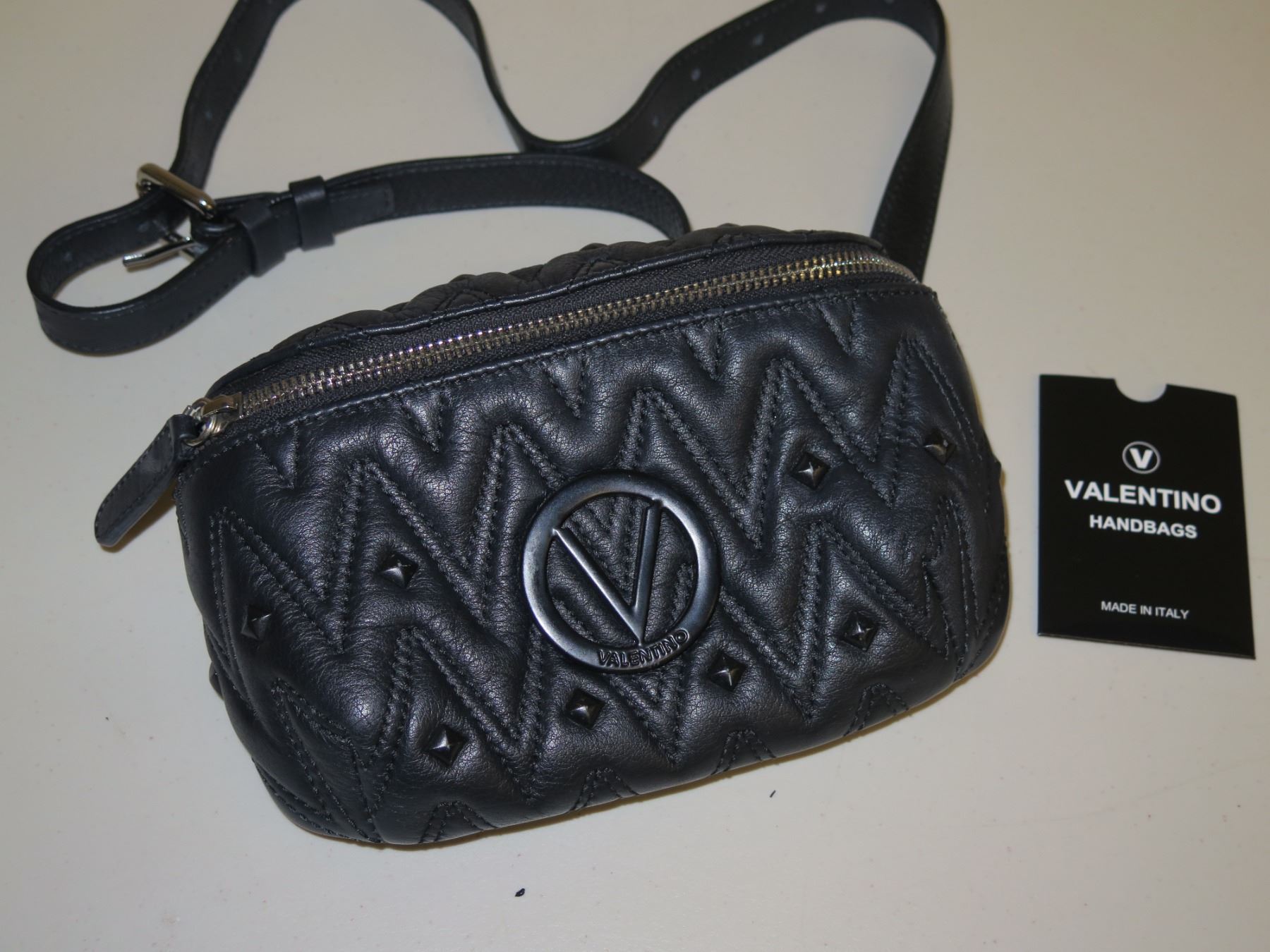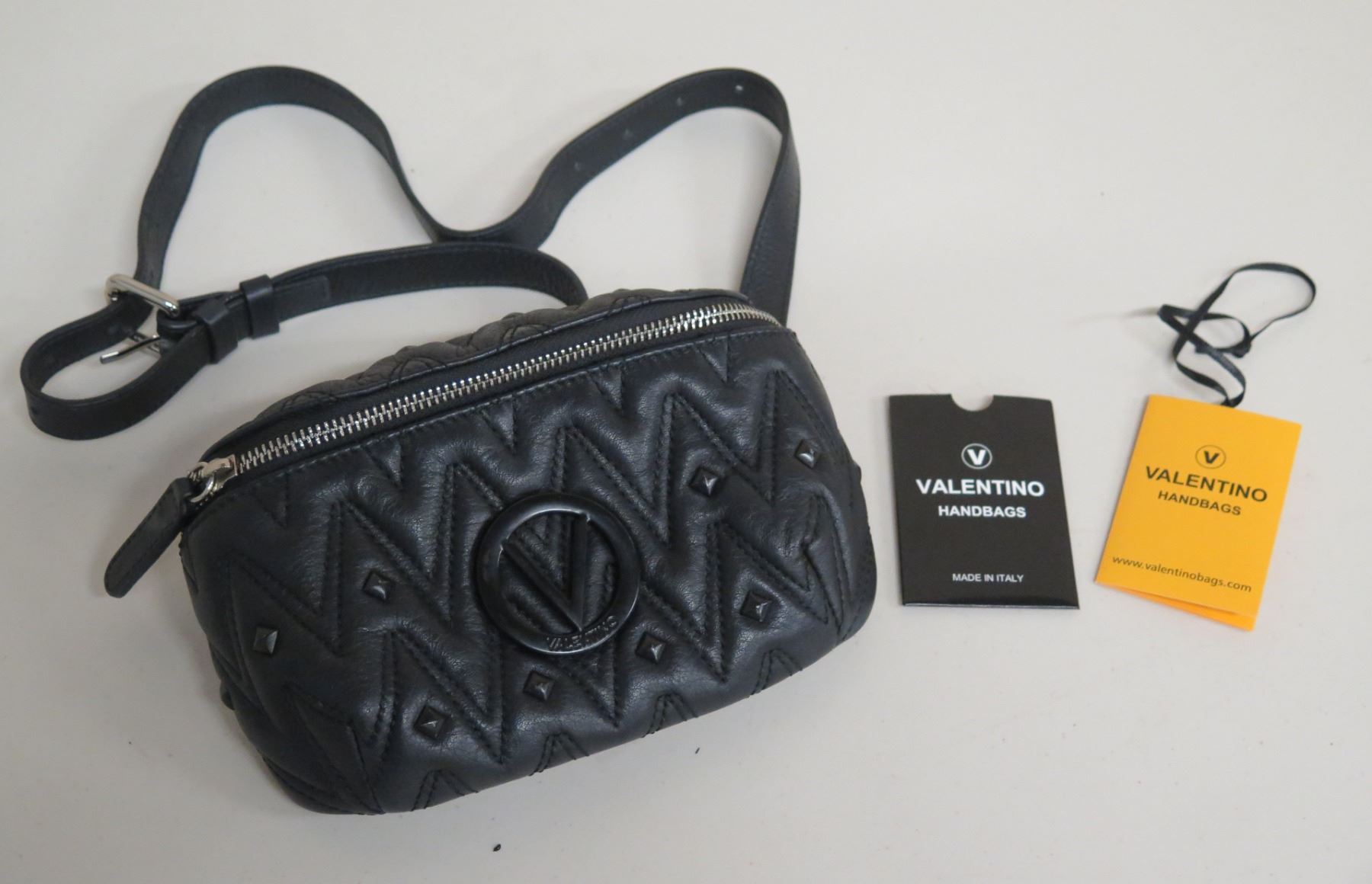 Mario Valentino Italy Black Zipper Handbag w/ Shoulder Strap