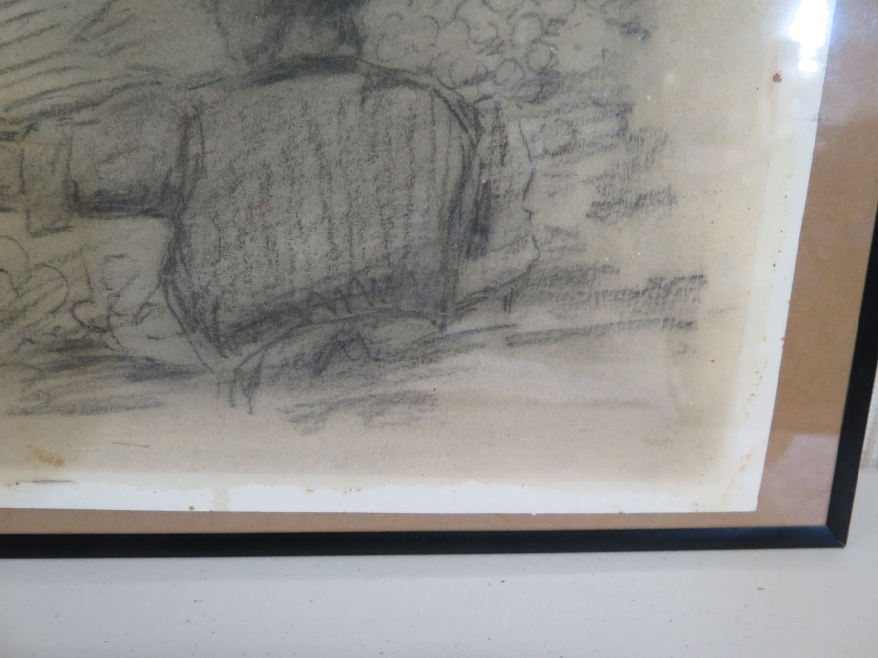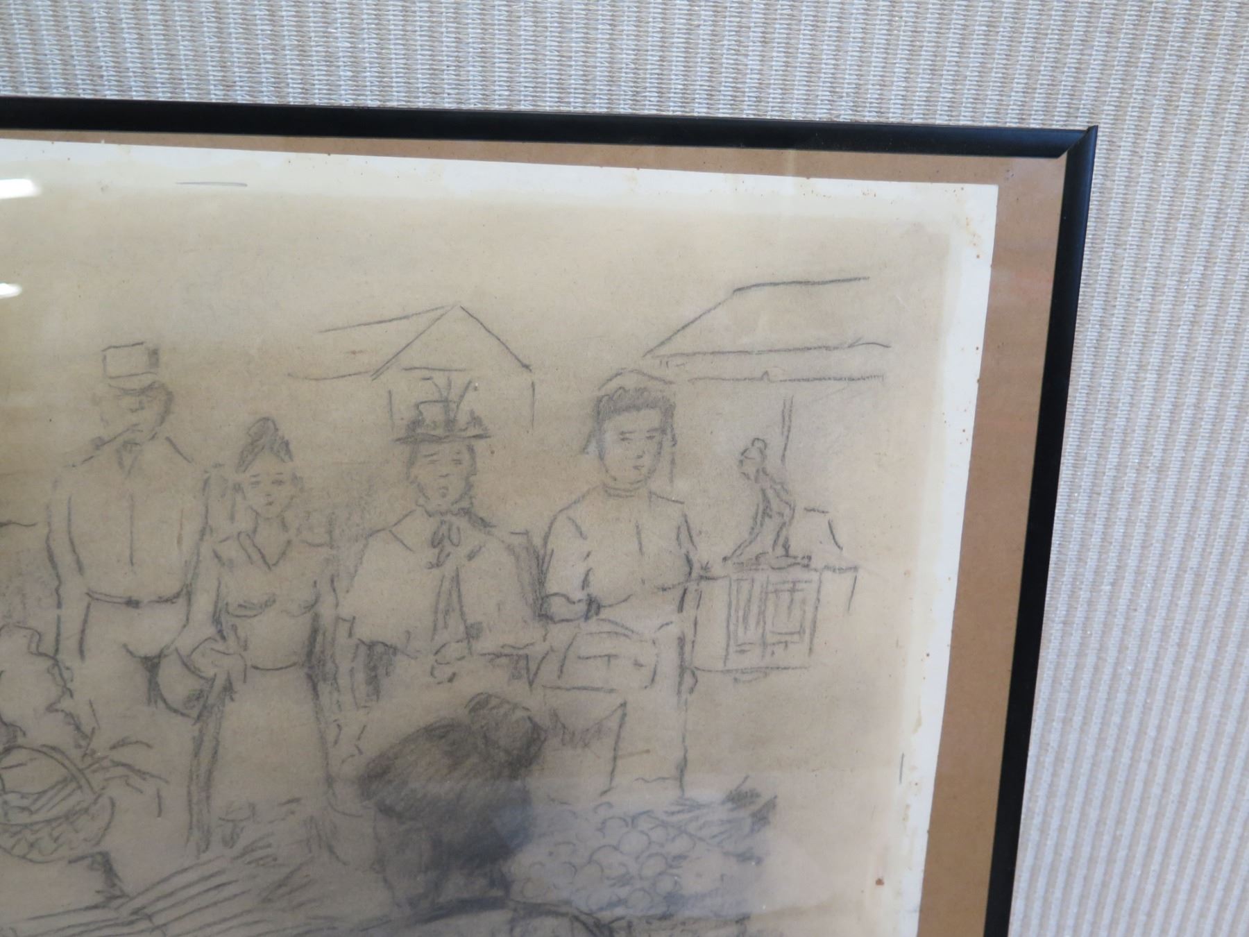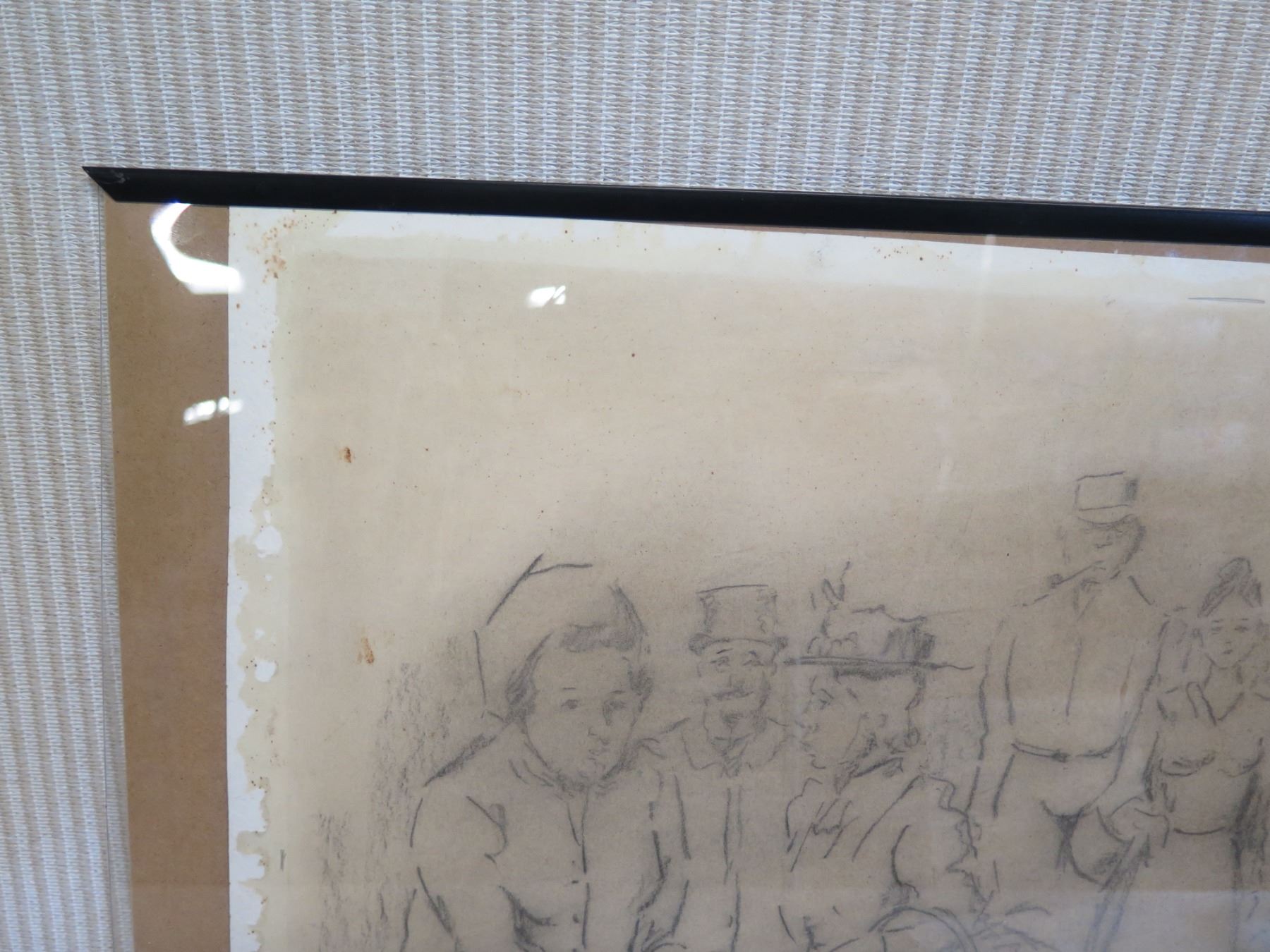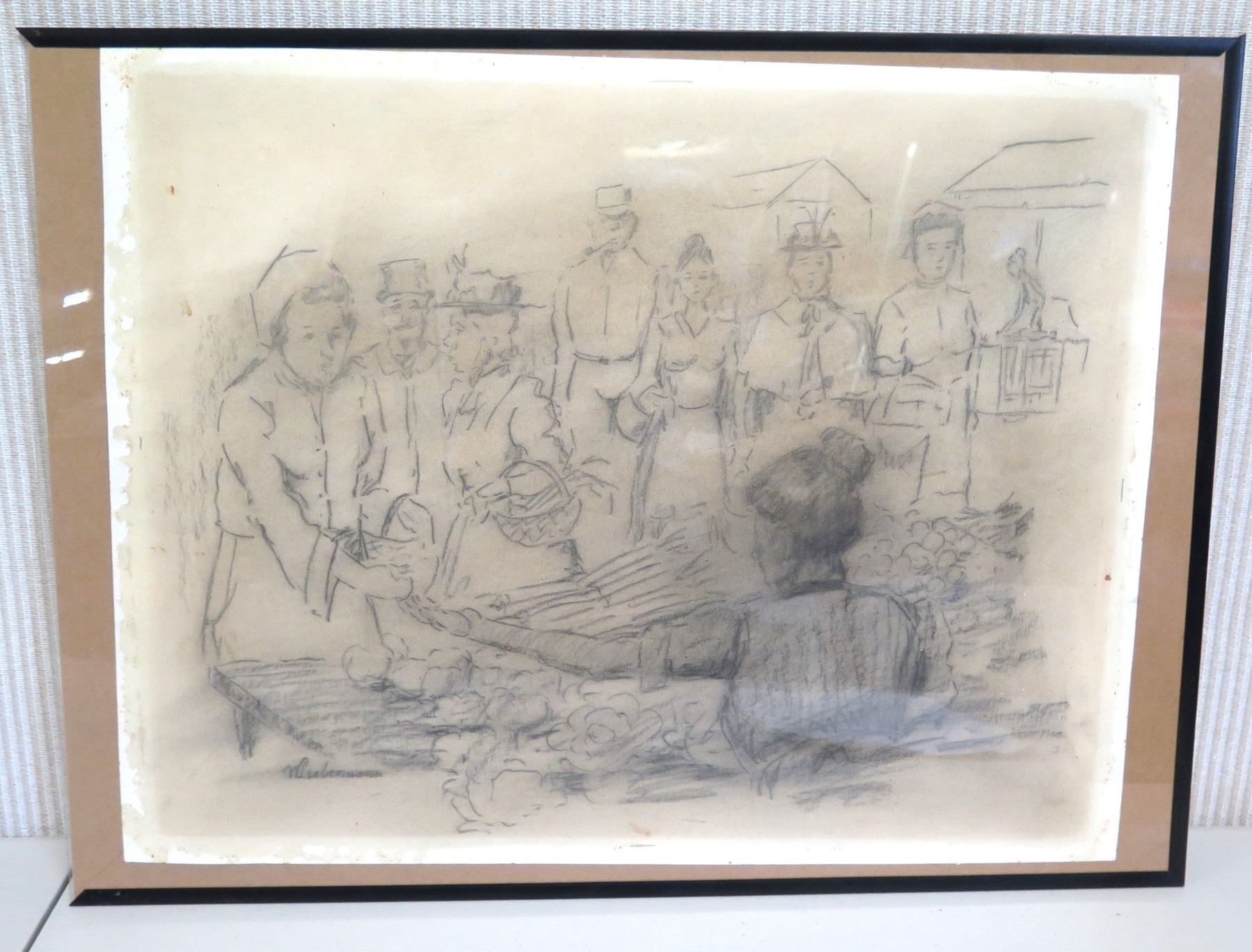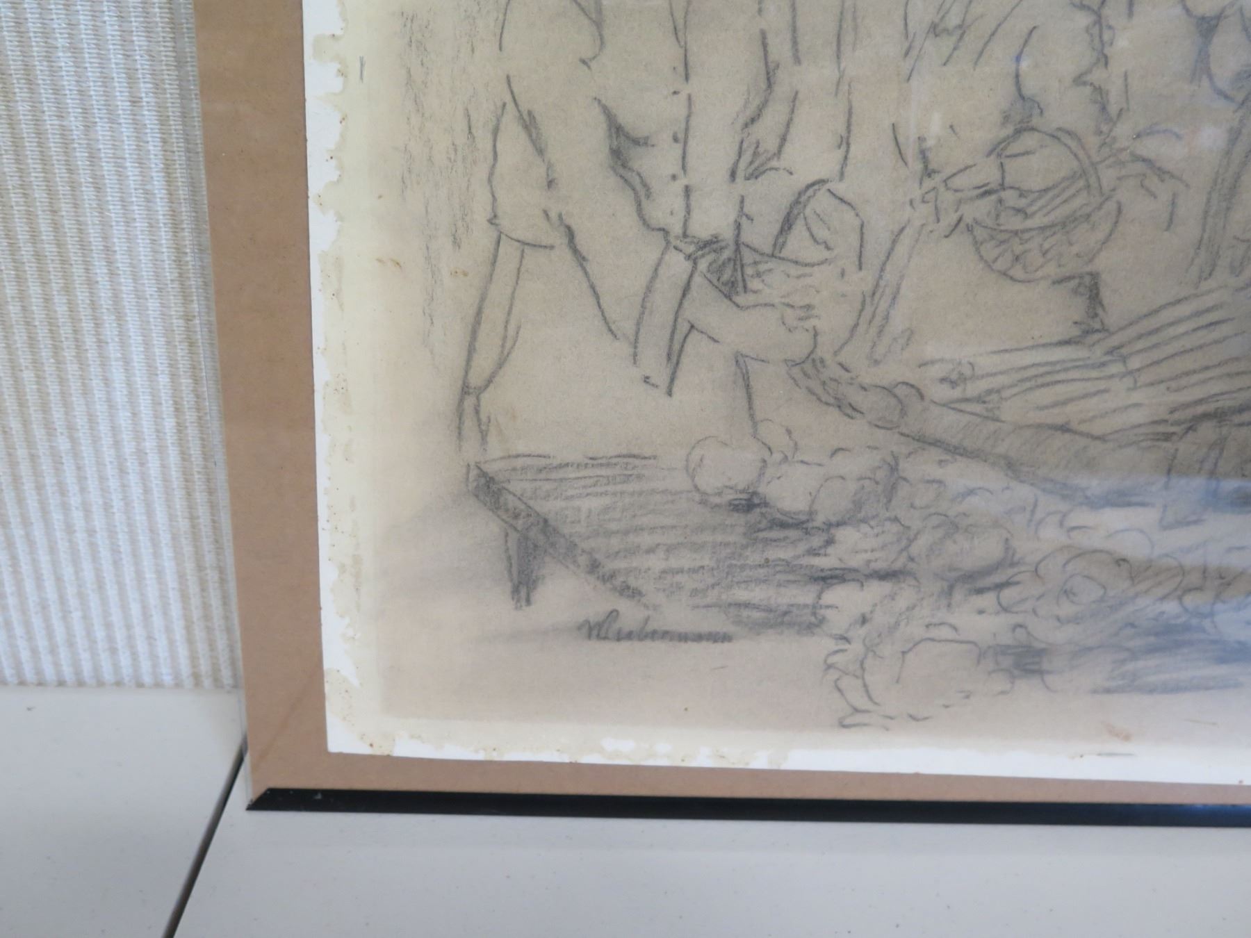 Market Scene Pencil Drawing, Signed Max Liebermann, Framed 24"x18" (total)